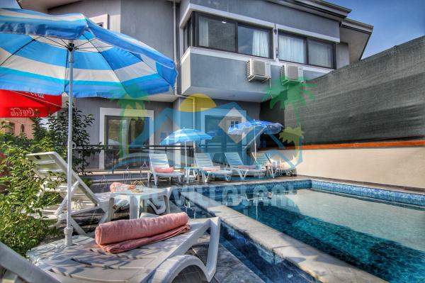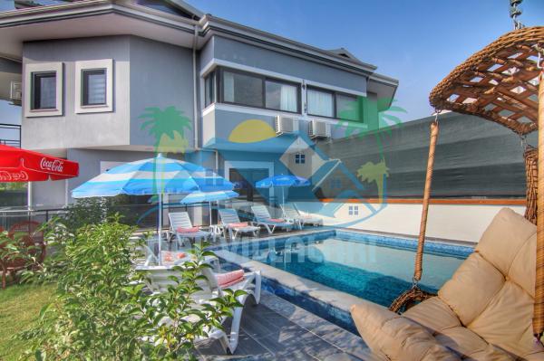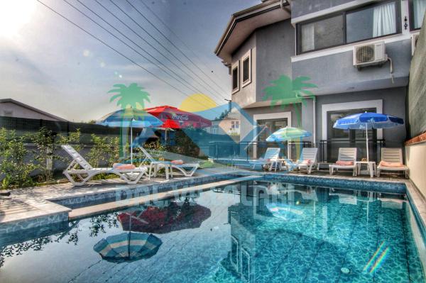 Fethiye Çiftlik beldesinde bulunan Villa Araf 1, 3 yatak odalı ve 7 kişilik konaklama kapasitesine sahiptir. Oldukça şık iç ve dış tasarıma sahiptir. Size özel havuz ve bahçe alanı, tatil ve tatil boyunca ihtiyacınız olabilecek tüm detayların düşünüldüğü Villa Araf 1'de keyifli bir tatil sizi bekliyor. Villa Araf 2 ile yan yana bulunan Villa Aras'ın tarihçe olması durumunda birlikte kiralanabilmektedir.