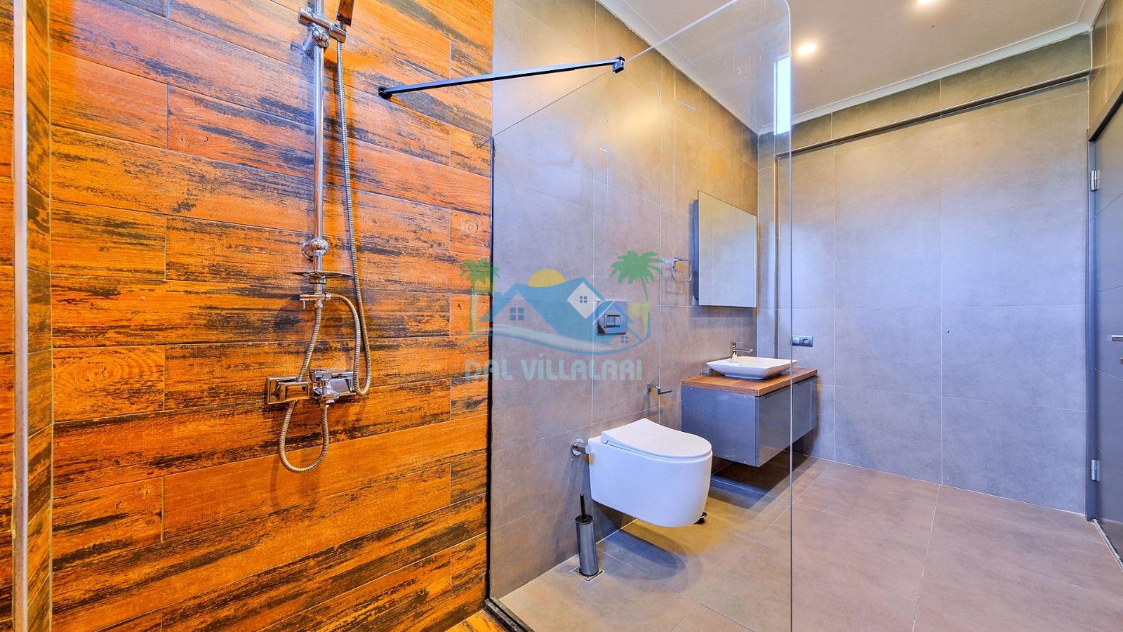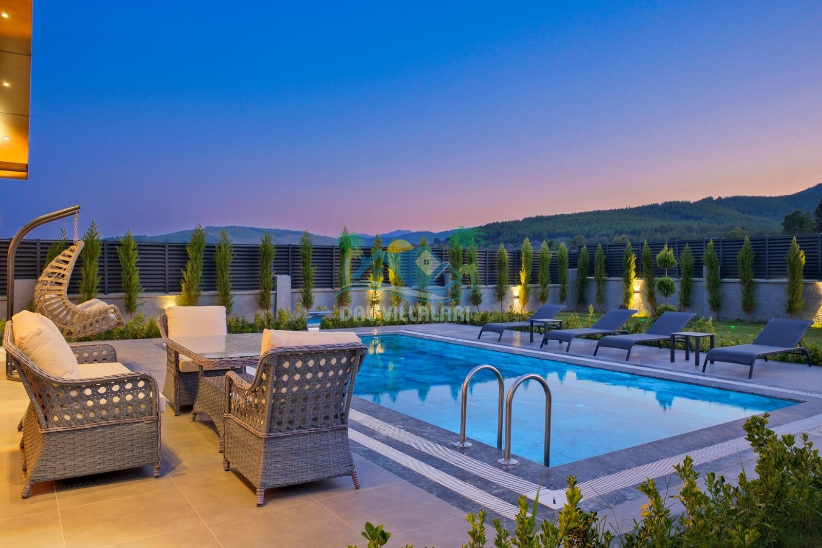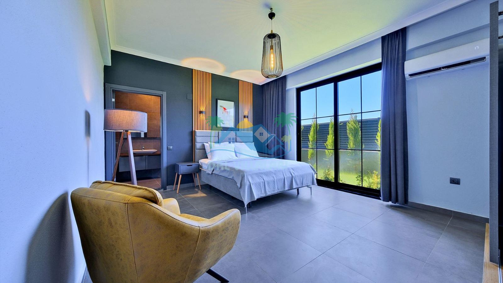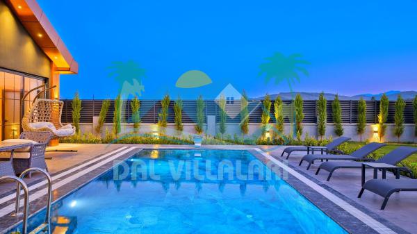 Doğa içinde, huzurlu bir konumu olan villanın havuz bahçe kısmında kapasiteye uygun şezlong takımı, oturma grubu, barbekü alanı; havuz terasına açılan oturma odası, tam donanımlı açık mutfağı bulunmaktadır. Bir yatak odasında çift kişilik yatak, ebeveyn banyosu;ikinci yatak odasında iki tek kişilik yatak ve ebeveyn banyosu bulunmaktadır.
