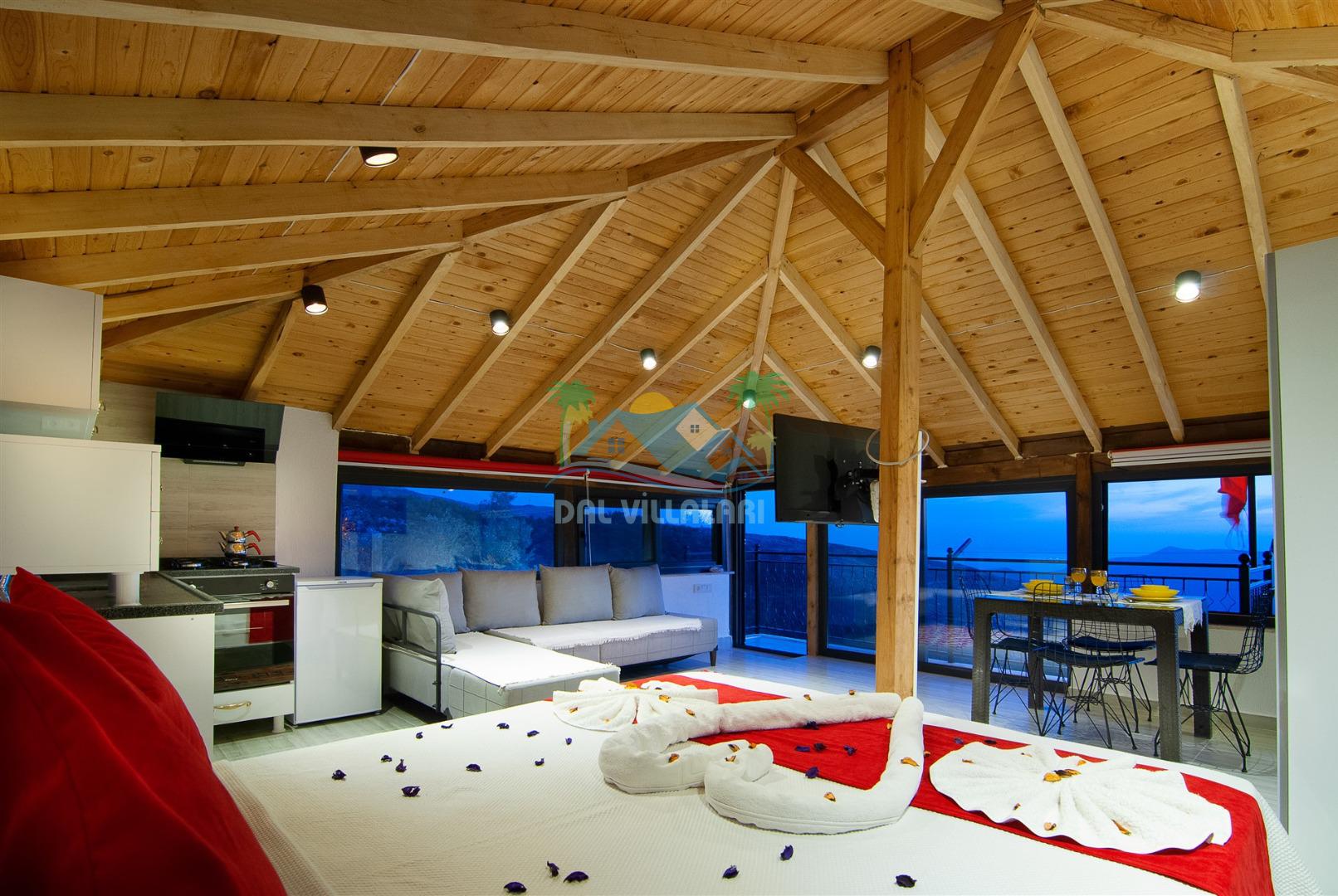 Villamızda iki adet yatak odası ve iki adet banyo bulunmaktadır. Birinci yatak odası içerisinde çift kişilik yatak, klima, banyo ve jakuzi bulunmaktadır. Salon içerisinde mutfak, oturma grubu, klima ve televizyon yer almaktadır. İkinci yatak odası ise üçüncü katta yer alıp, ayrı girişi ve kendine ait oturma alanı ve mutfağı mevcuttur. İçerisinde çift kişilik yatak, televizyon, jakuzi ve banyo yer almaktadır.