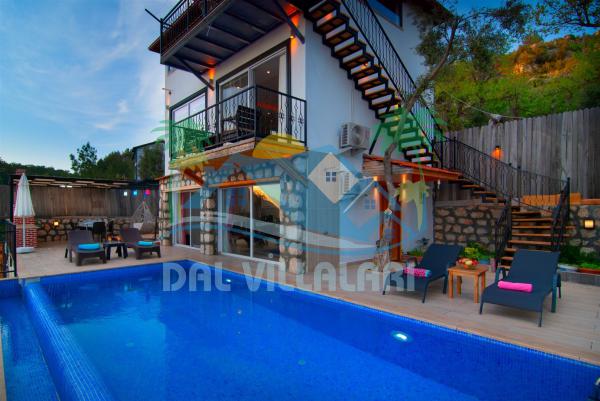 Villa Sanem, Kalkan Üzümlü Lapaz bölgesinde konumlanan havuzu tam korunaklı villamızdır. Yüksek konumda yer alan villamız, 2019 yılında tamamlanmıştır ve ilk kez misafirlerine kapılarını açmıştır. Konforlu bir iç tasarıma sahip villamız, güzel bir doğa manzarasına sahiptir.