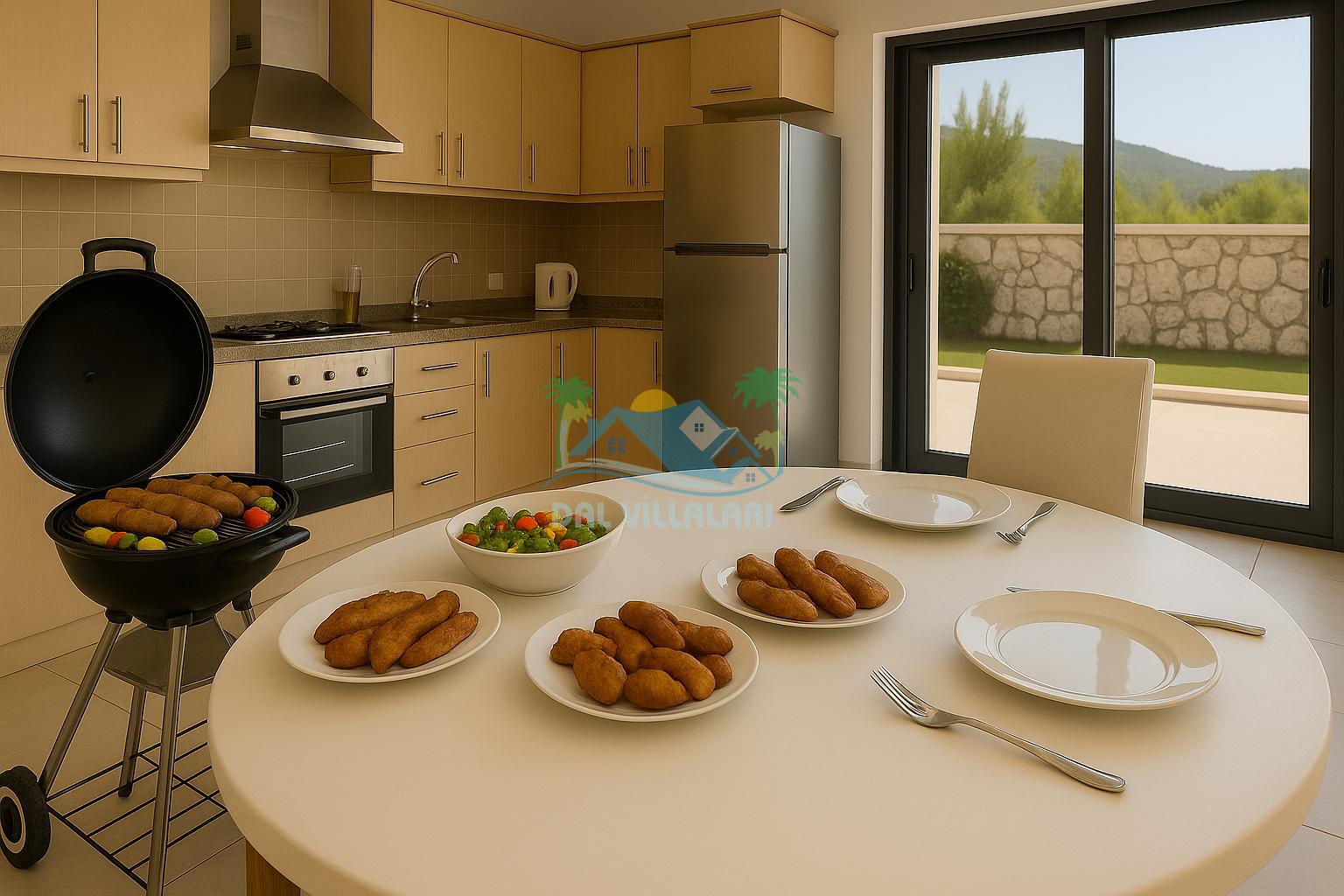 Villa tatili size yalnızca özel havuz değil, yemek konusunda da tam özgürlük sunar. İster kahvaltınızı kendiniz hazırlayın, ister akşam yemeğinizi dışarıda yiyin; seçim tamamen sizin.