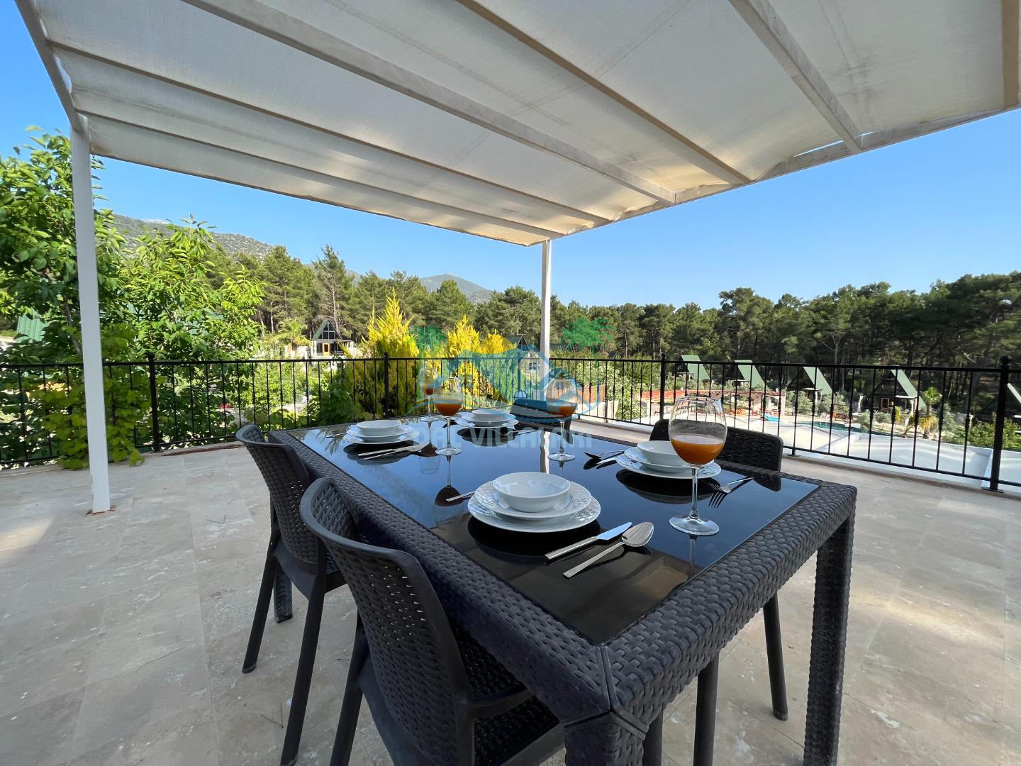 Geniş ve ferah salonu, rahat koltukları ve modern dekorasyonuyla evlerindeki konforu sunuyor. Tam donanımlı mutfak, kendi yemeklerinizi hazırlayabileceğiniz her türlü imkanı sunarken, şık yemek alanı da misafirlerin keyifli bir yemek deneyimi yaşamalarını sağlar. Ayrıca teras, muhteşem doğa manzarası eşliğinde keyifli zaman geçirebileceğiniz bir alan sunar.