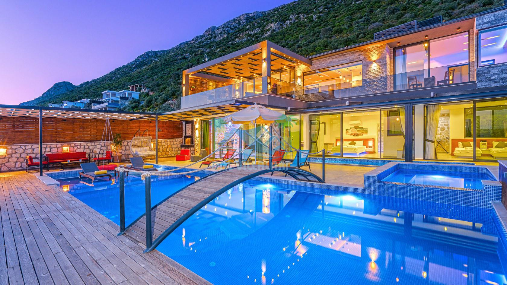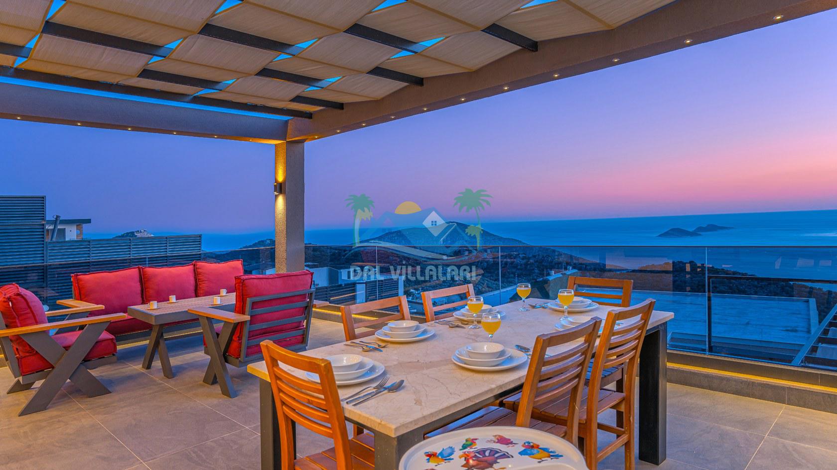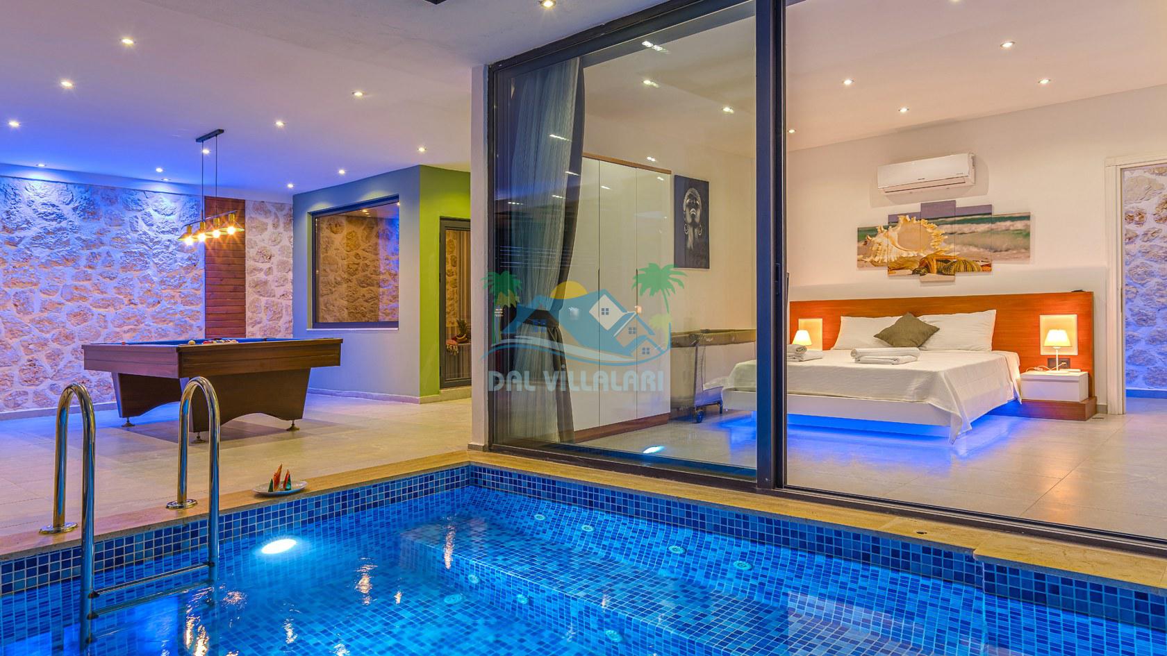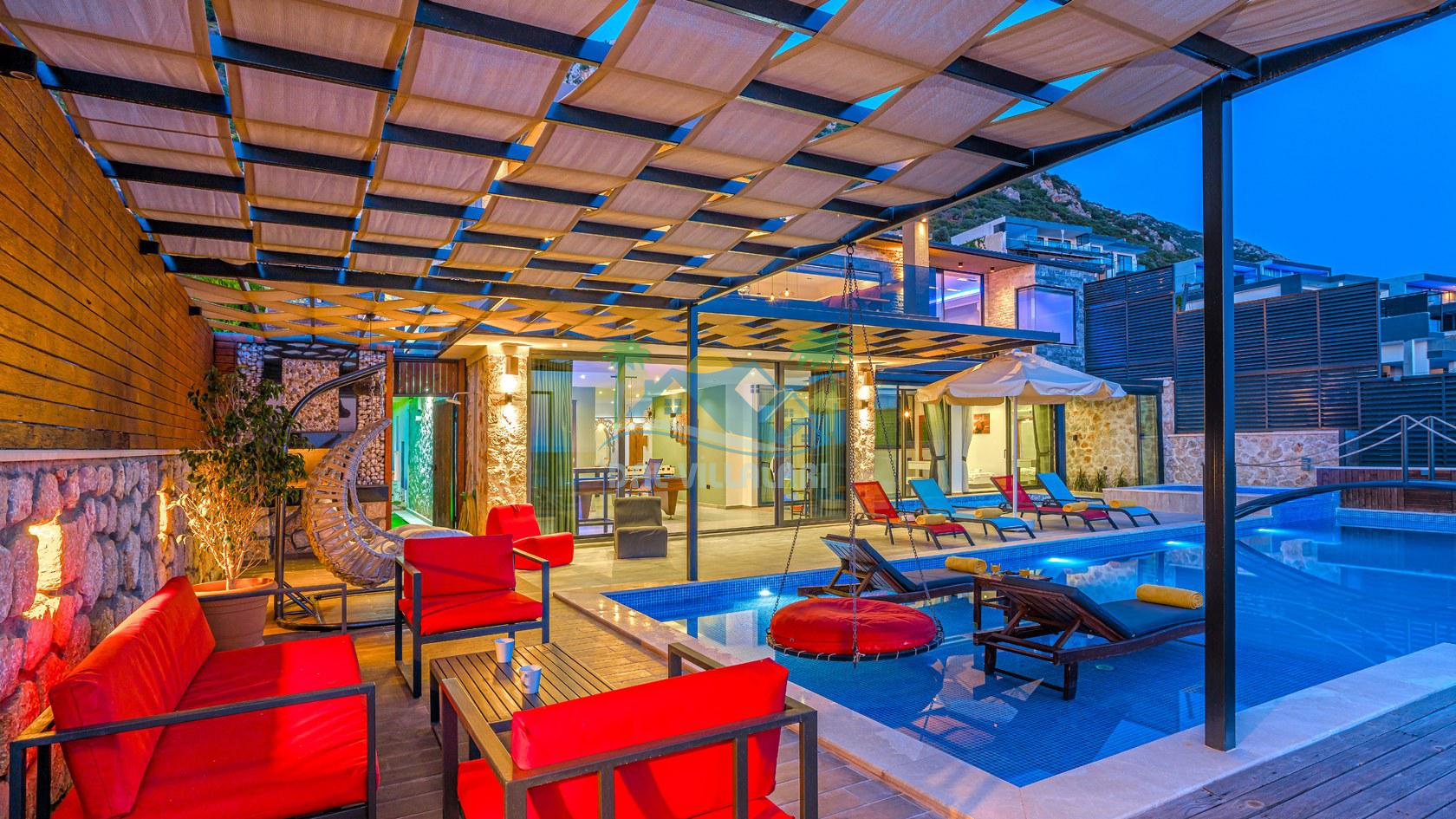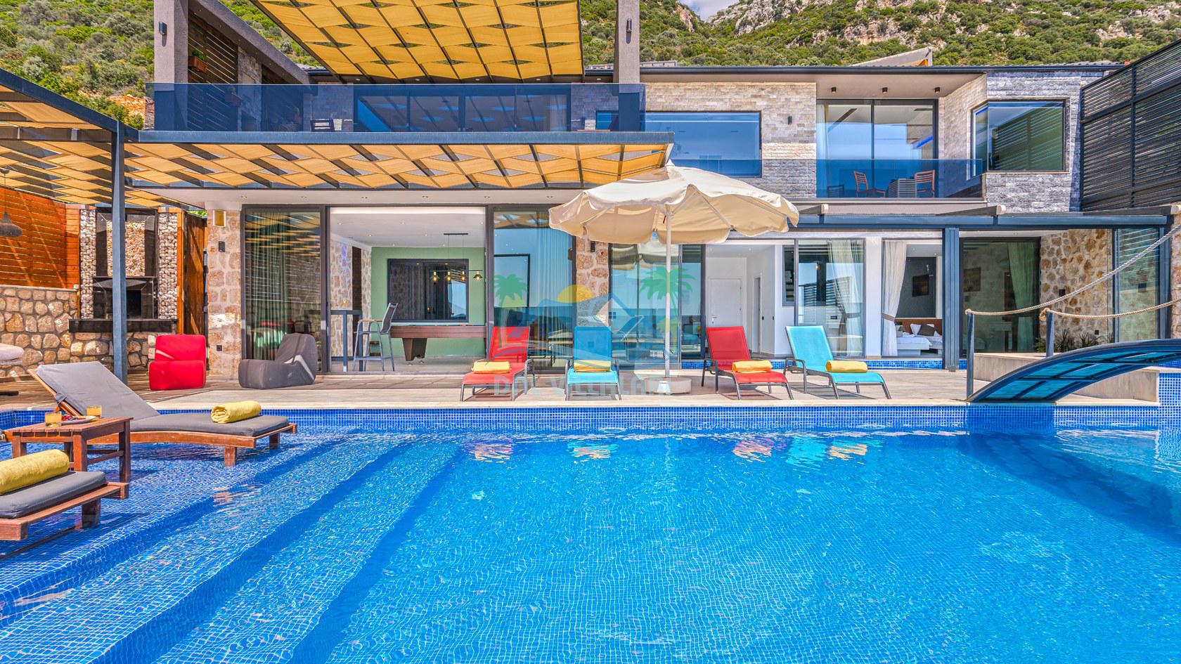 Villa Adalya Duo, Kalkan Kördere mevkiinde konumlanmakta olan eşsiz deniz ve doğa manzarasına hakim kiralık villalarımız arasında yer almaktadır. Modern ve konforlu bir şekilde dizayn edilen yazlık villamızda 3 adet yatak odası bulunmakta olup, 6 kişiye konaklama imkanı sağlamaktadır. Kış aylarında tatil planı yapan misafirlerimiz için jakuzili kapalı ısıtma havuzu, hamam ve sauna yer almaktadır. Havuz ve havuz terası korunaklı hale getirilen kiralık villamızı muhafazakar aileler ve balayı çiftleri rahatlıkla tercih edebilirler. Tatilinizi eğlenceli hale getirebilmek adına langırt, masa tenisi ve bilardo masası yer almaktadır. Aynı zamanda yüzme havuzunun yanında sığ havuz ve çocuk havuzu bulunmaktadır. Çocuk havuzunun içerisinde jakuzi sistemi yer almaktadır. Her bir detayın en ince ayrıntısına kadar düşünüldüğü yazlık villamızda tüm yorgunluğunuzu giderebileceğiniz ve sevdiklerinizle birlikte muhteşem deniz manzarasına karşı keyif yapabileceğiniz bir yazlık villada tatil için Villa Adalya Duo’ yu tercih edebilirsiniz.