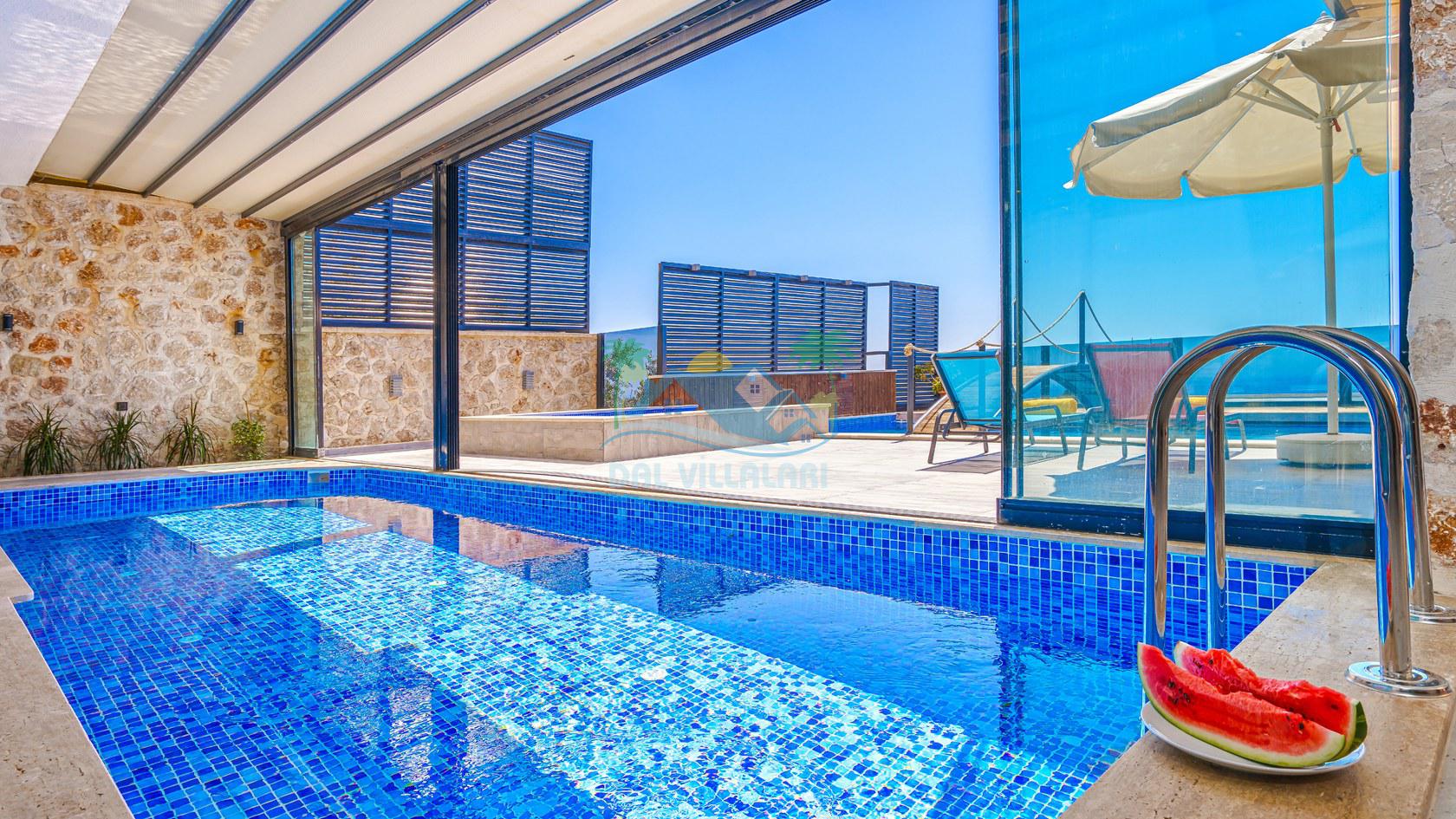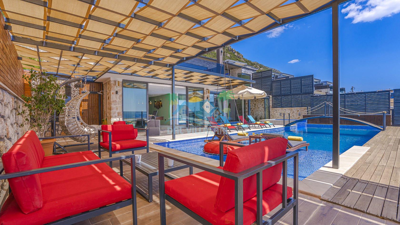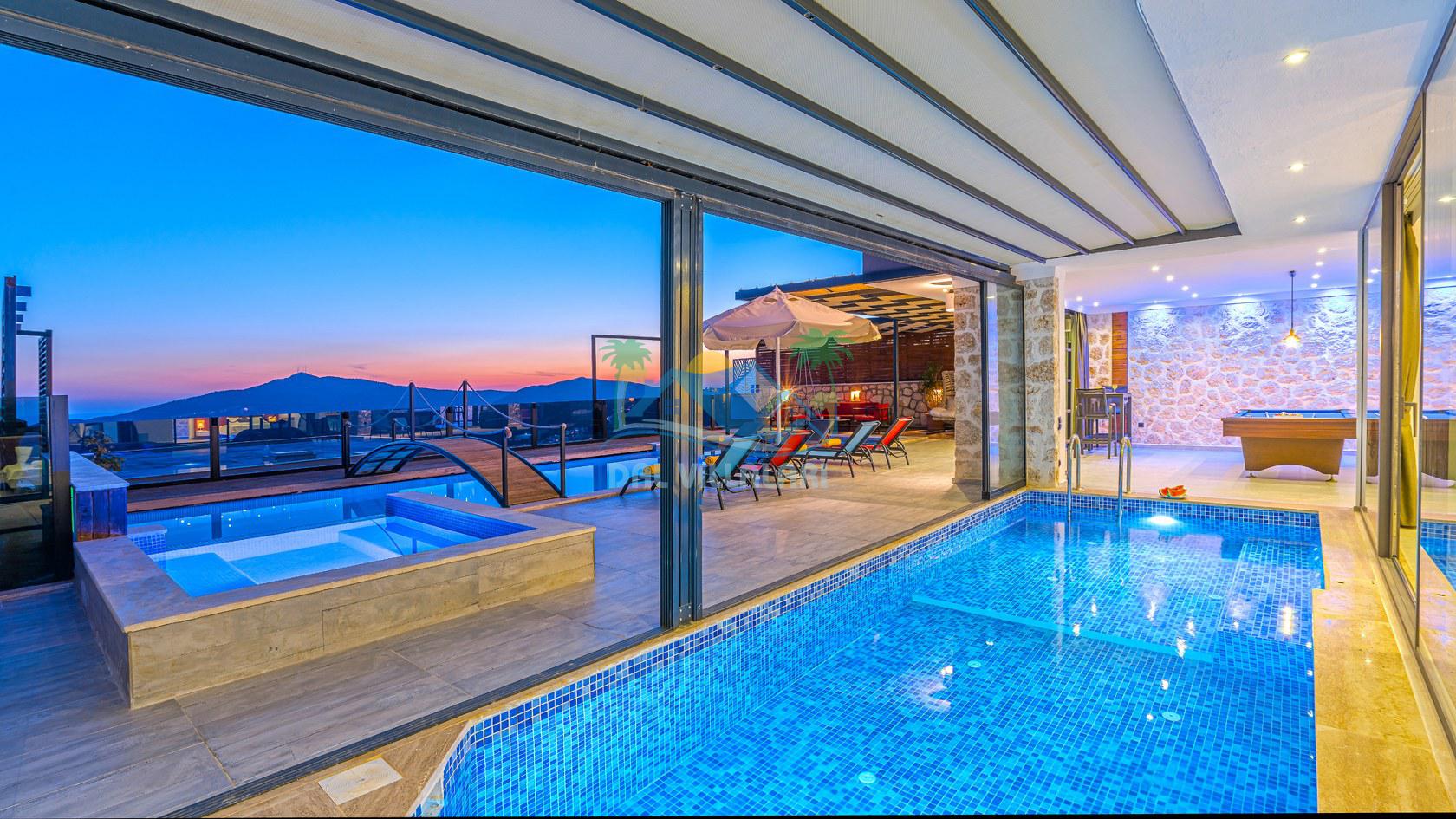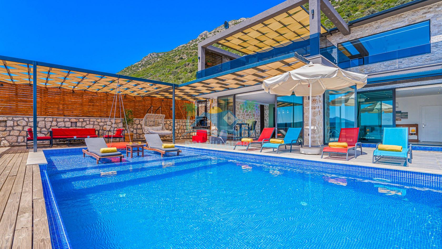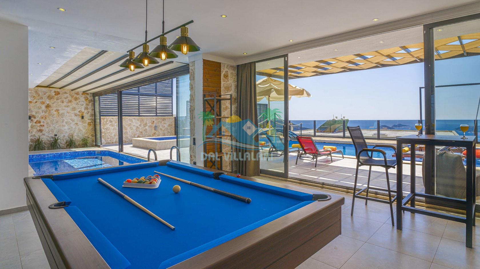 Villa Adalya Duo, Kalkan Kördere mevkiinde konumlanmakta olan eşsiz deniz ve doğa manzarasına hakim kiralık villalarımız arasında yer almaktadır. Modern ve konforlu bir şekilde dizayn edilen yazlık villamızda 3 adet yatak odası bulunmakta olup, 6 kişiye konaklama imkanı sağlamaktadır. Kış aylarında tatil planı yapan misafirlerimiz için jakuzili kapalı ısıtma havuzu, hamam ve sauna yer almaktadır. Havuz ve havuz terası korunaklı hale getirilen kiralık villamızı muhafazakar aileler ve balayı çiftleri rahatlıkla tercih edebilirler. Tatilinizi eğlenceli hale getirebilmek adına langırt, masa tenisi ve bilardo masası yer almaktadır. Aynı zamanda yüzme havuzunun yanında sığ havuz ve çocuk havuzu bulunmaktadır. Çocuk havuzunun içerisinde jakuzi sistemi yer almaktadır. Her bir detayın en ince ayrıntısına kadar düşünüldüğü yazlık villamızda tüm yorgunluğunuzu giderebileceğiniz ve sevdiklerinizle birlikte muhteşem deniz manzarasına karşı keyif yapabileceğiniz bir yazlık villada tatil için Villa Adalya Duo’ yu tercih edebilirsiniz.
