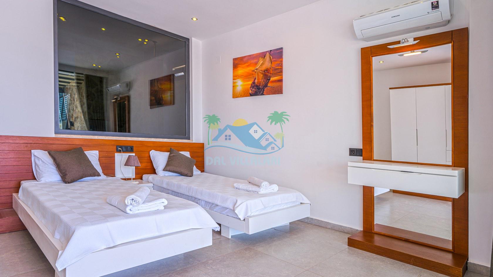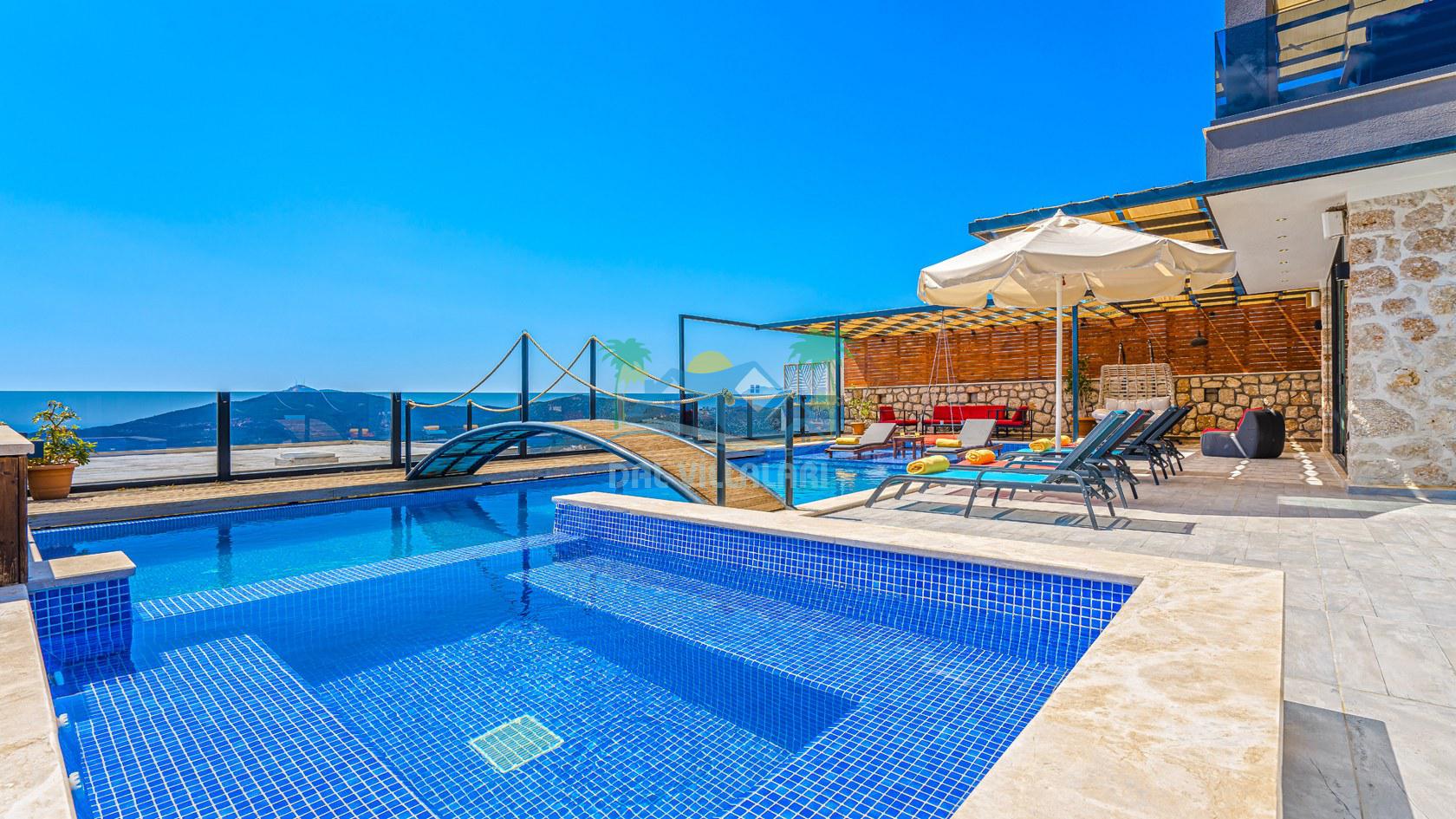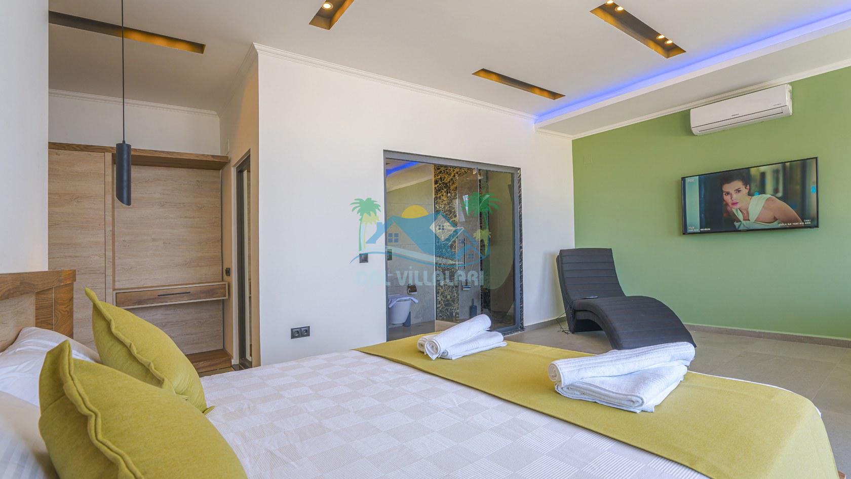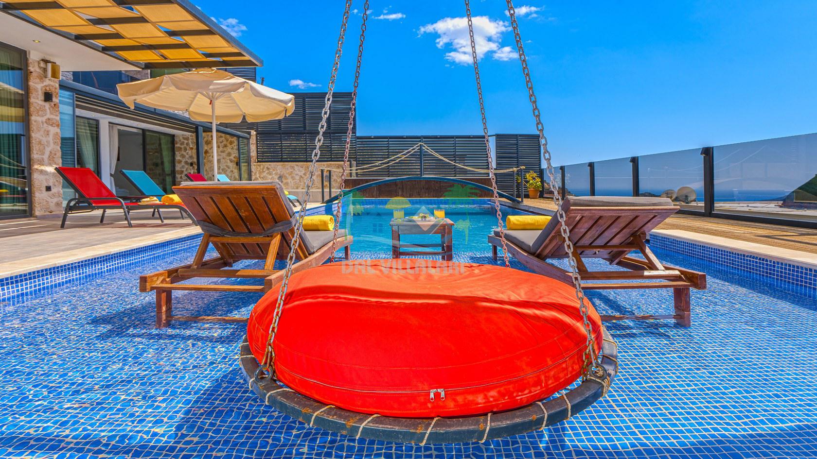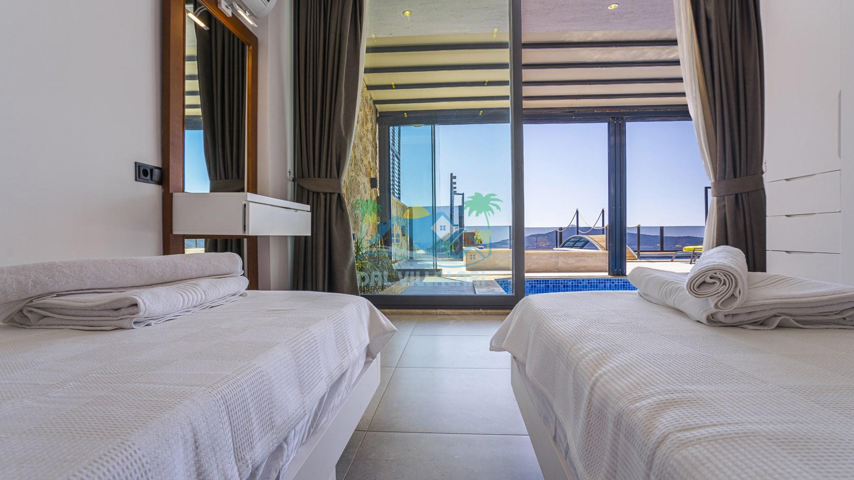 Villa Adalya Duo, Kalkan Kördere mevkiinde konumlanmakta olan eşsiz deniz ve doğa manzarasına hakim kiralık villalarımız arasında yer almaktadır. Modern ve konforlu bir şekilde dizayn edilen yazlık villamızda 3 adet yatak odası bulunmakta olup, 6 kişiye konaklama imkanı sağlamaktadır. Kış aylarında tatil planı yapan misafirlerimiz için jakuzili kapalı ısıtma havuzu, hamam ve sauna yer almaktadır. Havuz ve havuz terası korunaklı hale getirilen kiralık villamızı muhafazakar aileler ve balayı çiftleri rahatlıkla tercih edebilirler. Tatilinizi eğlenceli hale getirebilmek adına langırt, masa tenisi ve bilardo masası yer almaktadır. Aynı zamanda yüzme havuzunun yanında sığ havuz ve çocuk havuzu bulunmaktadır. Çocuk havuzunun içerisinde jakuzi sistemi yer almaktadır. Her bir detayın en ince ayrıntısına kadar düşünüldüğü yazlık villamızda tüm yorgunluğunuzu giderebileceğiniz ve sevdiklerinizle birlikte muhteşem deniz manzarasına karşı keyif yapabileceğiniz bir yazlık villada tatil için Villa Adalya Duo’ yu tercih edebilirsiniz.