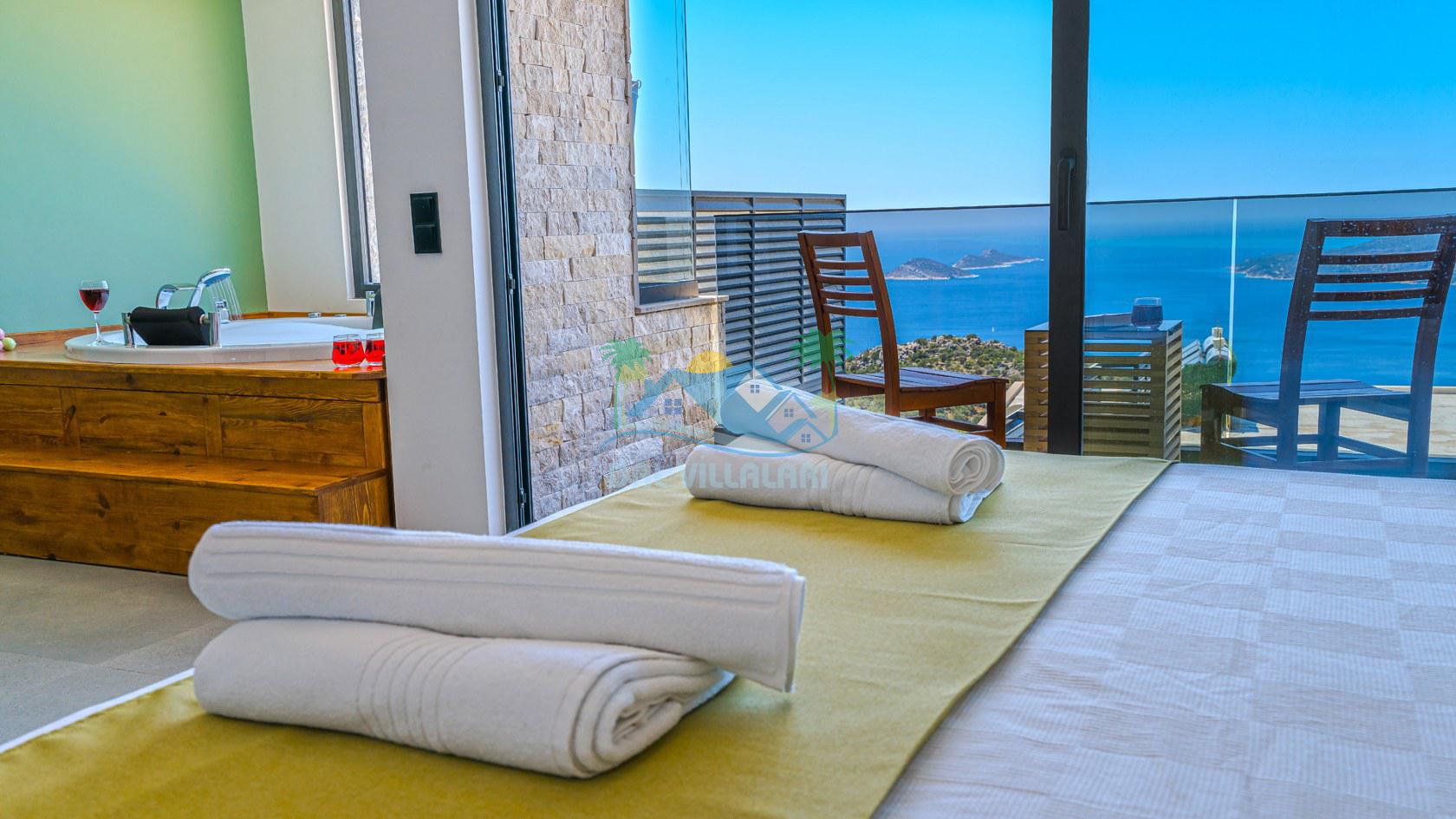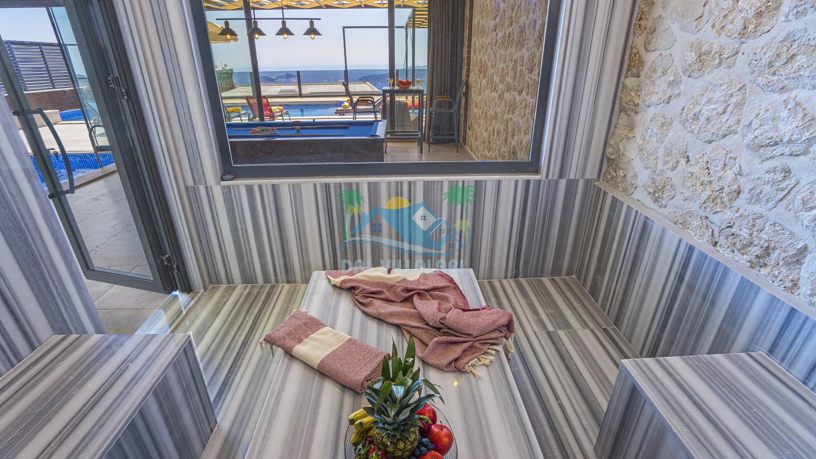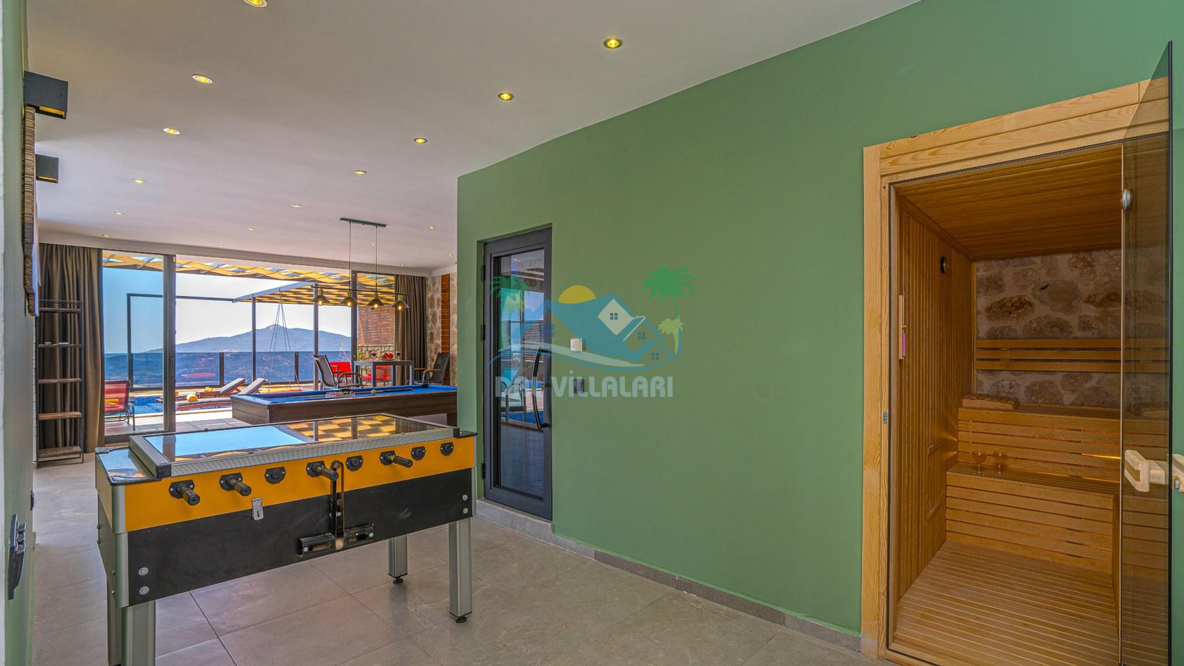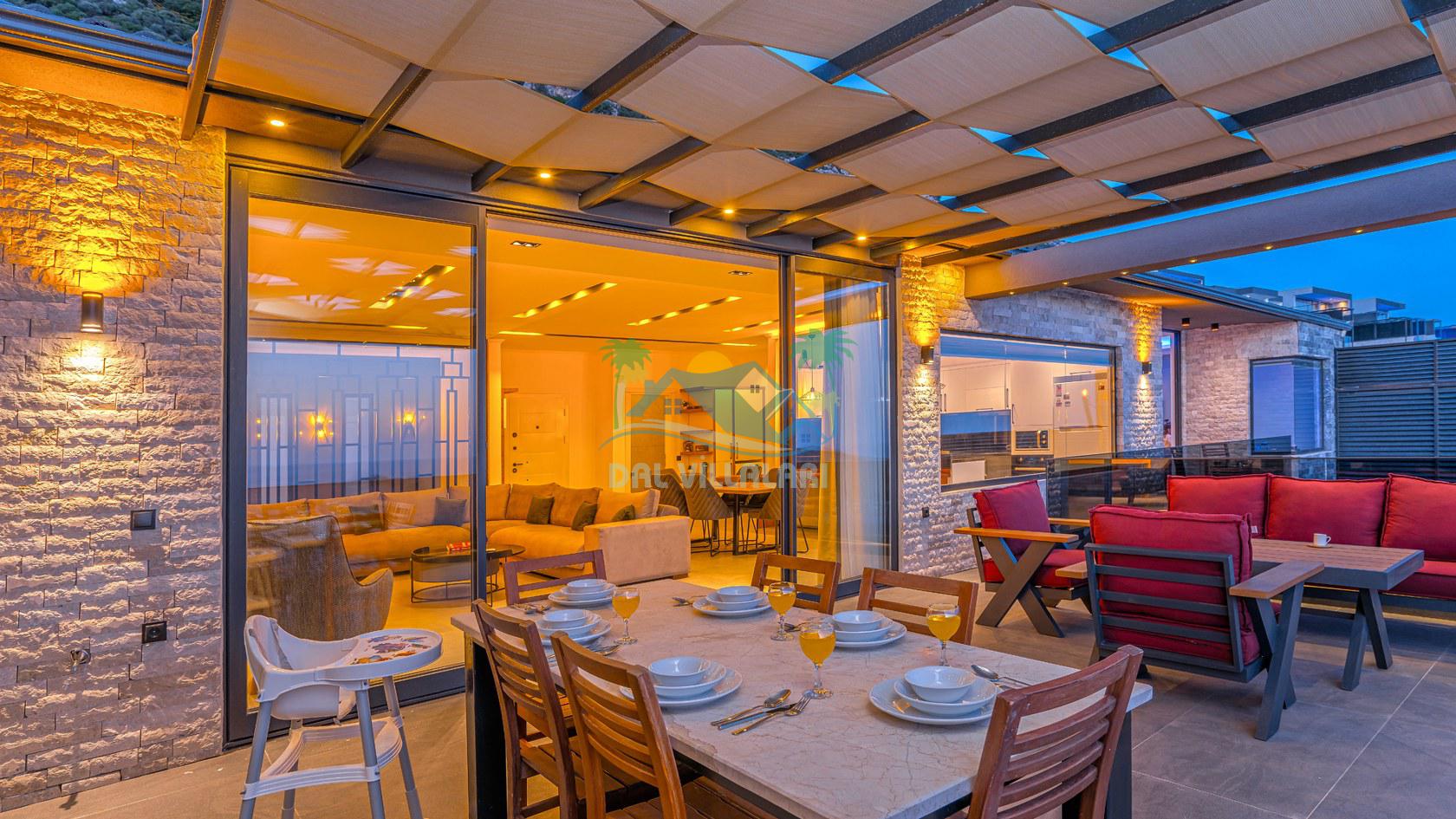 Villa Adalya Duo, Kalkan Kördere mevkiinde konumlanmakta olan eşsiz deniz ve doğa manzarasına hakim kiralık villalarımız arasında yer almaktadır. Modern ve konforlu bir şekilde dizayn edilen yazlık villamızda 3 adet yatak odası bulunmakta olup, 6 kişiye konaklama imkanı sağlamaktadır. Kış aylarında tatil planı yapan misafirlerimiz için jakuzili kapalı ısıtma havuzu, hamam ve sauna yer almaktadır. Havuz ve havuz terası korunaklı hale getirilen kiralık villamızı muhafazakar aileler ve balayı çiftleri rahatlıkla tercih edebilirler. Tatilinizi eğlenceli hale getirebilmek adına langırt, masa tenisi ve bilardo masası yer almaktadır. Aynı zamanda yüzme havuzunun yanında sığ havuz ve çocuk havuzu bulunmaktadır. Çocuk havuzunun içerisinde jakuzi sistemi yer almaktadır. Her bir detayın en ince ayrıntısına kadar düşünüldüğü yazlık villamızda tüm yorgunluğunuzu giderebileceğiniz ve sevdiklerinizle birlikte muhteşem deniz manzarasına karşı keyif yapabileceğiniz bir yazlık villada tatil için Villa Adalya Duo’ yu tercih edebilirsiniz.