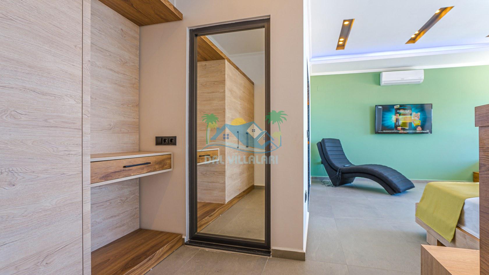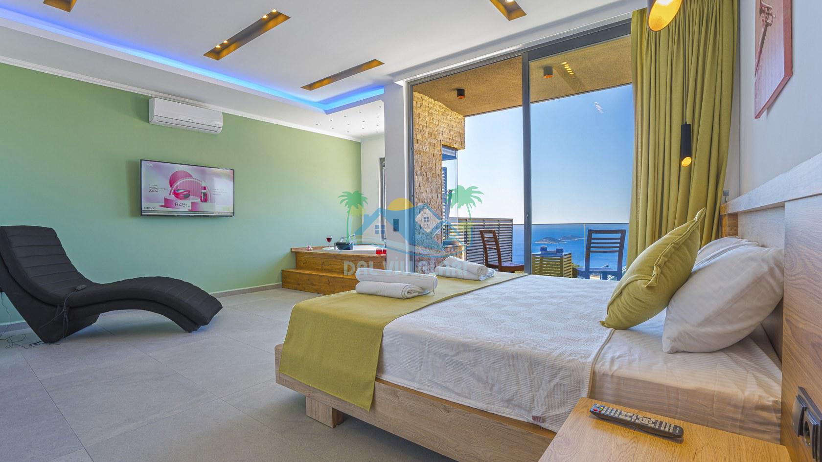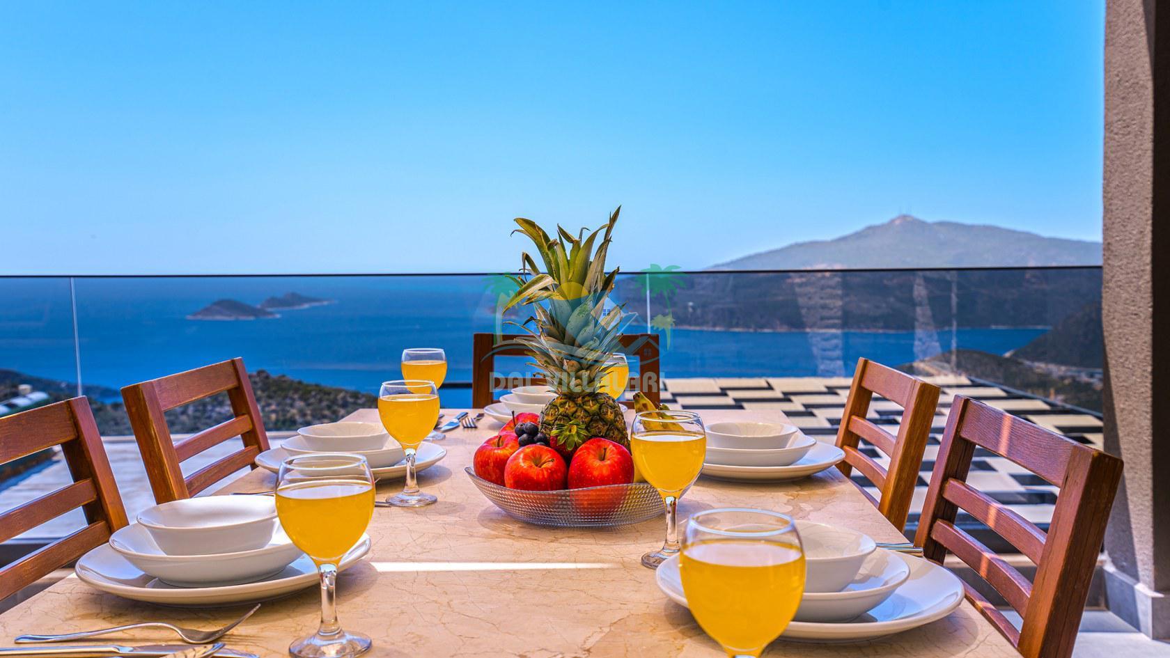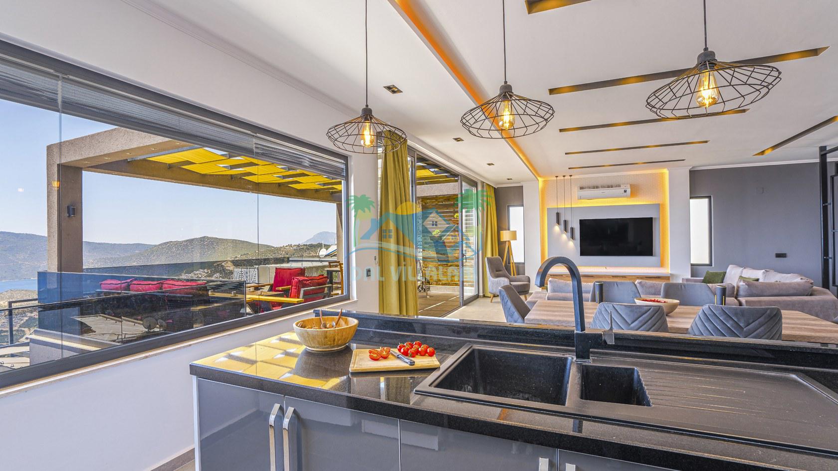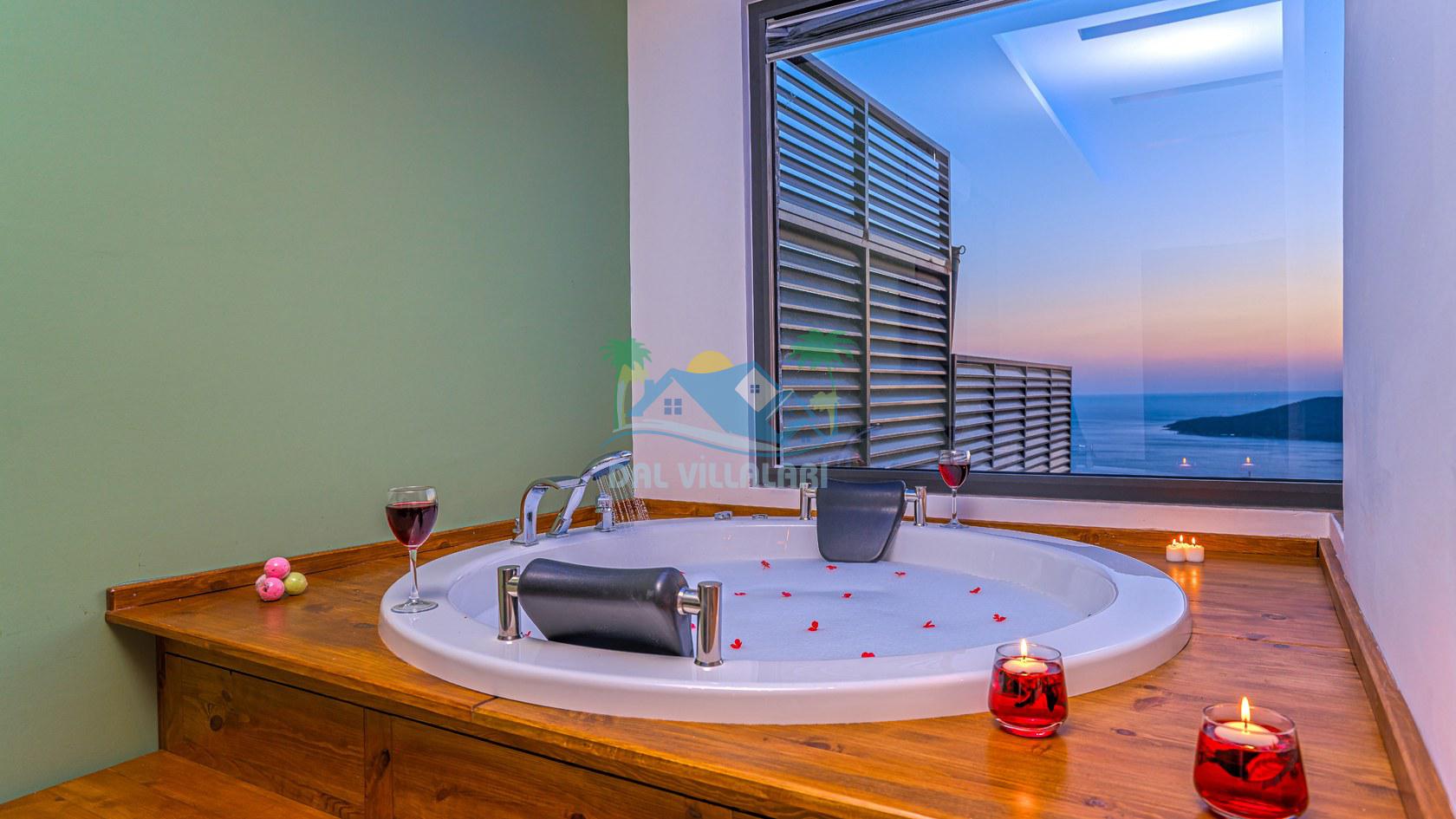 Villa Adalya Duo, Kalkan Kördere mevkiinde konumlanmakta olan eşsiz deniz ve doğa manzarasına hakim kiralık villalarımız arasında yer almaktadır. Modern ve konforlu bir şekilde dizayn edilen yazlık villamızda 3 adet yatak odası bulunmakta olup, 6 kişiye konaklama imkanı sağlamaktadır. Kış aylarında tatil planı yapan misafirlerimiz için jakuzili kapalı ısıtma havuzu, hamam ve sauna yer almaktadır. Havuz ve havuz terası korunaklı hale getirilen kiralık villamızı muhafazakar aileler ve balayı çiftleri rahatlıkla tercih edebilirler. Tatilinizi eğlenceli hale getirebilmek adına langırt, masa tenisi ve bilardo masası yer almaktadır. Aynı zamanda yüzme havuzunun yanında sığ havuz ve çocuk havuzu bulunmaktadır. Çocuk havuzunun içerisinde jakuzi sistemi yer almaktadır. Her bir detayın en ince ayrıntısına kadar düşünüldüğü yazlık villamızda tüm yorgunluğunuzu giderebileceğiniz ve sevdiklerinizle birlikte muhteşem deniz manzarasına karşı keyif yapabileceğiniz bir yazlık villada tatil için Villa Adalya Duo’ yu tercih edebilirsiniz.