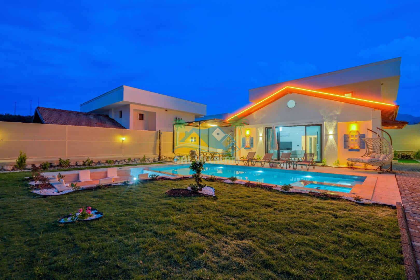 Muğla Seydikemer Çaltıözü bölgesinde, 4 yatak odalı ve 8 kişilik konaklama kapsitesi ile çocuklu kalabalık aileler için güzel bir villa olan Villa Adelin 8 , yemyeşil bahçesi ve şık iç tasarımı ile kalabalık aileler için ideal bir tatil villasıdır. Yeşil bahçesi içerisinde oldukça keyifli bir atmosfere ve yaşam alanına sahip villamızda tüm gün dinlenebileceğiniz güzel bir çardak, damla salıncak, bahçe oturma grubu ve yemek masası bulunur. Villamız 2 katlı olup, villanın bahçesinde ateş çukuru ve jakuzili havuz bulunmaktadır. Villaya en yakın denize girme imkanı Çalış Plajı’dır.