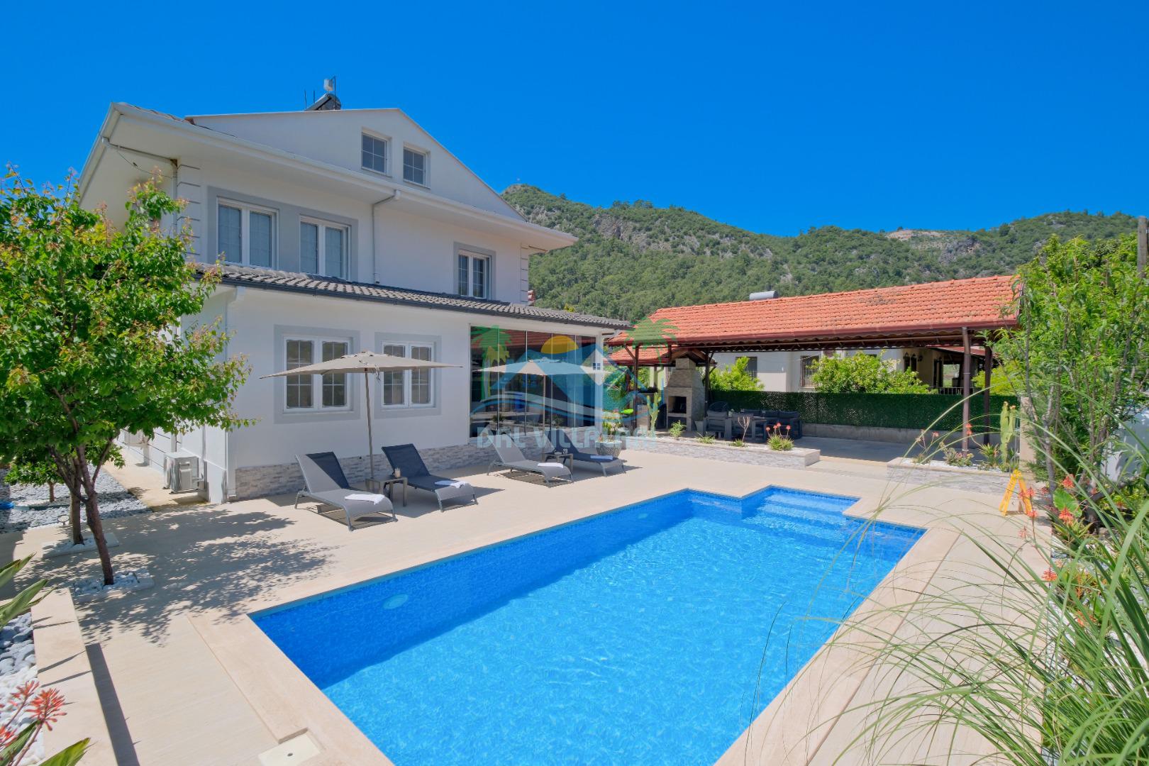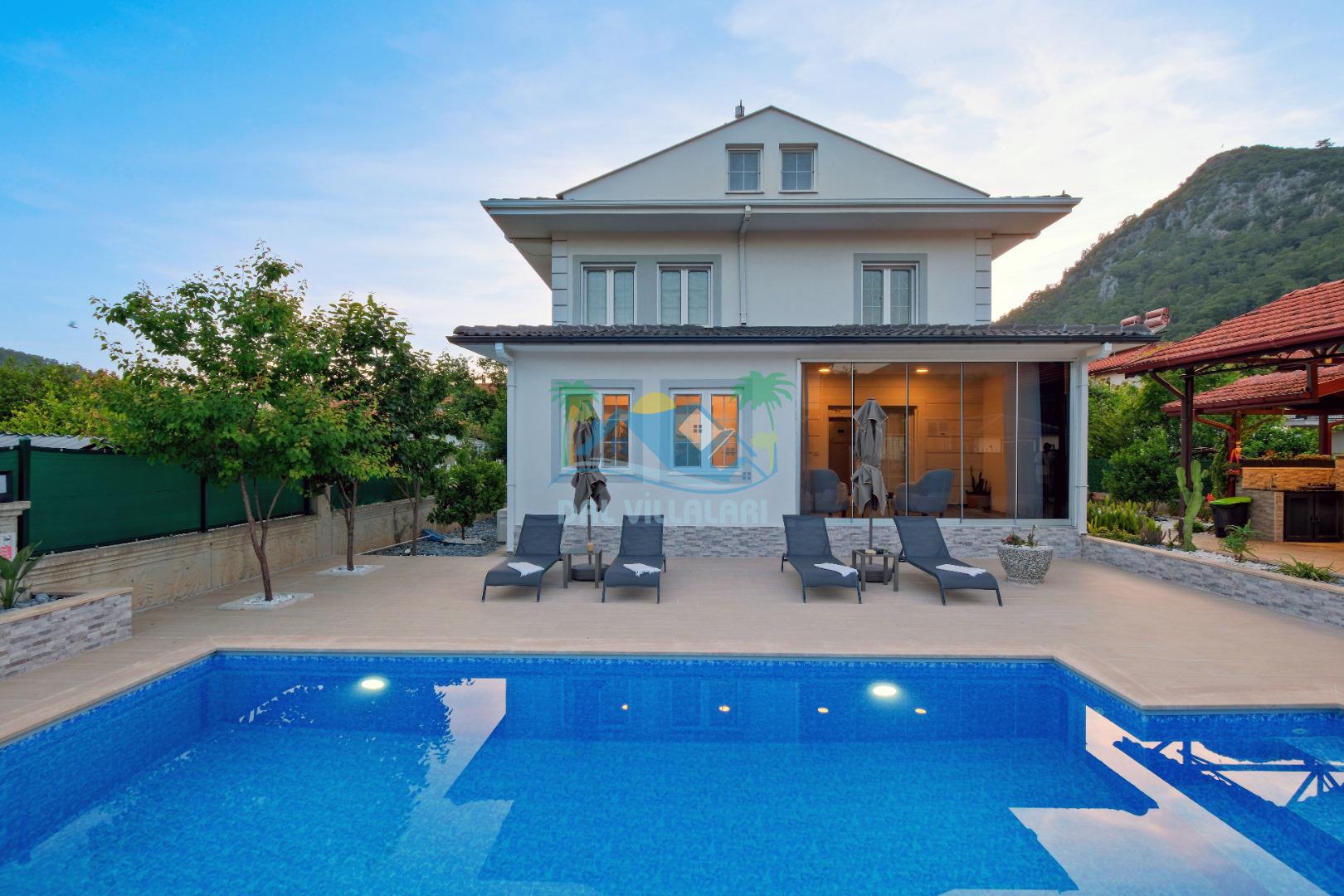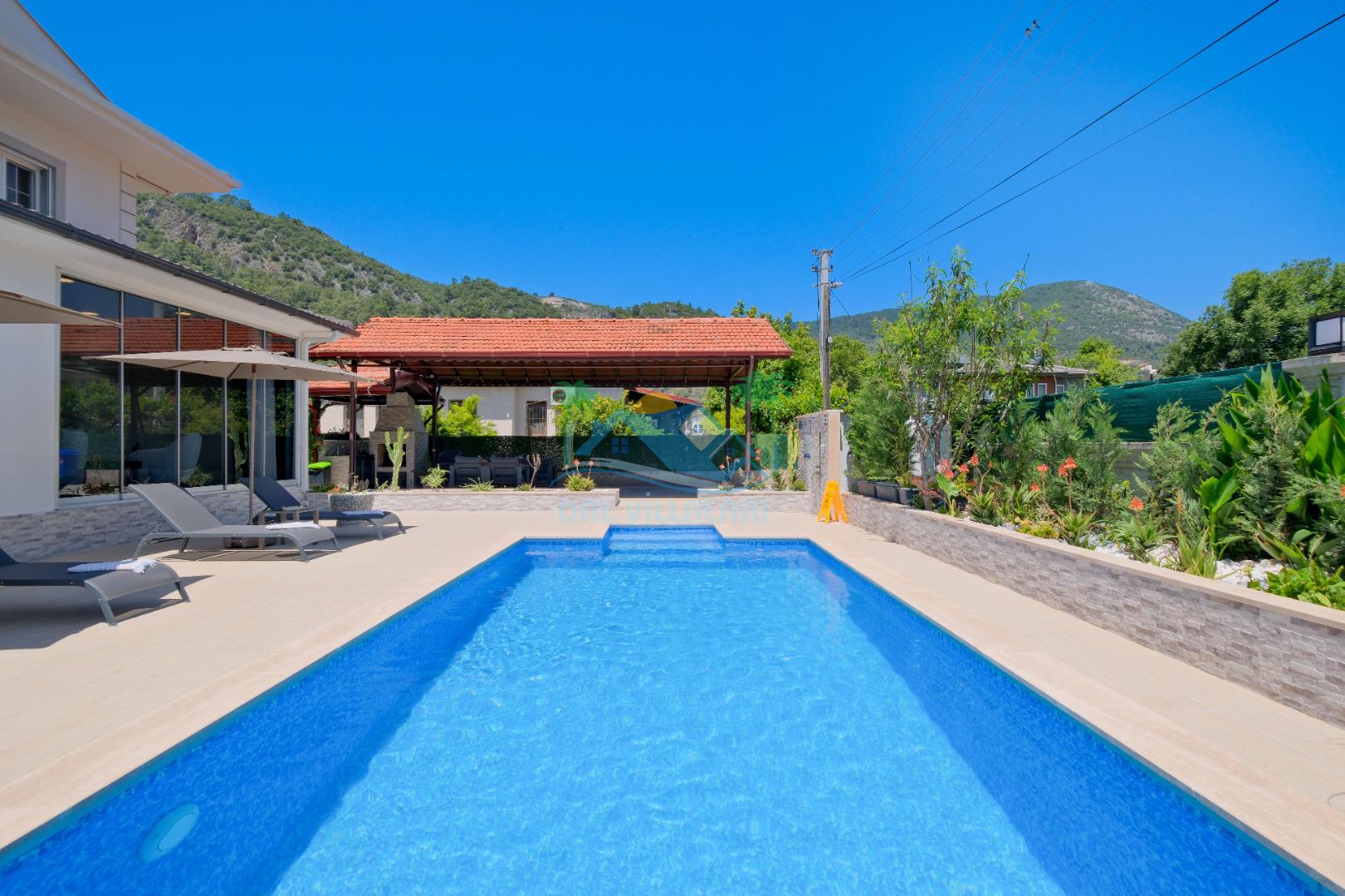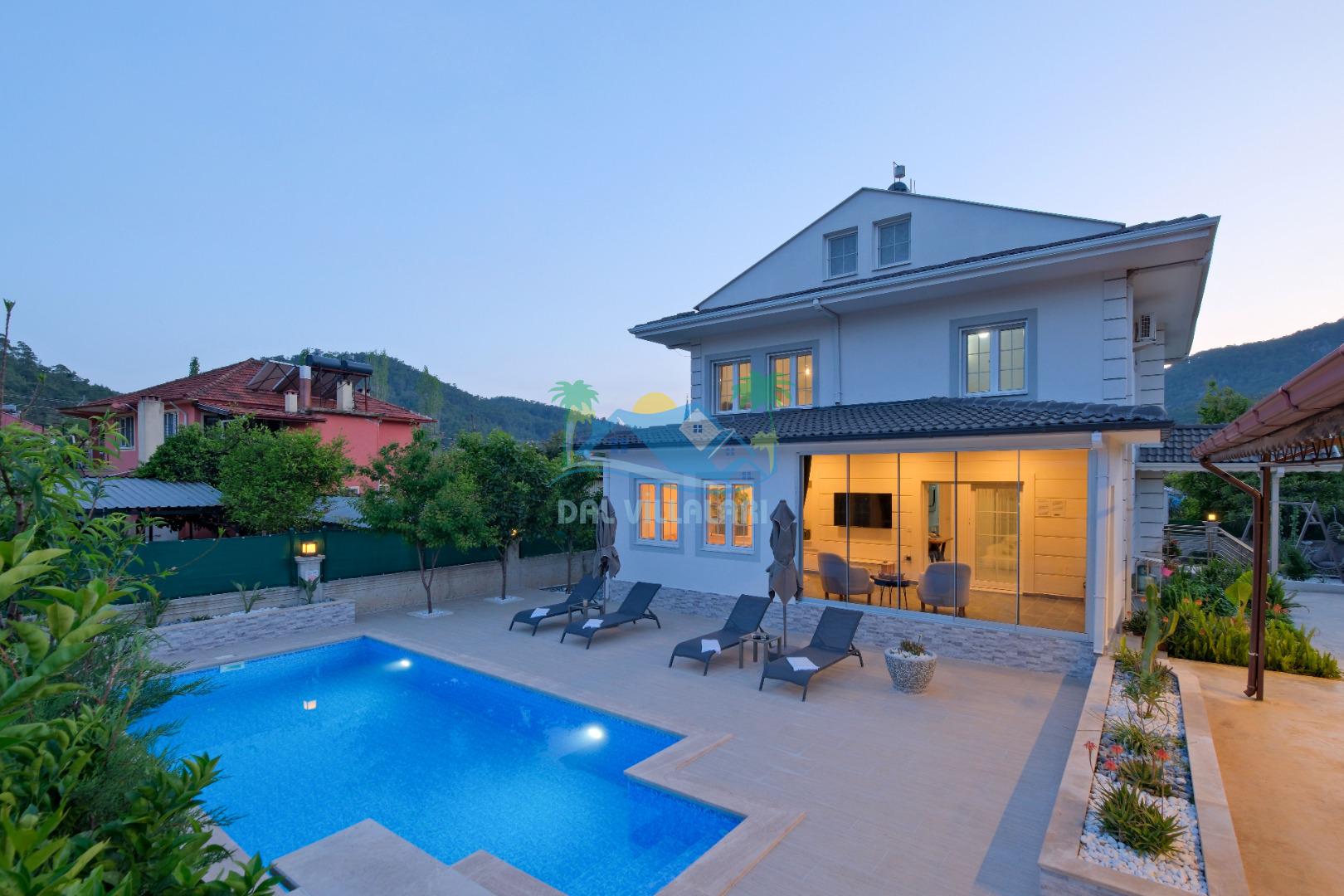 Göcek İnlice köyünde, inlice halk plajına yürüme mesafesinde, yemyeşil çam ormanları arasında, kaliteli ve şık eşyalarla donatılmış, büyük bakımlı bir bahçe içerisinde konumlu özel bir villadır. Villamız marketlere, restorantlara yürüme mesafesinde olup, 2 yatak odalı ve 4 kişilik konaklama kapasitesine sahip, geniş ve ferah kullanım alanları bulunan özel yüzme havuzlu, zemin katında yatak odası bulunan, özel bakımlı bahçe, çocuk oyun alanaları ve otoparkı bulunan elit bir villadır. Sevdiklerinizle birlikte gözlerden uzak unutulmaz bir villa tatili için Villa Adelya sizleri bekliyor.
