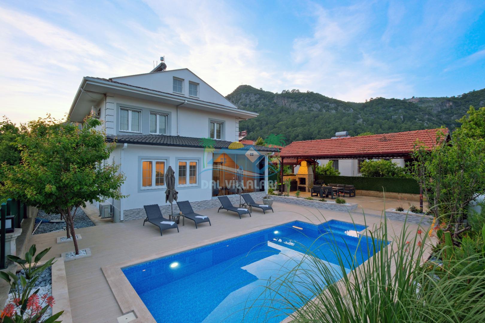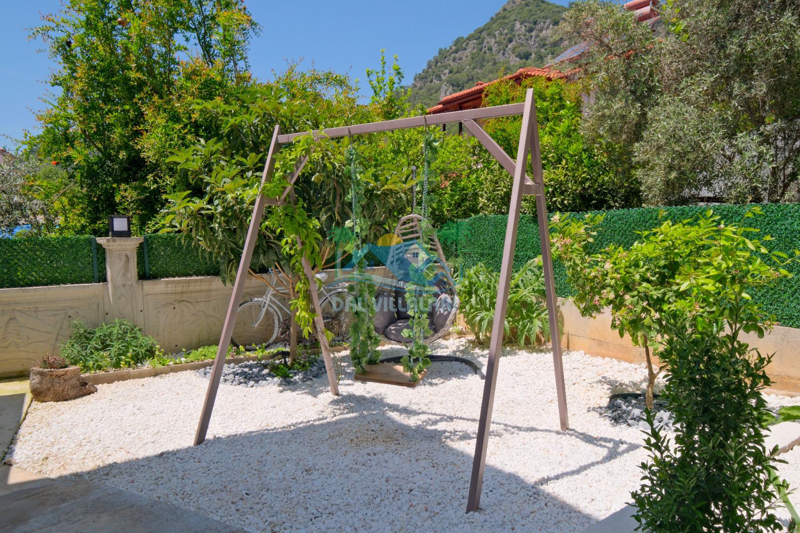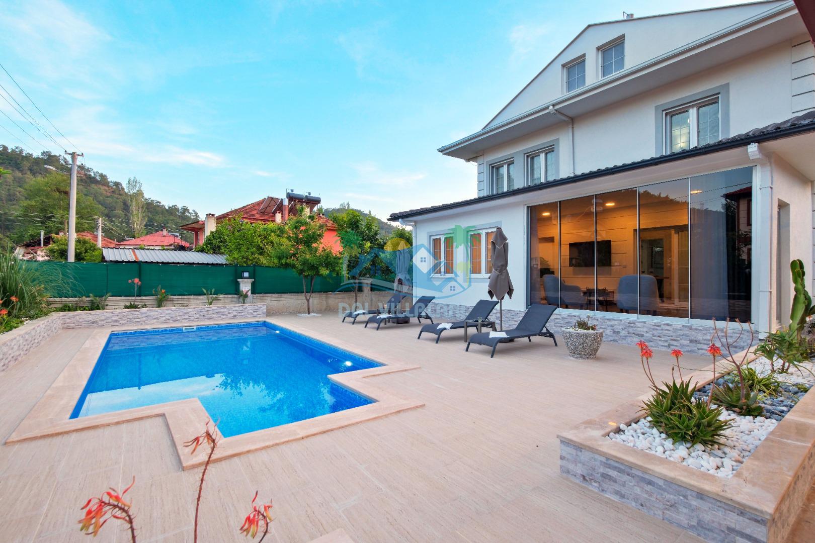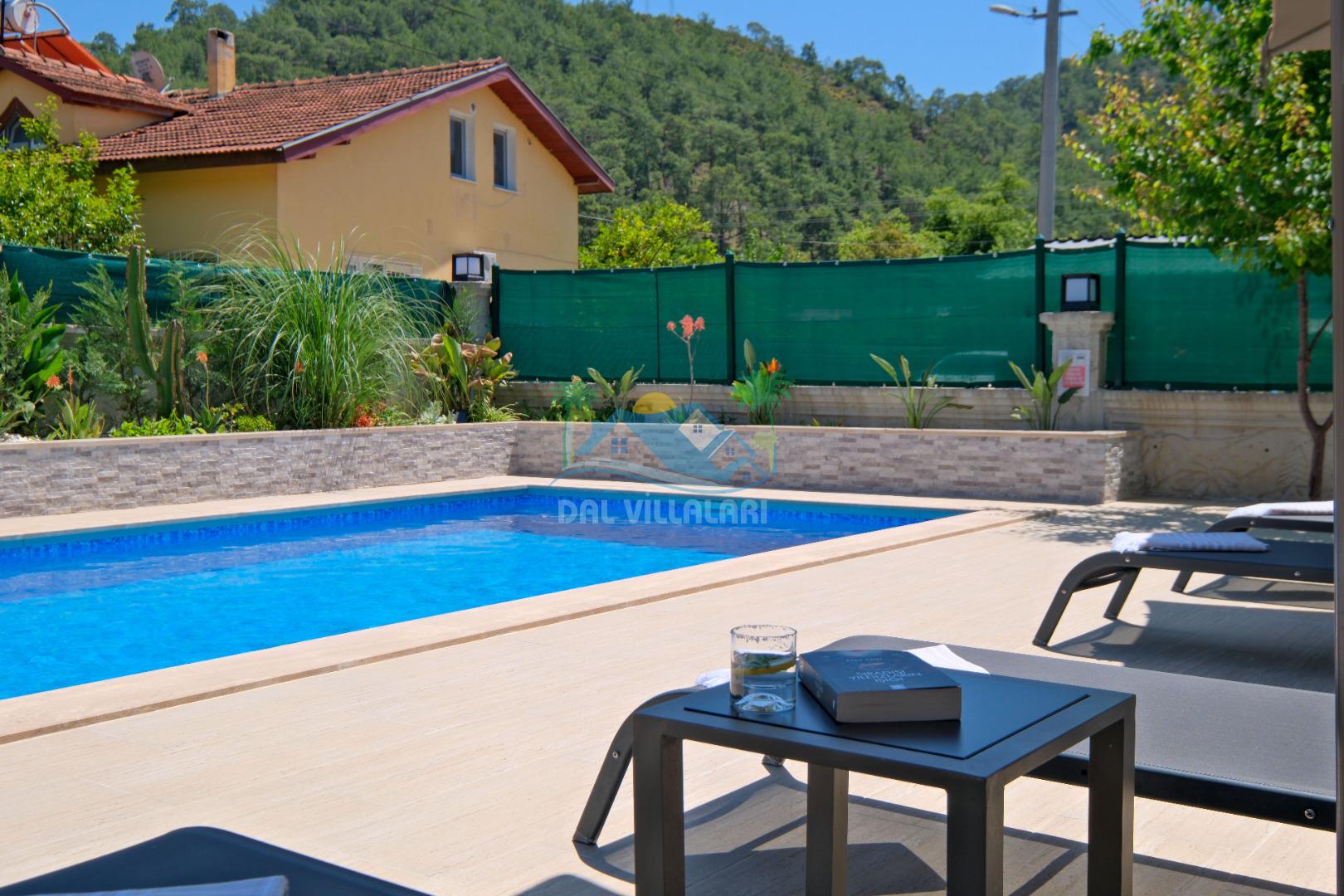 Göcek İnlice köyünde, inlice halk plajına yürüme mesafesinde, yemyeşil çam ormanları arasında, kaliteli ve şık eşyalarla donatılmış, büyük bakımlı bir bahçe içerisinde konumlu özel bir villadır. Villamız marketlere, restorantlara yürüme mesafesinde olup, 2 yatak odalı ve 4 kişilik konaklama kapasitesine sahip, geniş ve ferah kullanım alanları bulunan özel yüzme havuzlu, zemin katında yatak odası bulunan, özel bakımlı bahçe, çocuk oyun alanaları ve otoparkı bulunan elit bir villadır. Sevdiklerinizle birlikte gözlerden uzak unutulmaz bir villa tatili için Villa Adelya sizleri bekliyor.