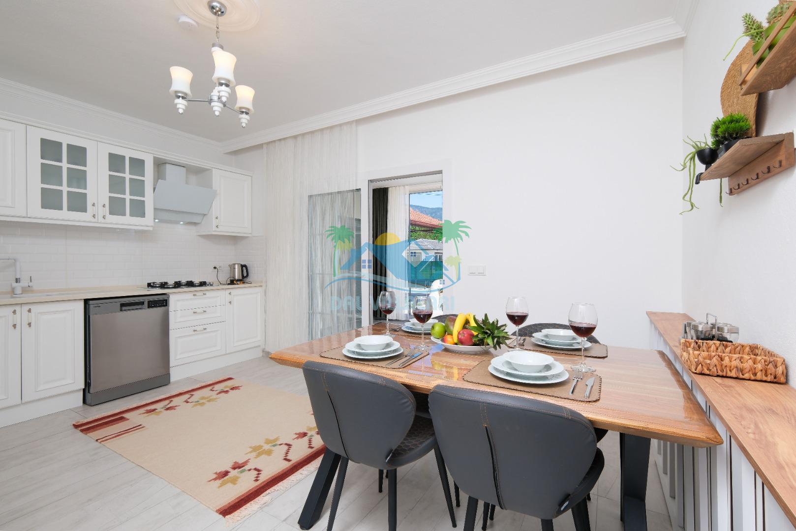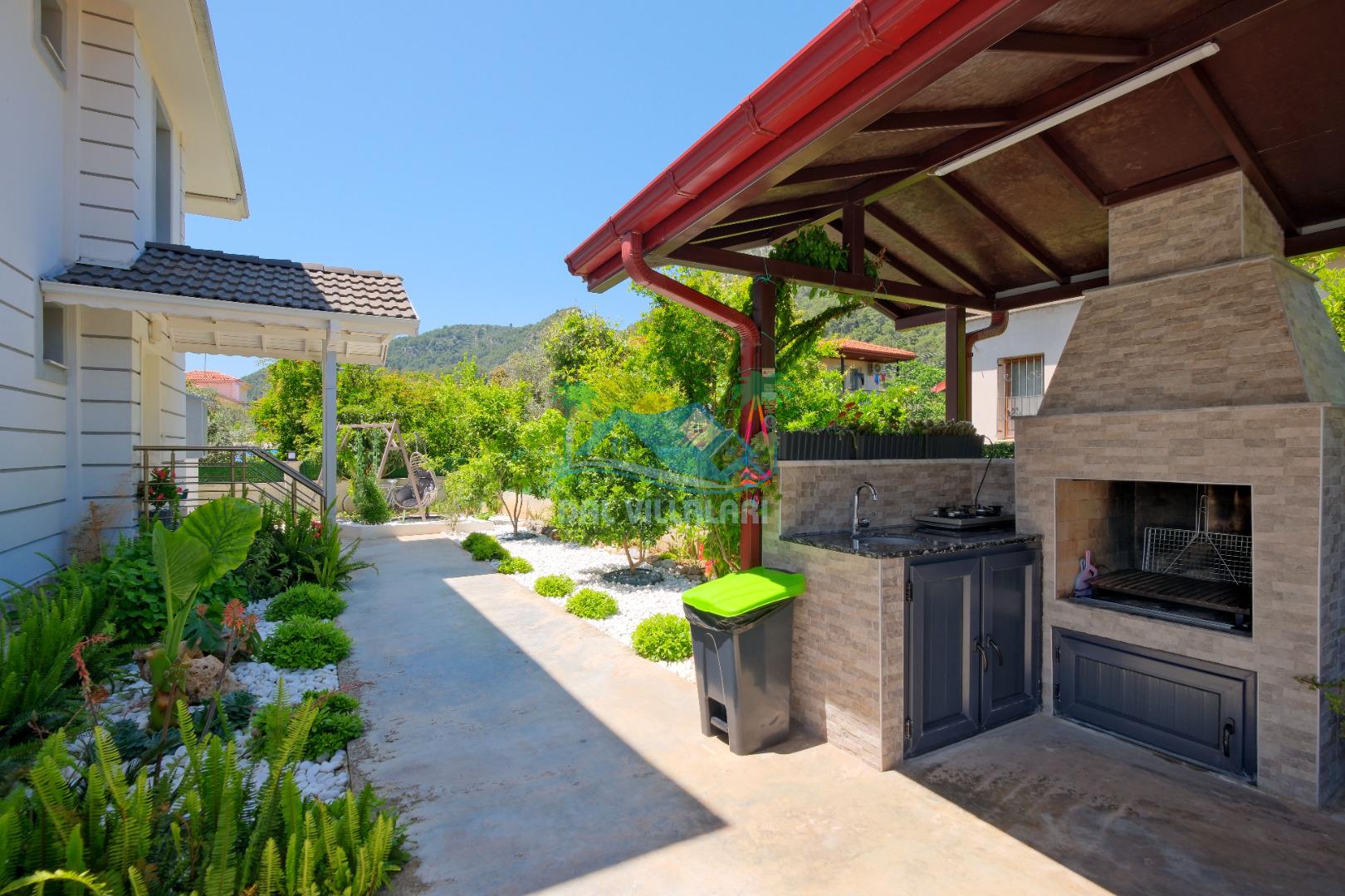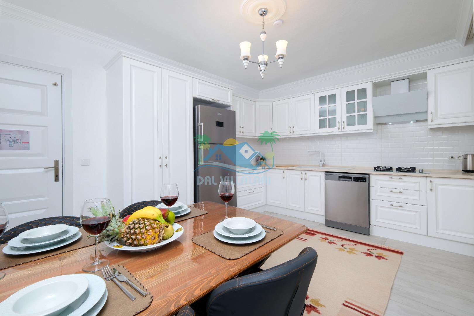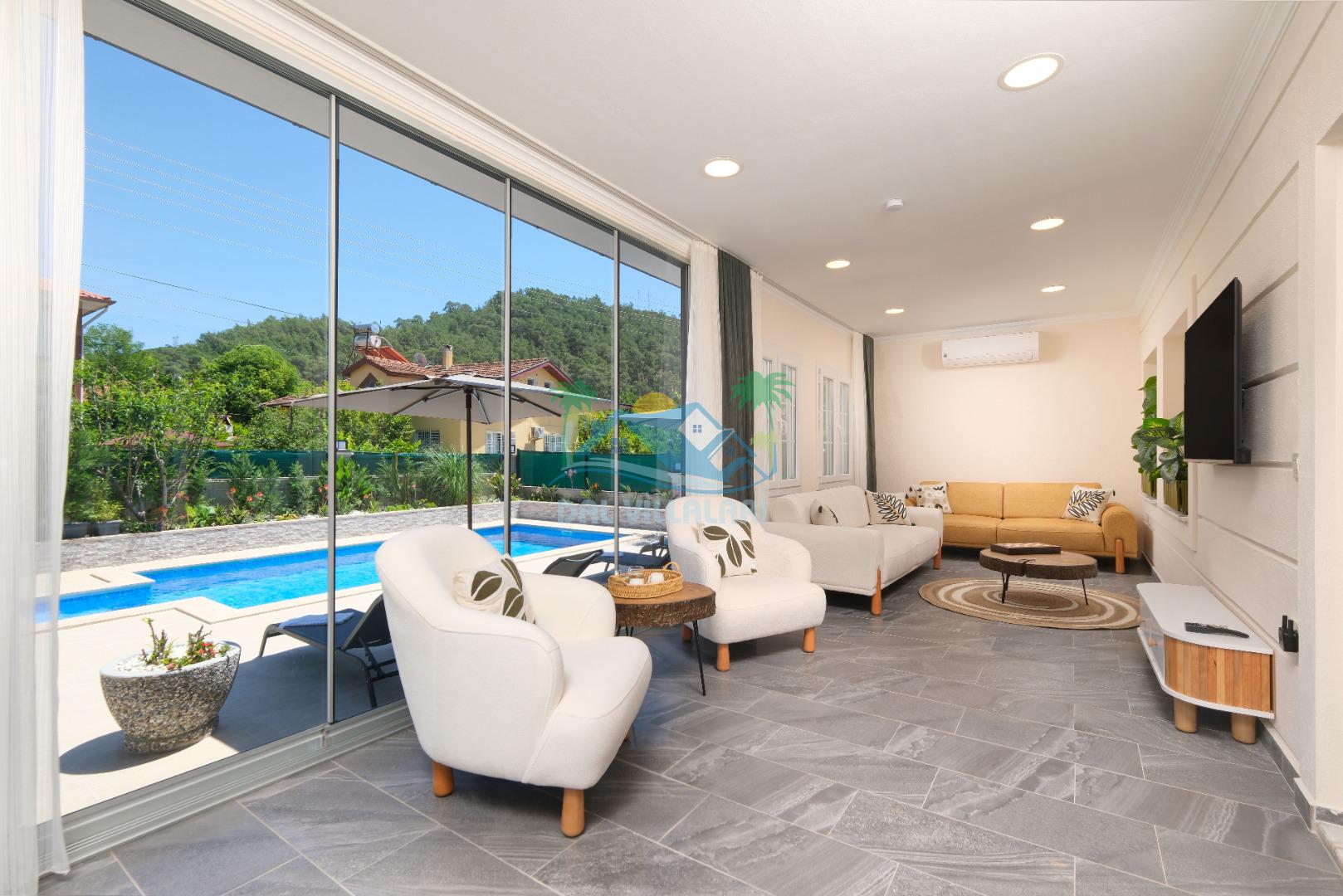 Villamızın Mutfağı modern cam balkonu ve mobilyaları ile döşeli olup, yine kamelyasında oturma koltukları bulunmaktadır.