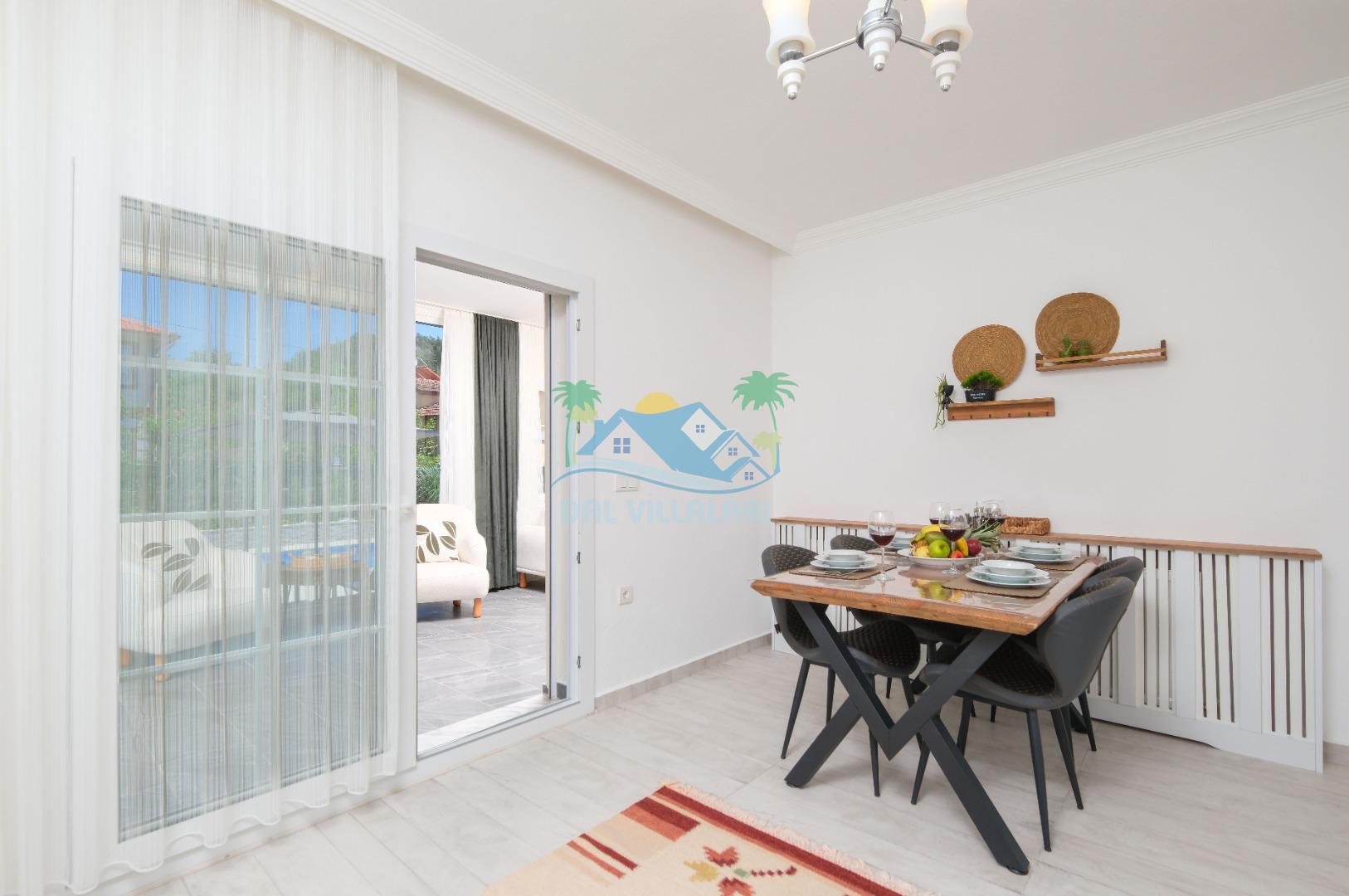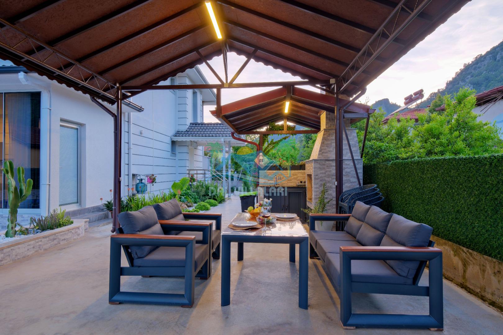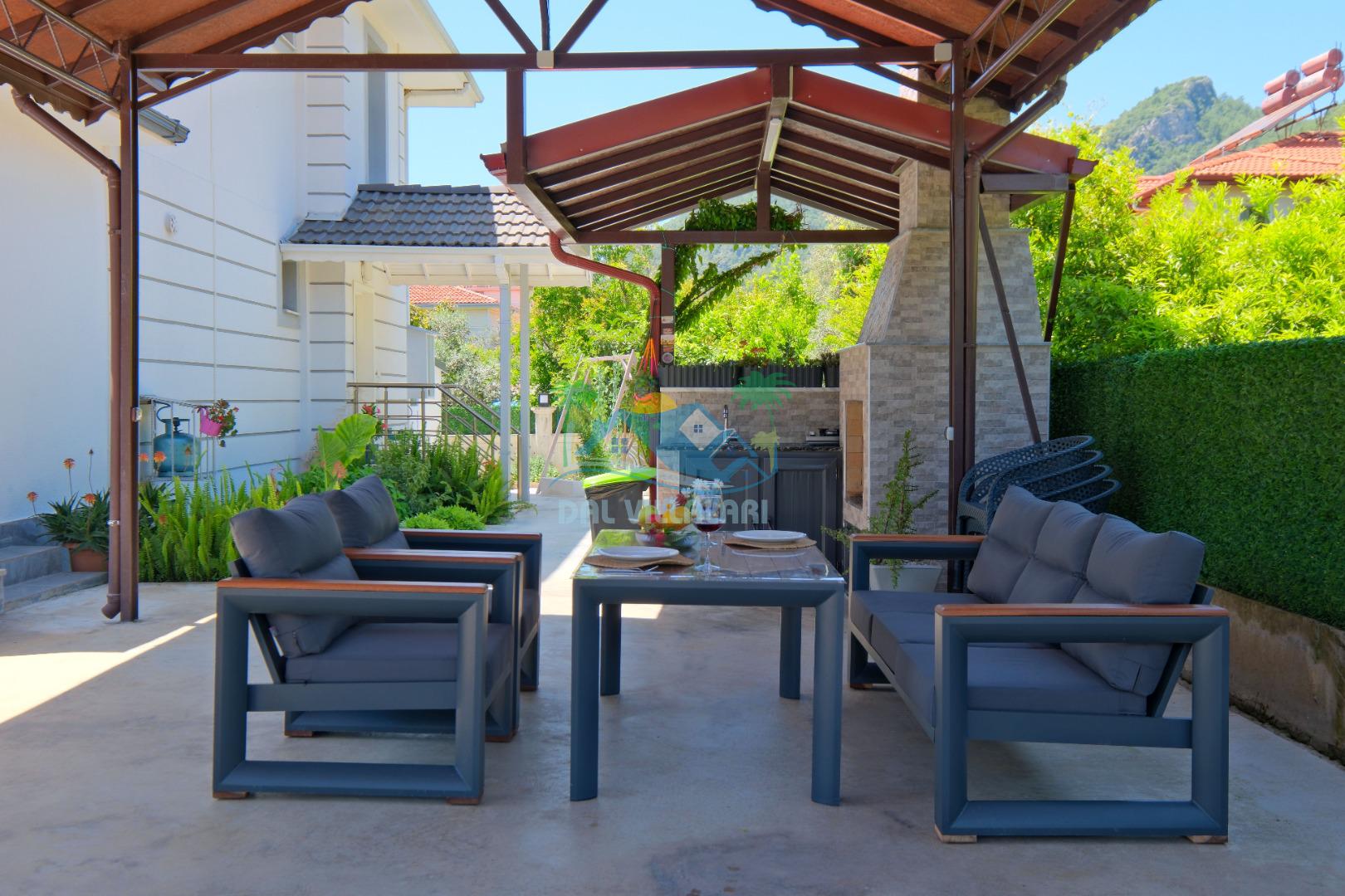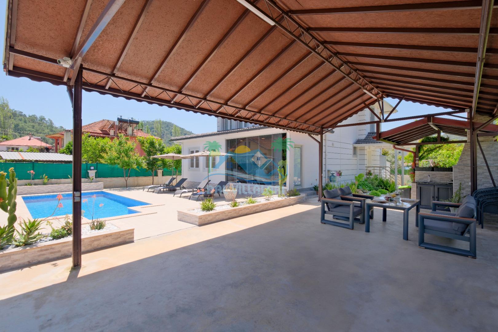 Villamızın Mutfağı modern cam balkonu ve mobilyaları ile döşeli olup, yine kamelyasında oturma koltukları bulunmaktadır.