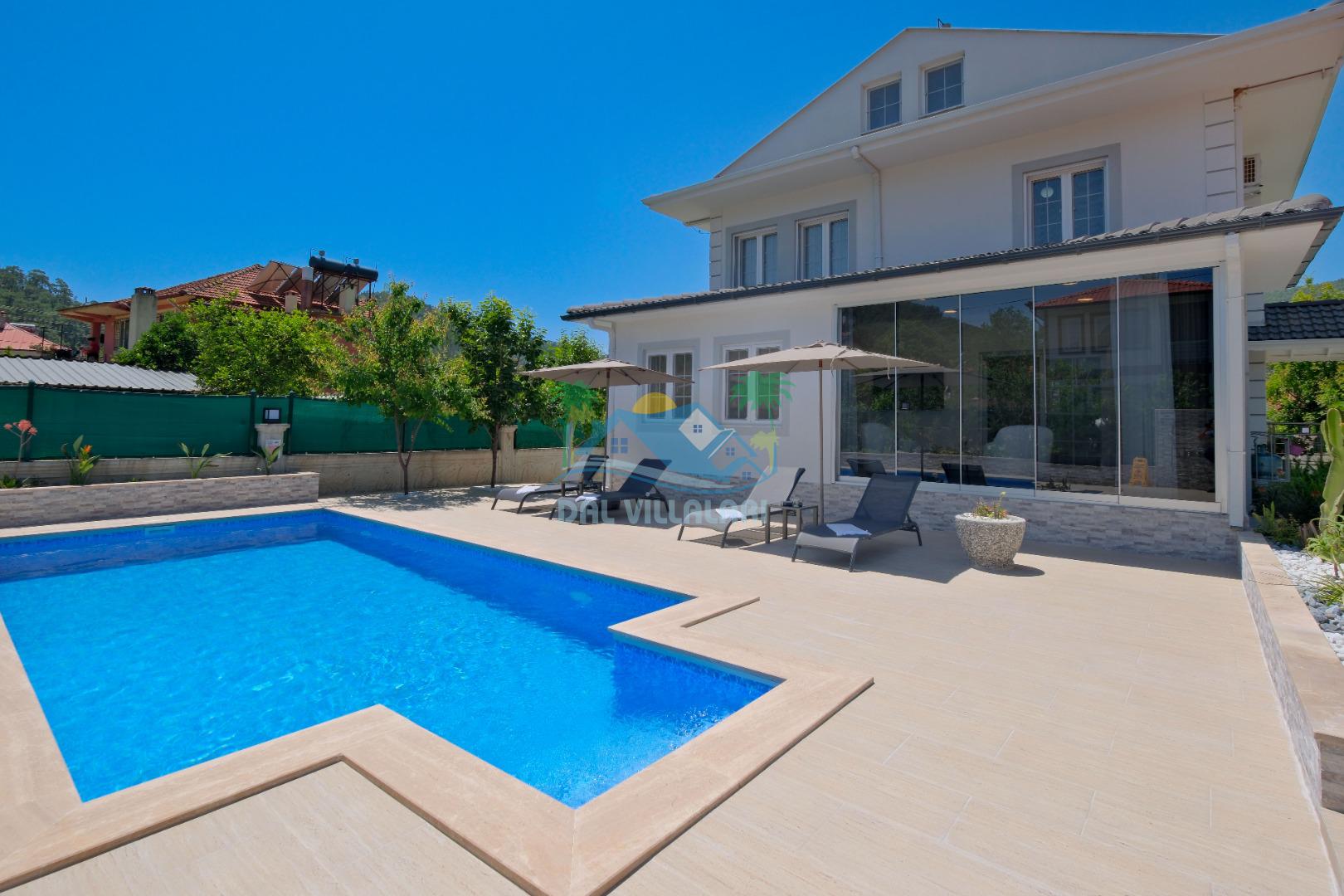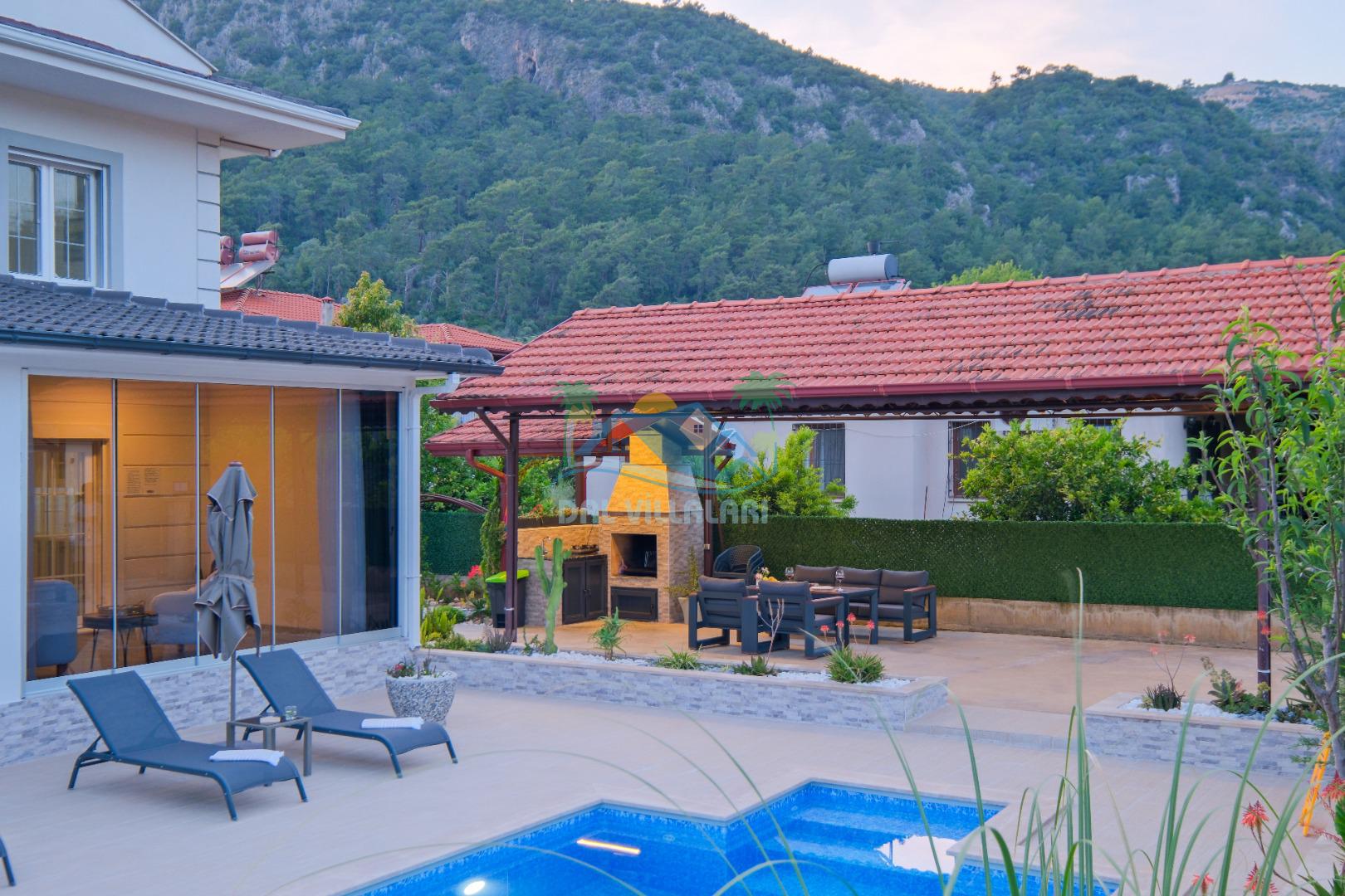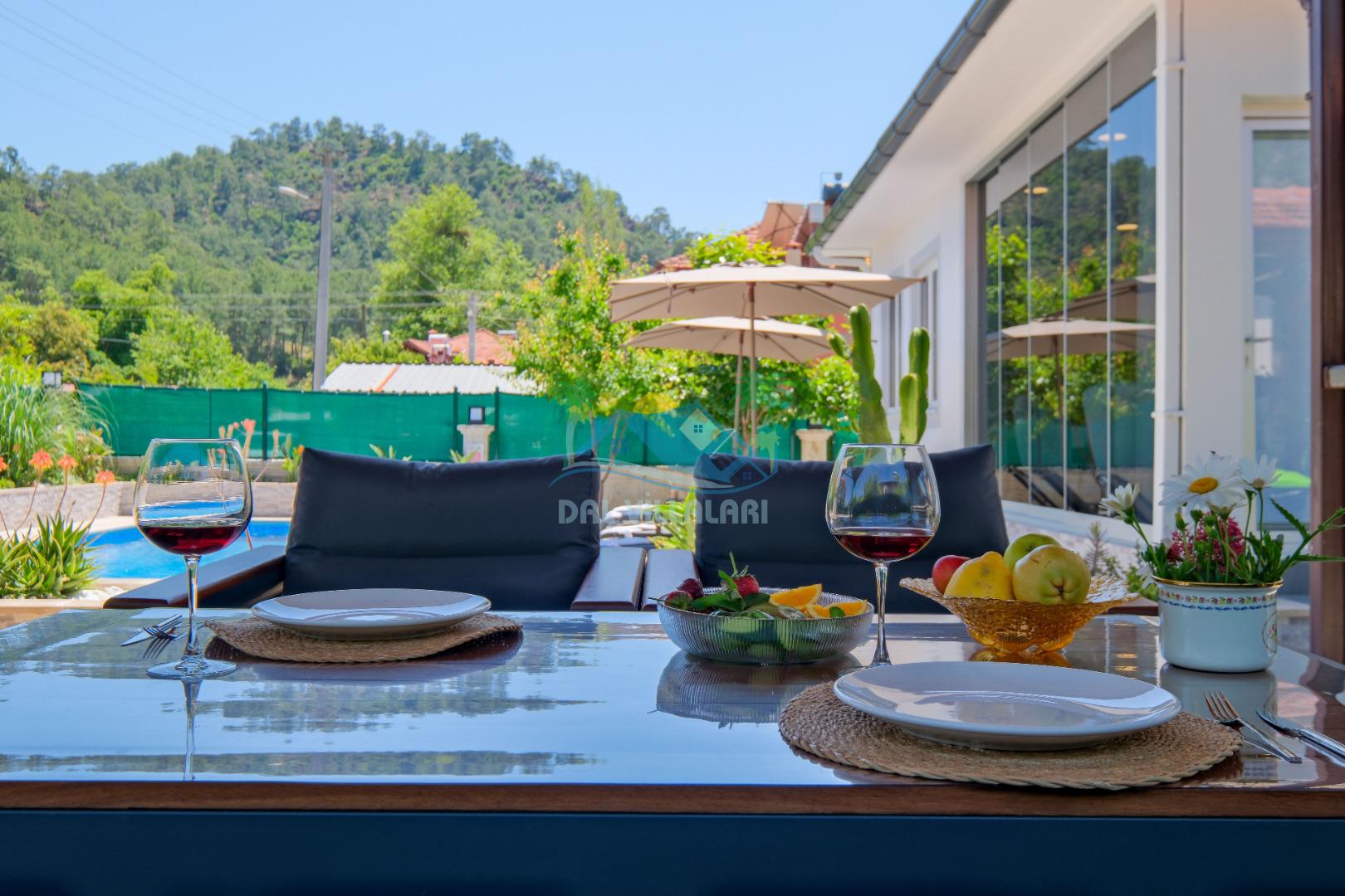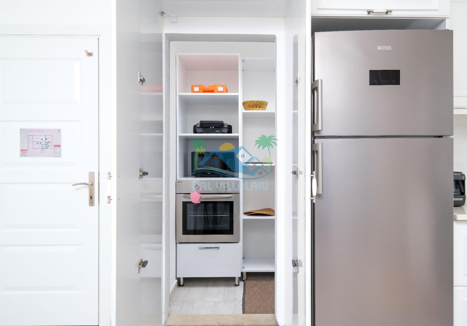 Villamızın Mutfağı modern cam balkonu ve mobilyaları ile döşeli olup, yine kamelyasında oturma koltukları bulunmaktadır.