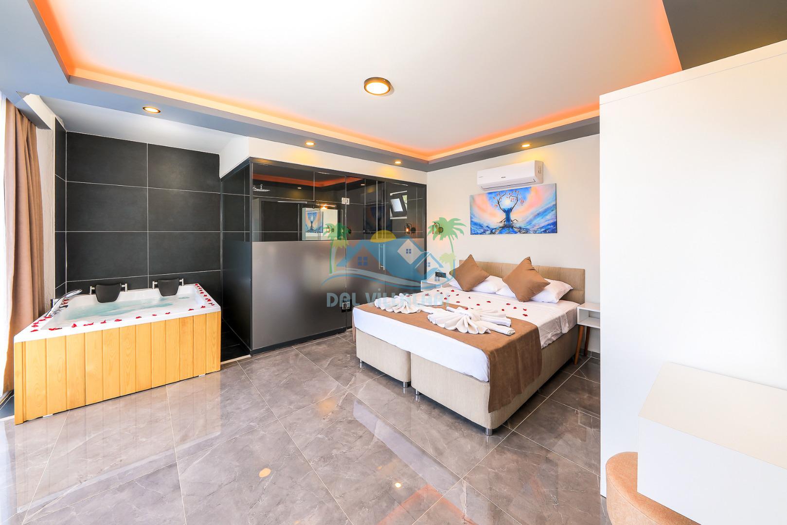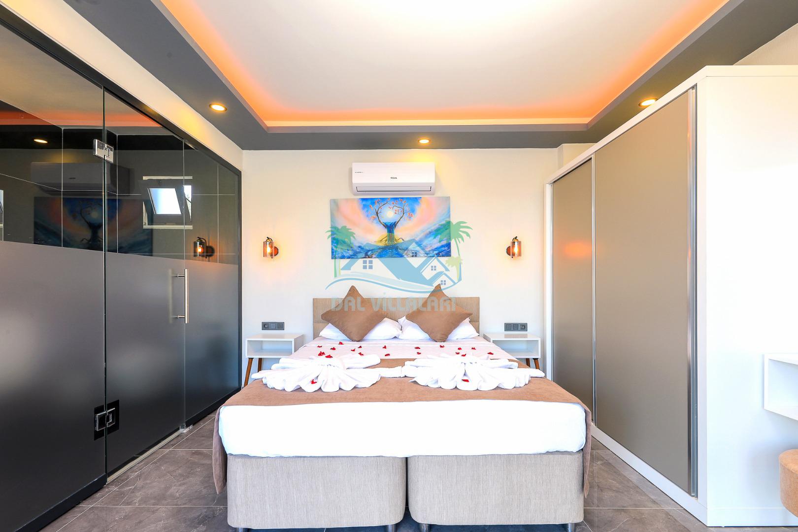 1.Yatak odası: Çift kişilik bir adet yatak, elbise dolabı, komodin, klima, jakuzi, banyo ve tuvalet bulunmaktadır.