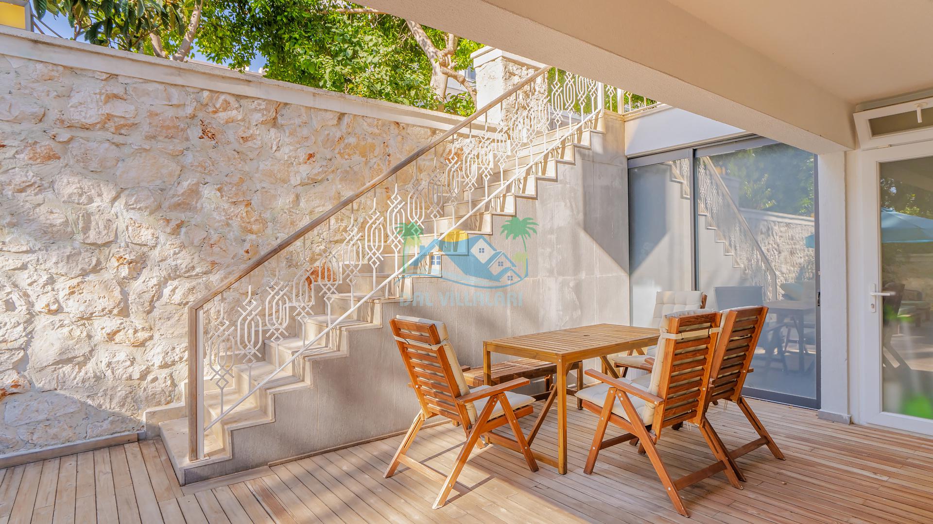 Villa Alpin, Kalkan’ın tam merkezinde, deniz manzarasına sahip ve şık tasarımıyla dikkat çeken 6 kişilik konaklama kapasitesine sahip bir villadır. Kalkan çarşısına yürüyüş mesafesinde, ünlü Kalkan denizine ise sadece 400 metre uzaklıkta bulunan villa, hem rahat bir tatil hem de merkezi konumu sayesinde bölgenin sunduğu tüm olanaklara kolay erişim sağlar.
