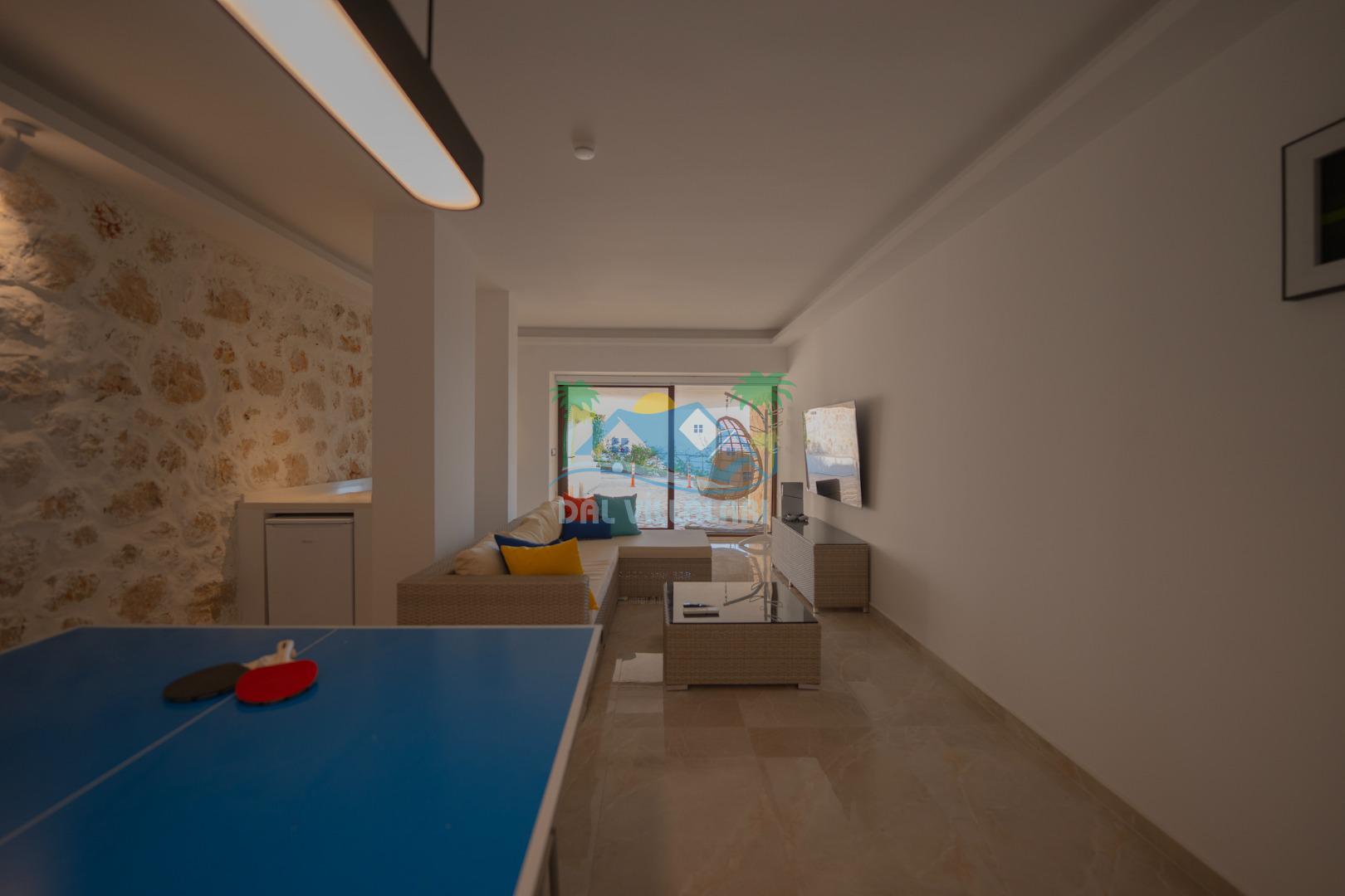 Kaş Kalkan Kördere bölgesinde, doğa ile iç içe, muazzam deniz manzarasına sahip, lüks bir villa. Bu özel villada 5 geniş yatak odası bulunuyor, bunlardan birinde jakuzili ana yatak odası da dahil. Modern tasarıma sahip iç mekanlarda rahatlık ve şıklık ön planda. Oyun odasında eğlenceli zamanlar geçirebilirsiniz; PlayStation 5 ve masa tenisi gibi aktiviteler ile keyifli anlar sizi bekliyor. Ayrıca, kesintisiz deniz manzaralı geniş bir oturma alanı ve otopark alanı da mevcut. Merkeze ve denize sadece birkaç dakika mesafede olan villa, komşu dört villadan biri olup, her türlü konforu sunmaktadır. Hem huzur hem eğlence arayanlar için mükemmel bir seçenek.