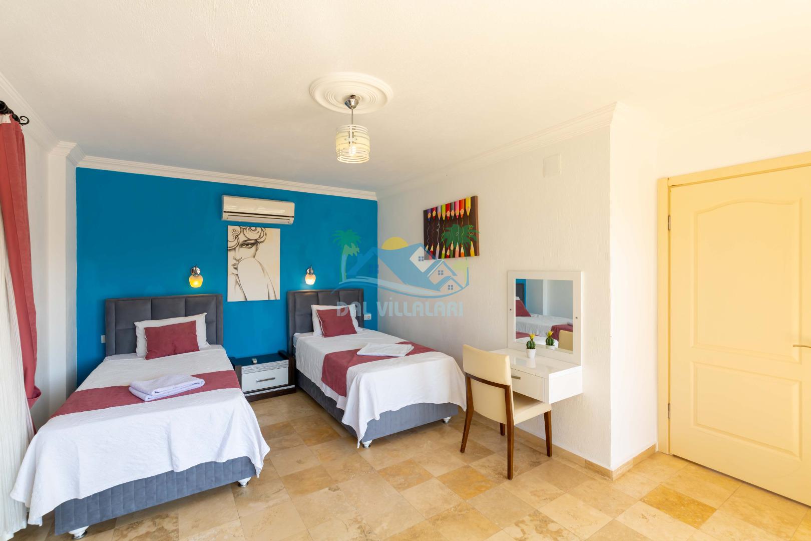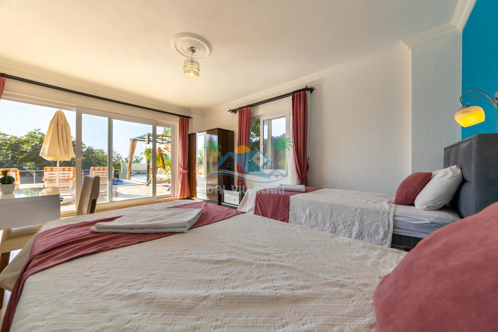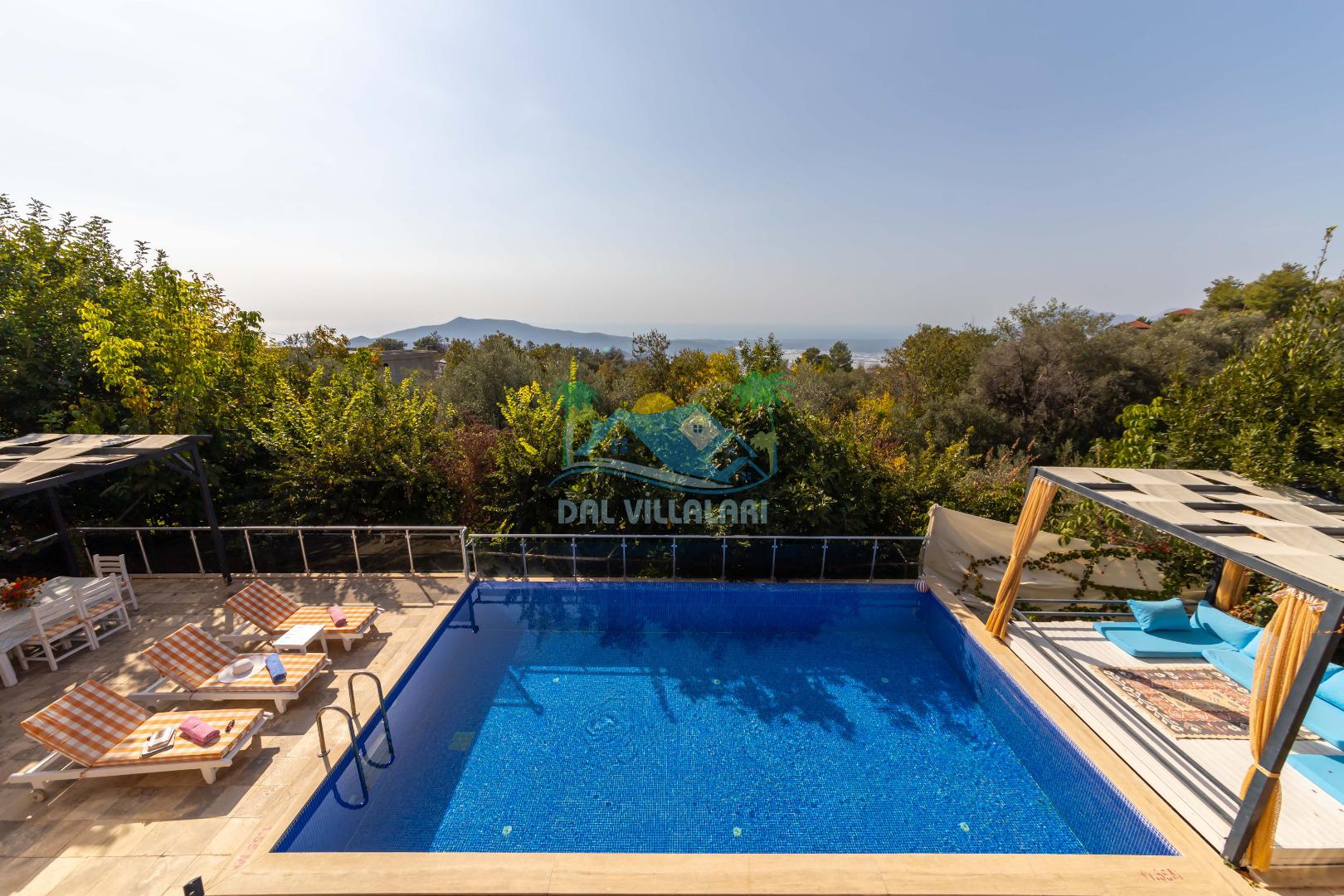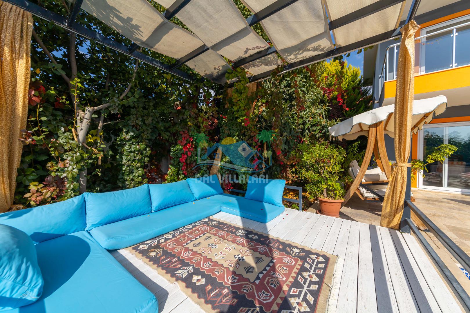 Kalkan, İslamlar´da konumlanmış olan Villa Alya´nın Doğa ve Deniz manzaralı güneşlenme terası ve özel yüzme havuzu dışarıdan görünmediğinden dolayı muhafazakar aileler ve balayı çiftleri için oldukça uygundur. 6 kişiye kadar konaklama imkanına sahip olan villanın 3 geniş yatak odası bulunmaktadır. Villa Alya´nın Master suit yatak odasında oldukça büyük ve güzel bir jakuzi bulunmakta olup, misafirler yılın yorgunluğunu ve stresini kolaylıkla atacaklardır. Kalkan merkeze olan uzaklığı 8 km. dir ve aracınızla 10 -12 dakikada villaya ulaşabilirsiniz. Bahçe terasında; şezlonglar, mangal, çardak, masa, sandalyeler, duş yer almaktadır. Villanın çevresi üzüm bağları, zeytin ağaçları ve çeşitli yeşilliklerle doğal olarak süslenmiştir.