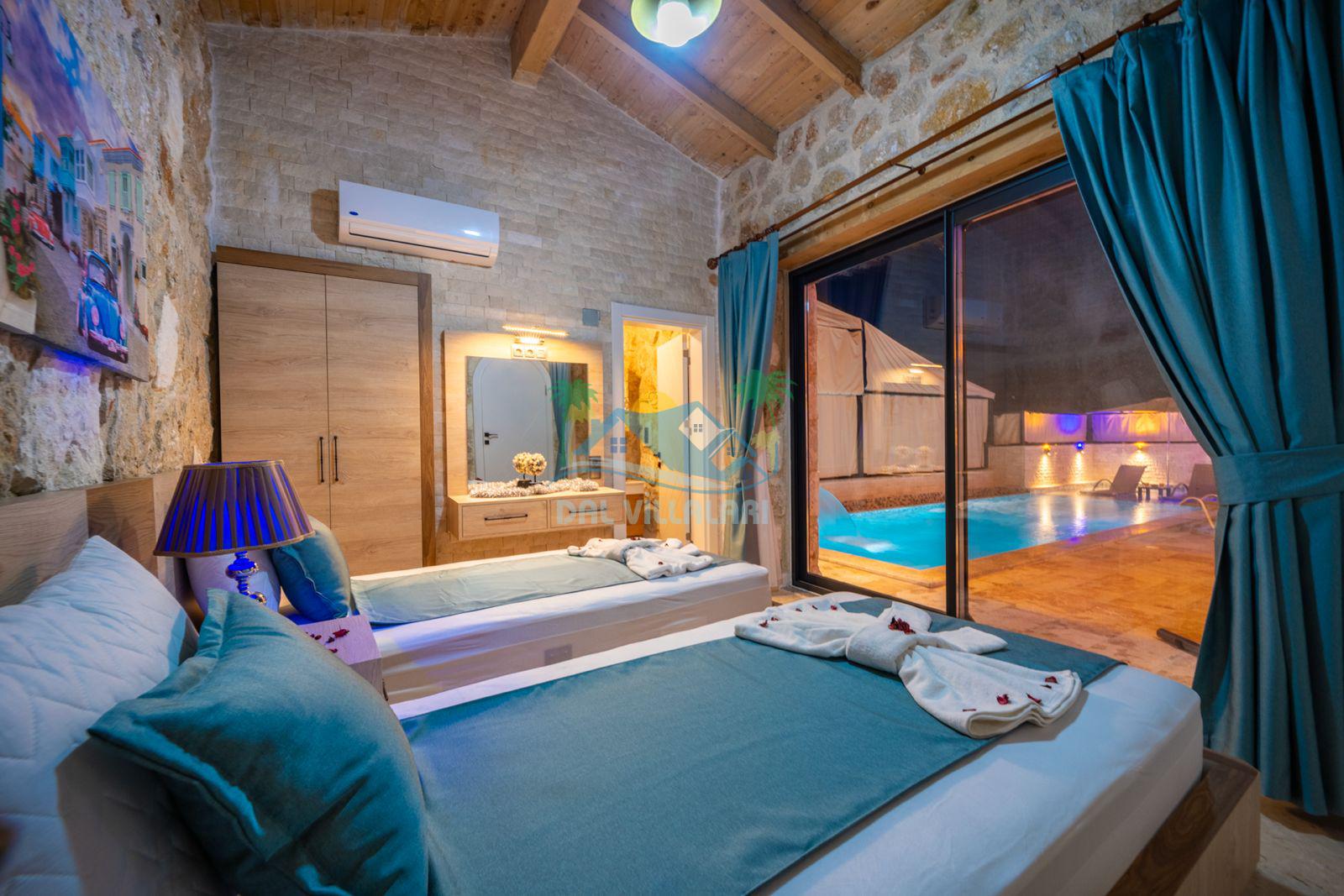 Villa Antika 1, Kalkan Akbel mevkiinde konumlu 2 yatak odalı 4 kişi konaklama kapasitesine sahip kiralık villadır. Doğa ile uyumlu taş ve ahşap mimari ile inşa edilen villamızın havuz teras alanı mahremiyetinize önem vermektedir. Ebeveyn yatak odasında çift kişilik jakuzi bulunan villamız sizleri bekliyor...