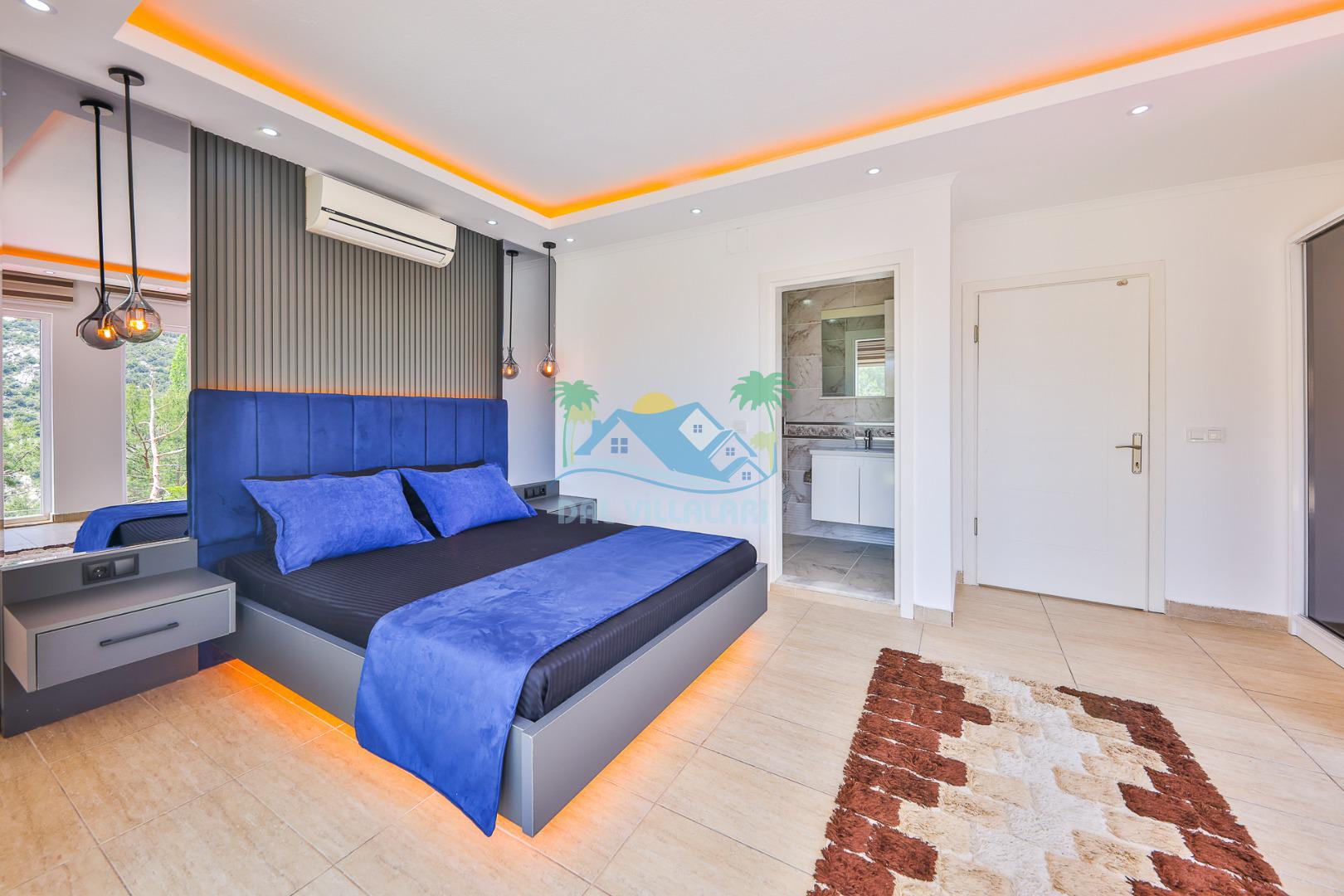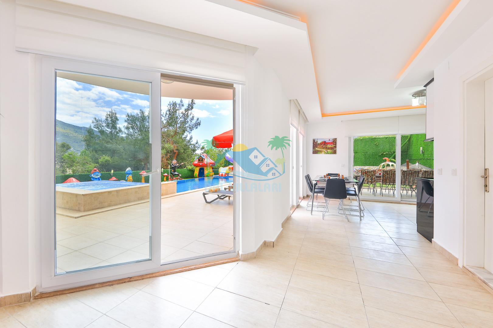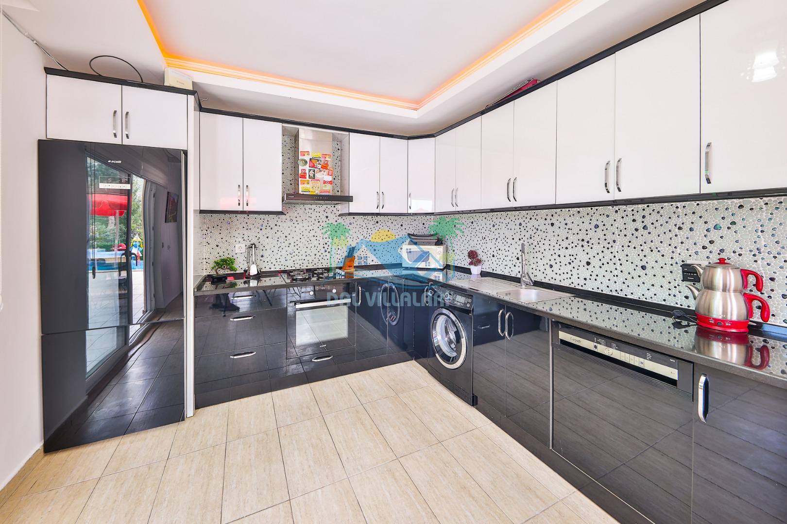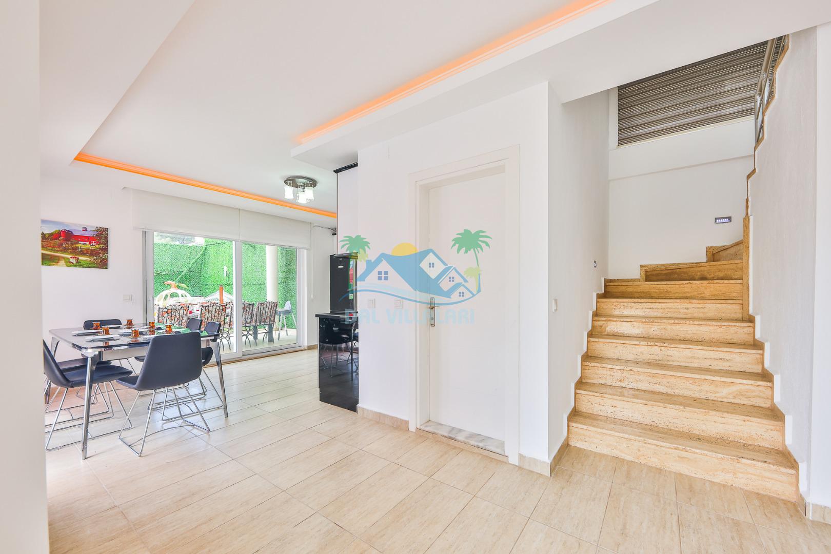 Villanın iç tasarımında modern ve ferah bir konsept benimsenmiştir. Geniş salonu, donanımlı mutfağı ve konforlu yatak odaları sayesinde kalabalık gruplar dahi rahat bir konaklama deneyimi yaşar.