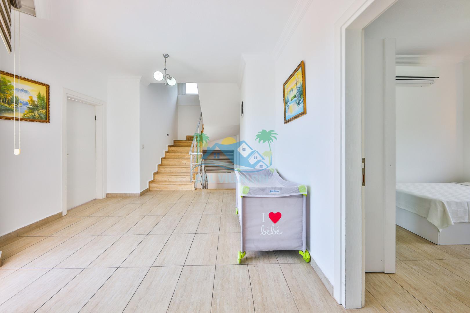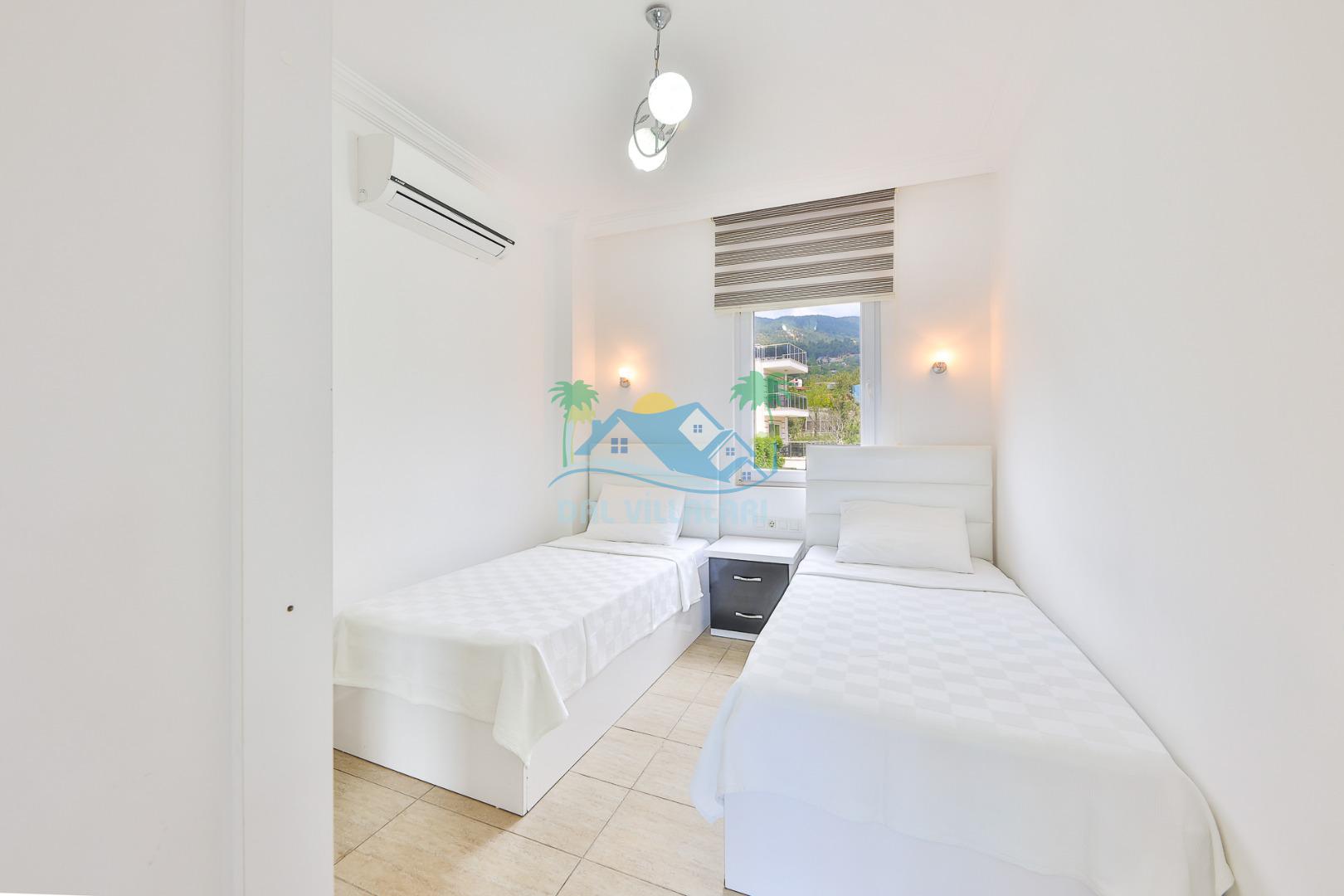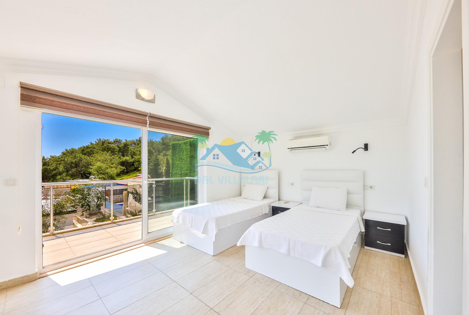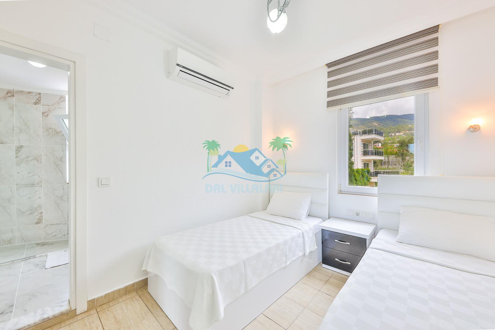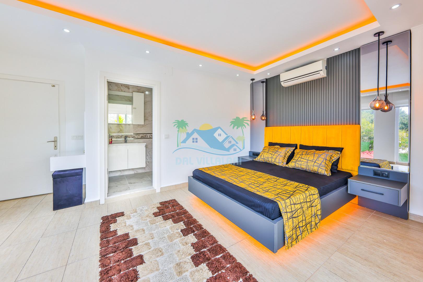 Villanın iç tasarımında modern ve ferah bir konsept benimsenmiştir. Geniş salonu, donanımlı mutfağı ve konforlu yatak odaları sayesinde kalabalık gruplar dahi rahat bir konaklama deneyimi yaşar.