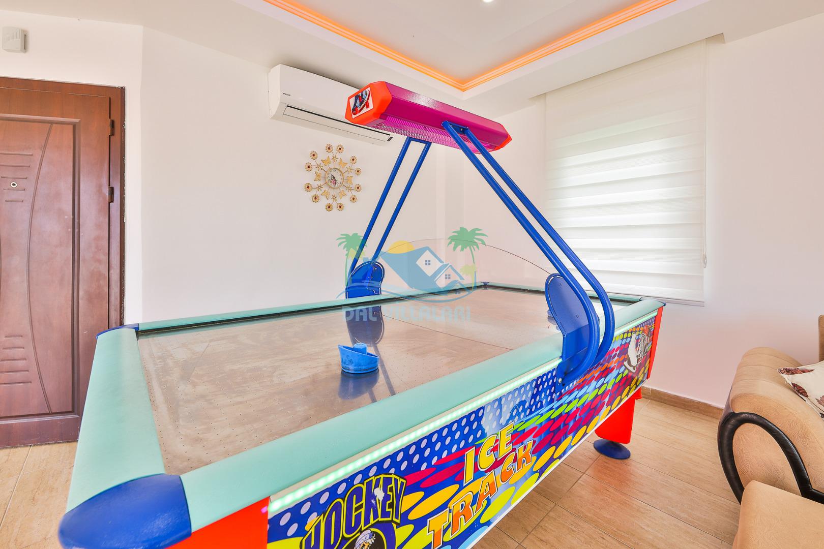 Villamızda yer alan jakuzi ve sauna, tatiliniz boyunca rahatlamanızı sağlarken; iç mekânda bulunan mini buz hokeyi eğlenceyi dört mevsim devam ettirir. Dış alanda ise çocuklar ve yetişkinler için düşünülmüş sosyal alanlar bulunmaktadır.