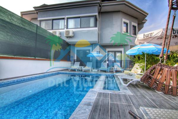 Fethiye Çiftlik beldesinde bulunan Villa Araf 2, 3 yatak odalı ve 7 kişilik konaklama imkanıdır. Oldukça şık iç ve dış tasarıma sahiptir. Size özel havuz ve bahçe alanı, tatil ve tatil boyunca ihtiyacınız olabilecek tüm detayların düşünüldüğü Villa Araf 2'de keyifli bir tatil sizi bekliyor. Villa Araf 1 ile yana yana bulunan Villa Araf 2'nin tarihçe olması durumunda birlikte kiralanabilmektedir.