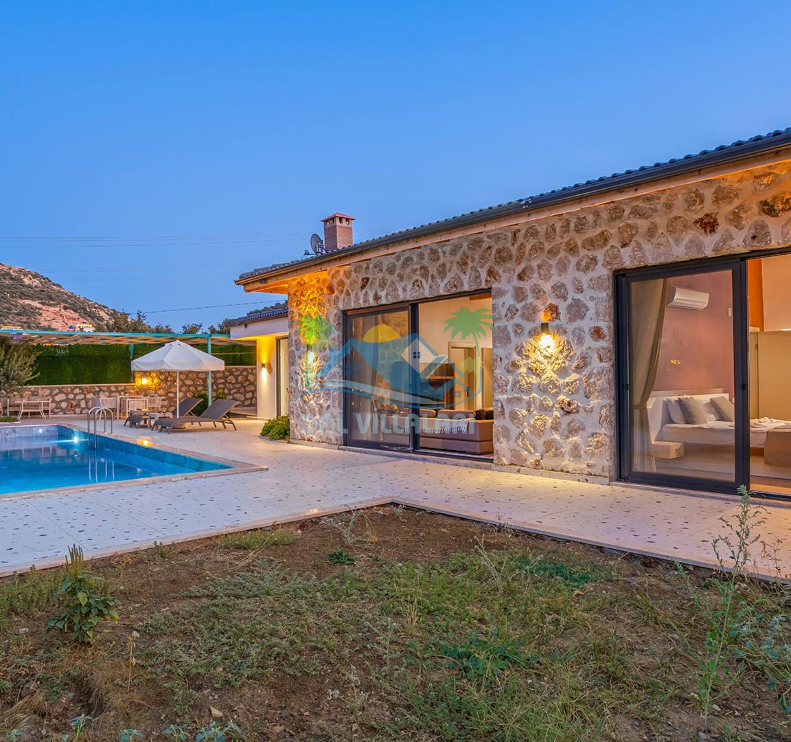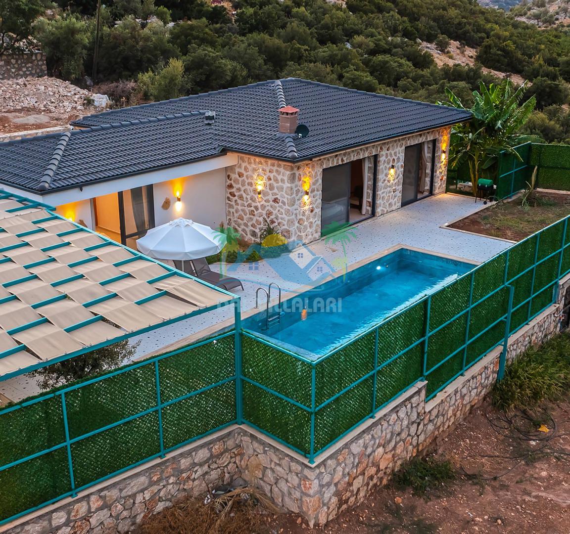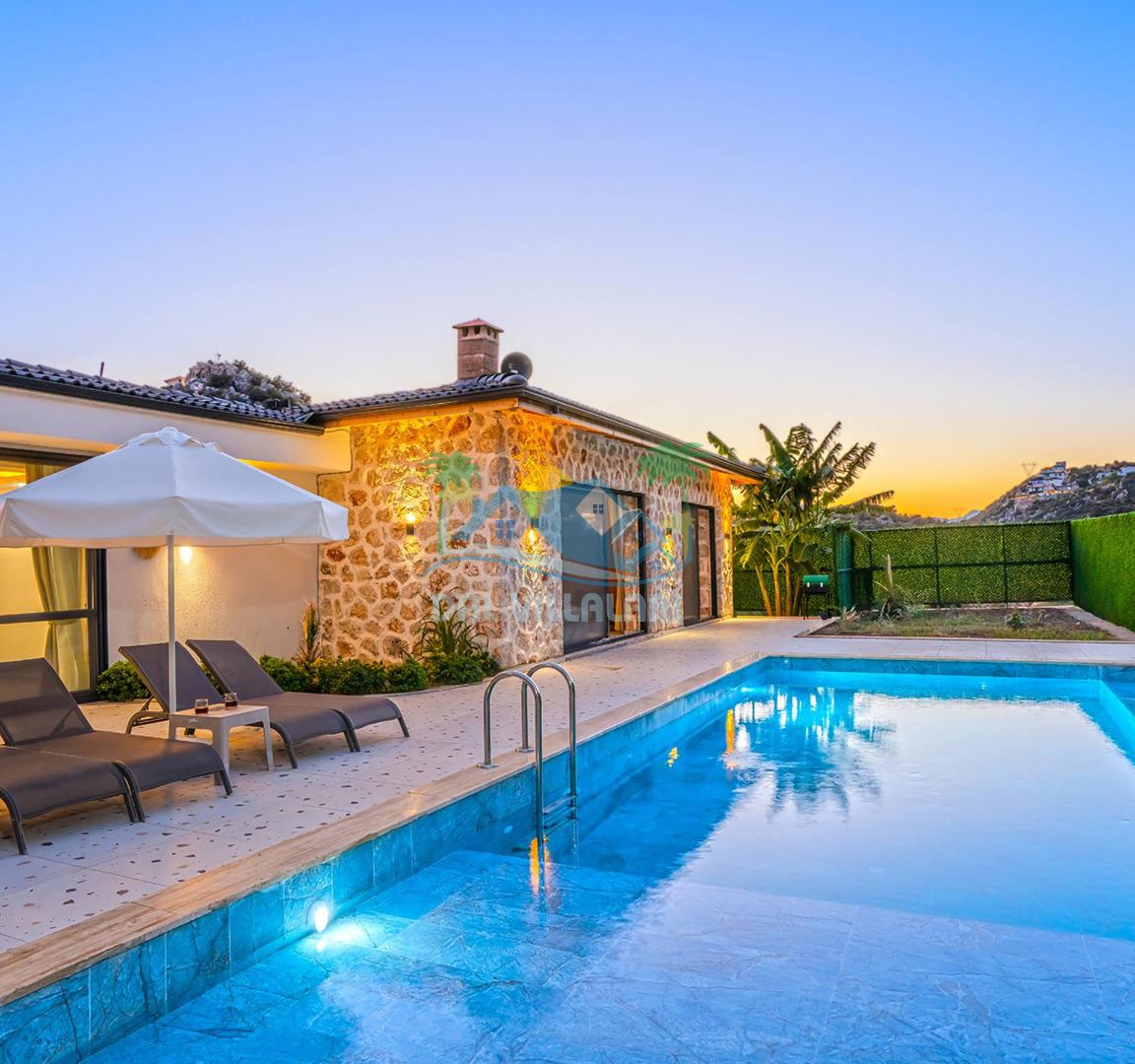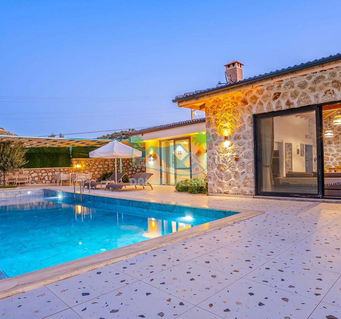 Villamızın özel havuzu, gün boyu serinlemenizi sağlarken, taş ve ahşabın sıcak ve şık tasarımı ise size evinizdeki konforu hissettirecek. Doğanın içinde huzurlu bir kaçamak yapmak isteyenler için ideal bir seçenek olan villamız, Kaş Kalkan'ın benzersiz manzarası eşliğinde unutulmaz anılar biriktirmenize olanak tanıyor.