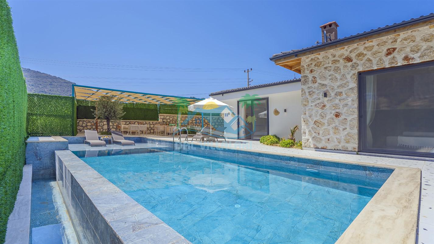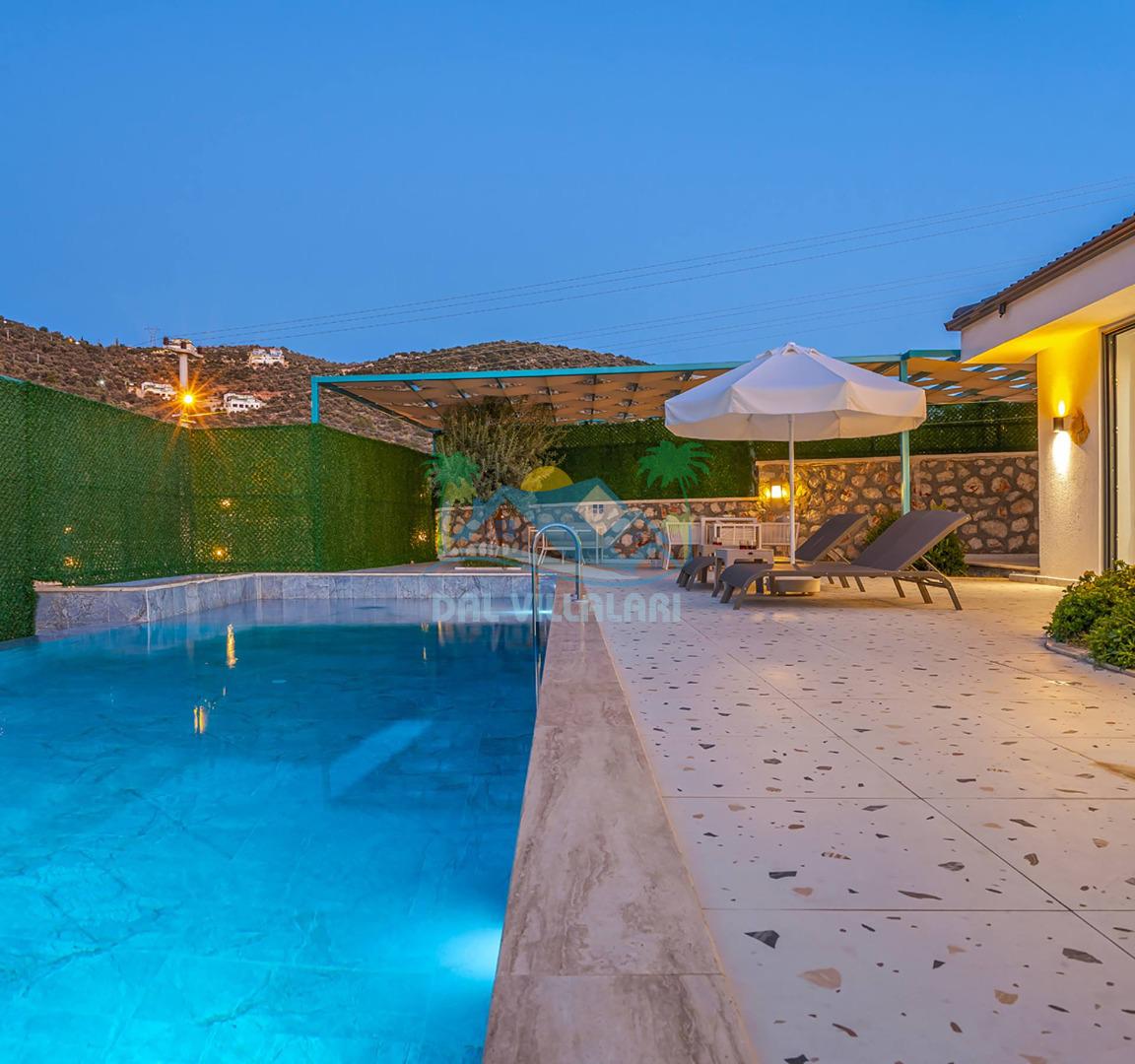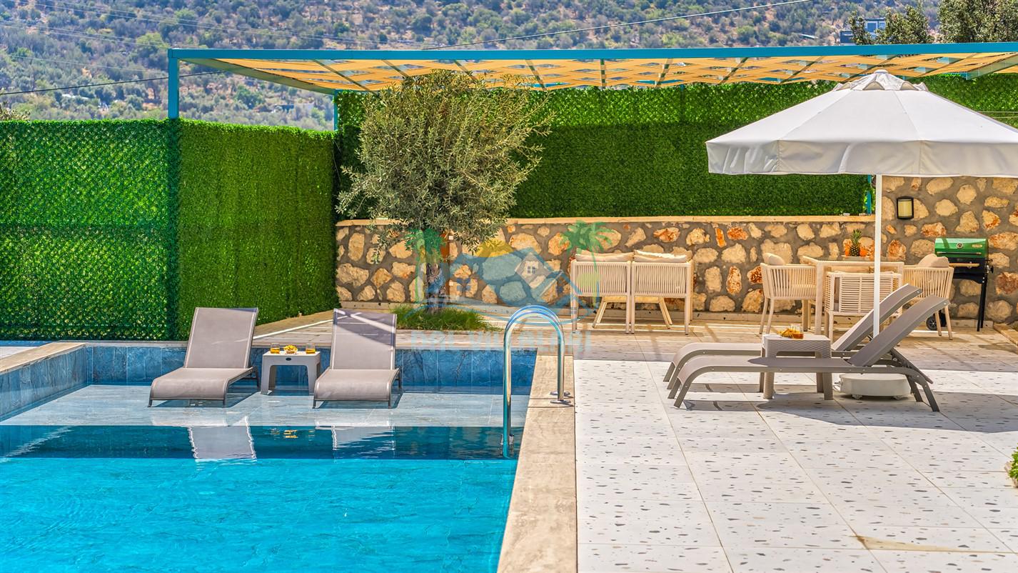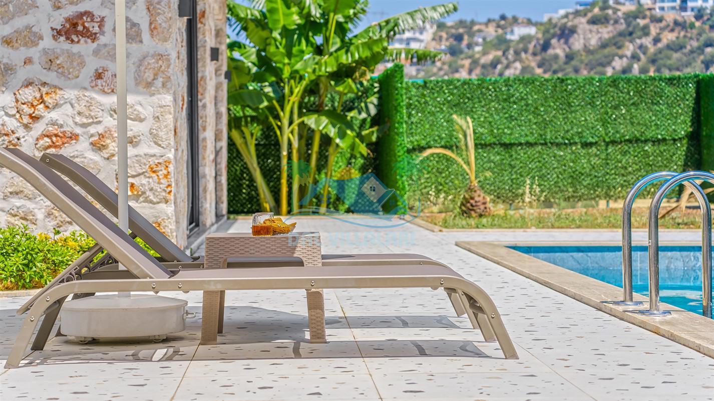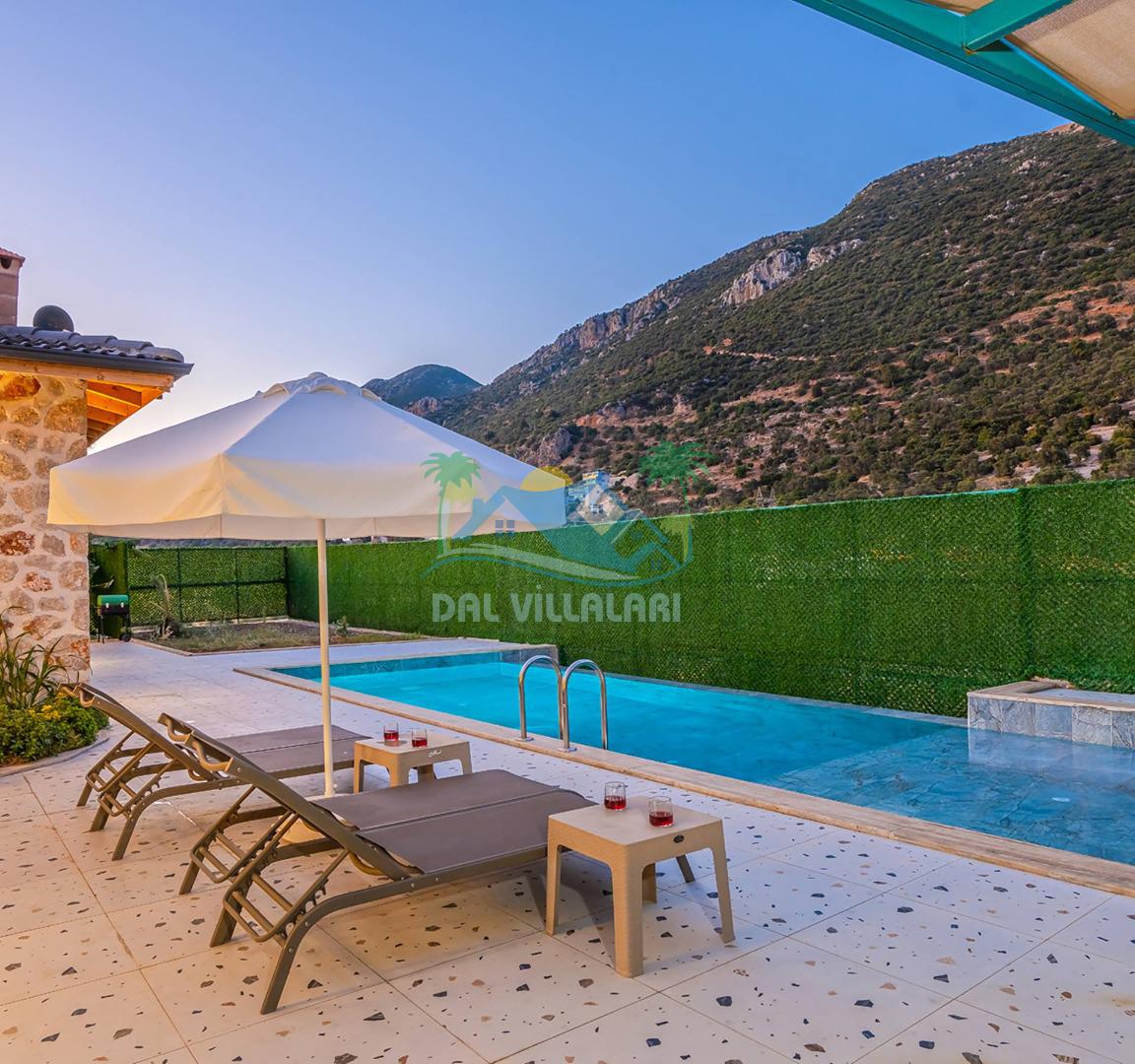 Villamızın özel havuzu, gün boyu serinlemenizi sağlarken, taş ve ahşabın sıcak ve şık tasarımı ise size evinizdeki konforu hissettirecek. Doğanın içinde huzurlu bir kaçamak yapmak isteyenler için ideal bir seçenek olan villamız, Kaş Kalkan'ın benzersiz manzarası eşliğinde unutulmaz anılar biriktirmenize olanak tanıyor.
