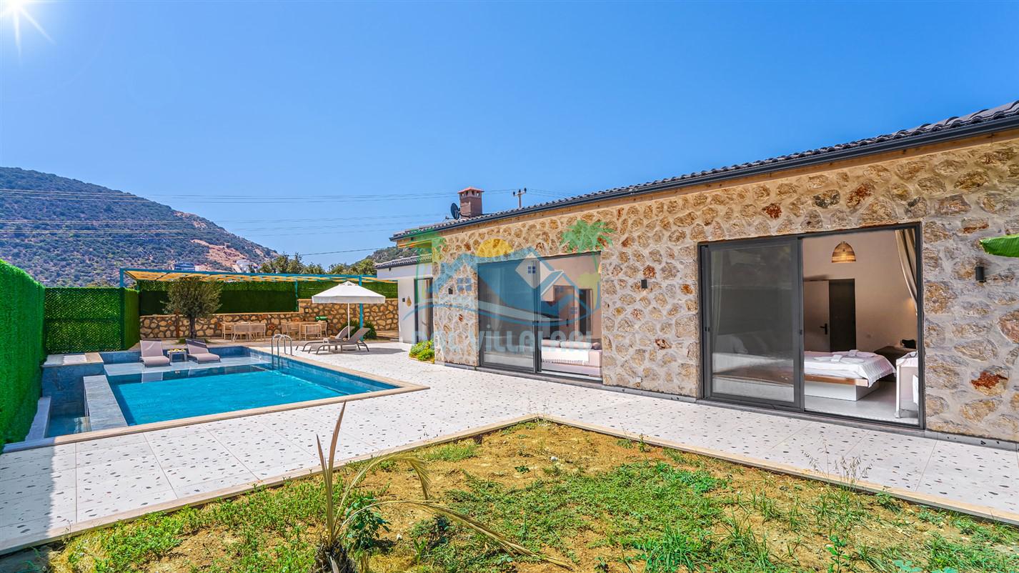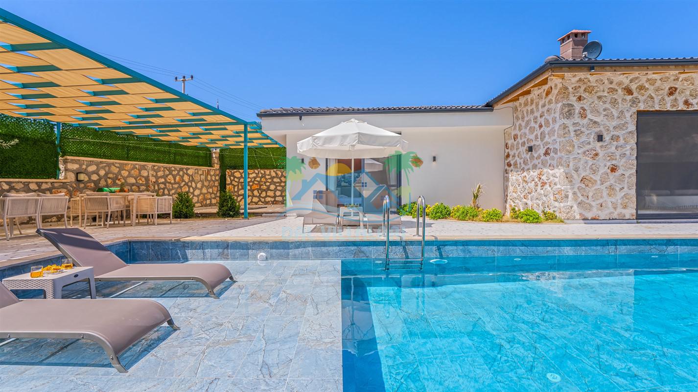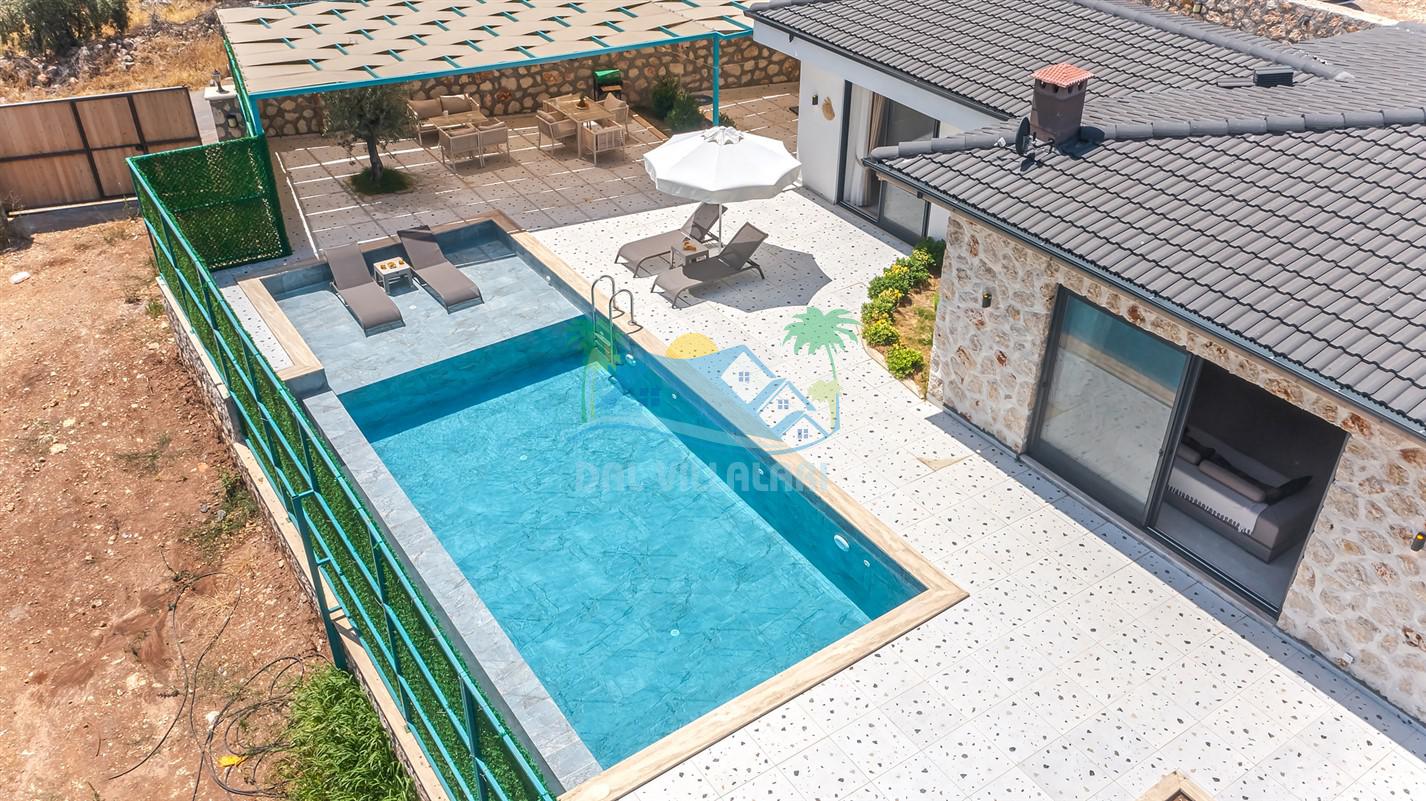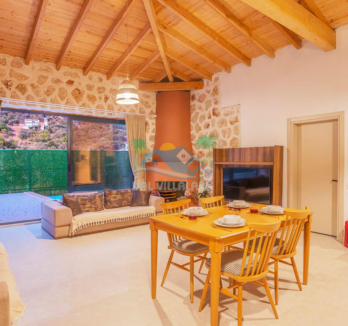 Villamızın özel havuzu, gün boyu serinlemenizi sağlarken, taş ve ahşabın sıcak ve şık tasarımı ise size evinizdeki konforu hissettirecek. Doğanın içinde huzurlu bir kaçamak yapmak isteyenler için ideal bir seçenek olan villamız, Kaş Kalkan'ın benzersiz manzarası eşliğinde unutulmaz anılar biriktirmenize olanak tanıyor.