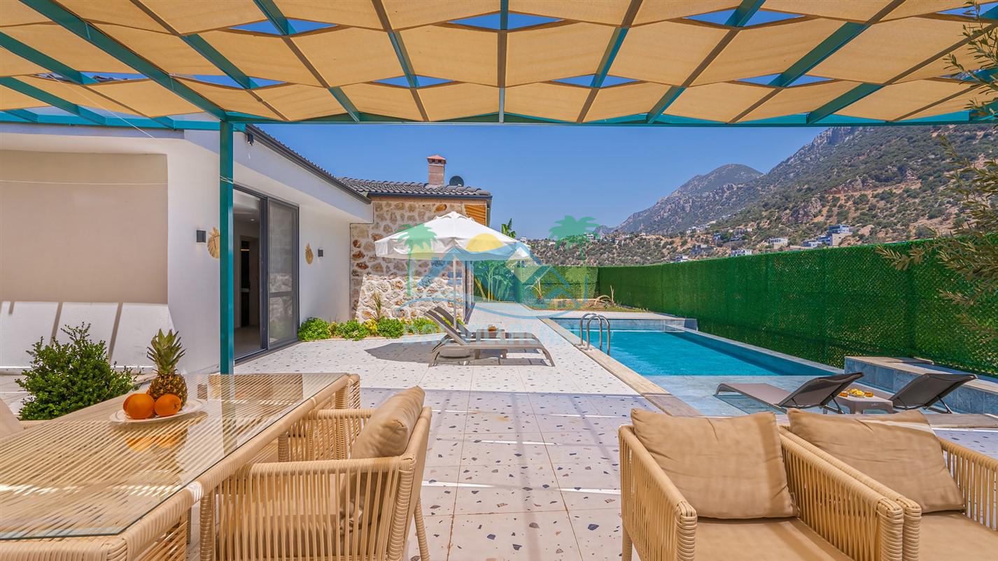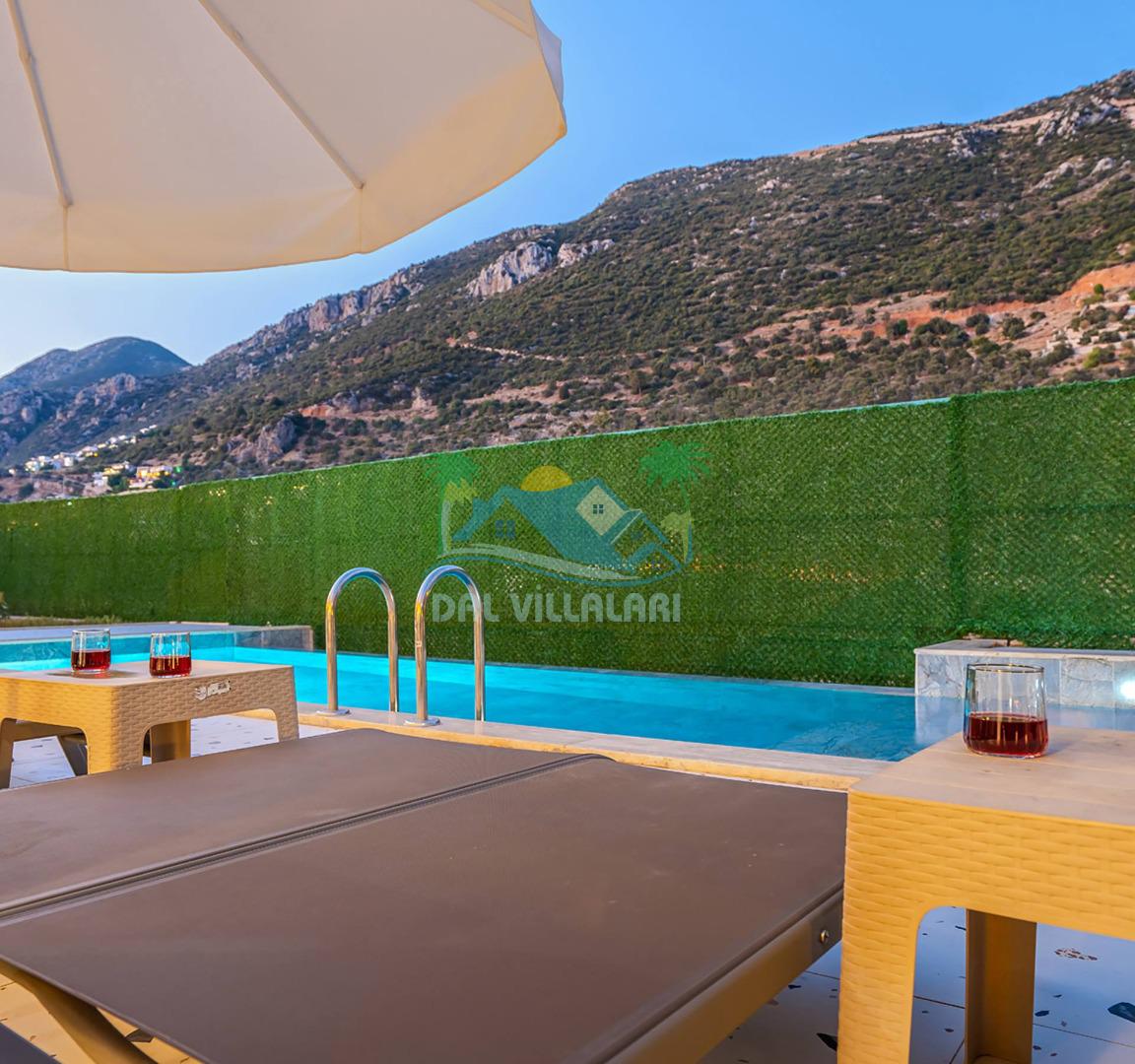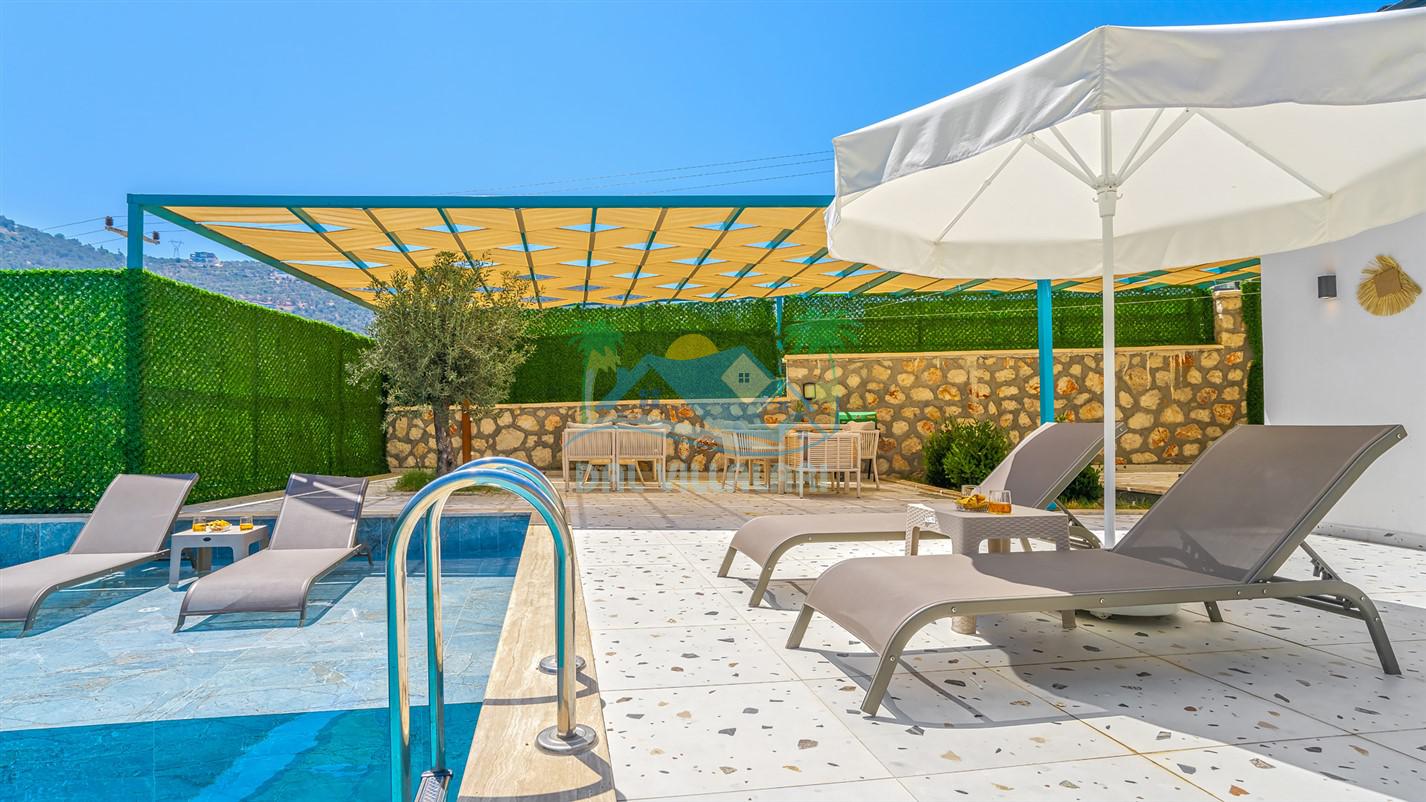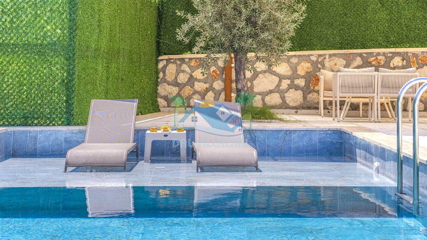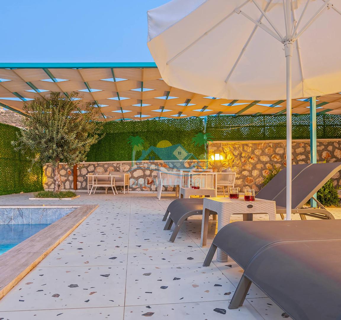Villamızın özel havuzu, gün boyu serinlemenizi sağlarken, taş ve ahşabın sıcak ve şık tasarımı ise size evinizdeki konforu hissettirecek. Doğanın içinde huzurlu bir kaçamak yapmak isteyenler için ideal bir seçenek olan villamız, Kaş Kalkan'ın benzersiz manzarası eşliğinde unutulmaz anılar biriktirmenize olanak tanıyor.