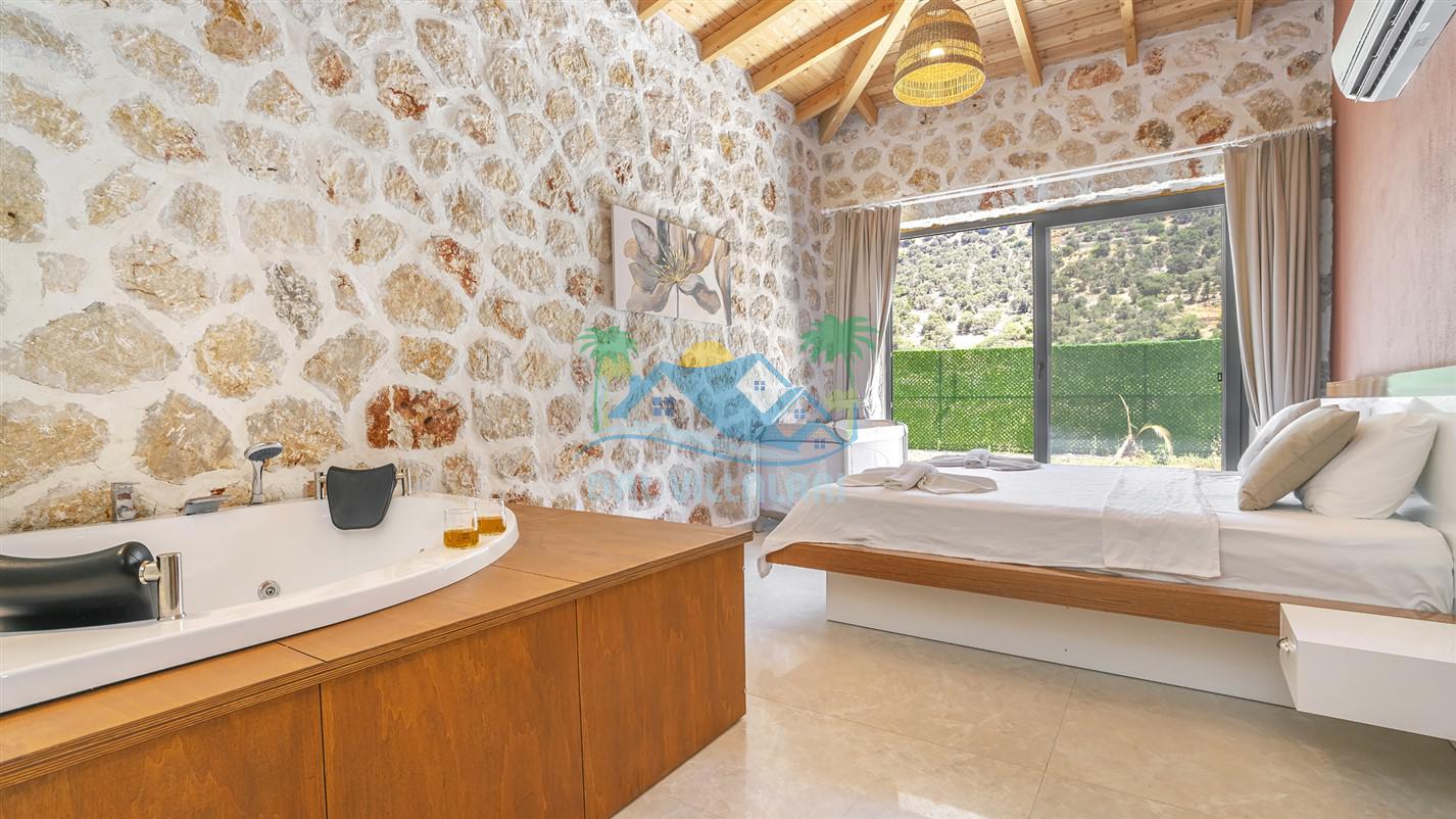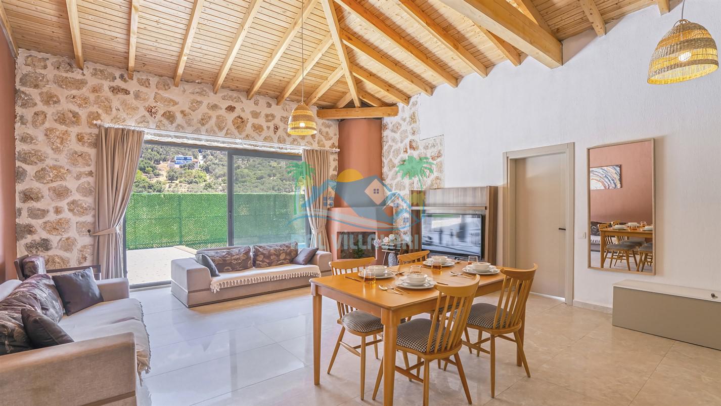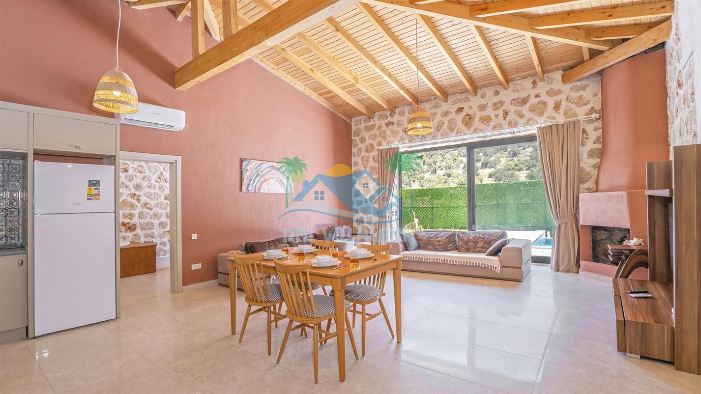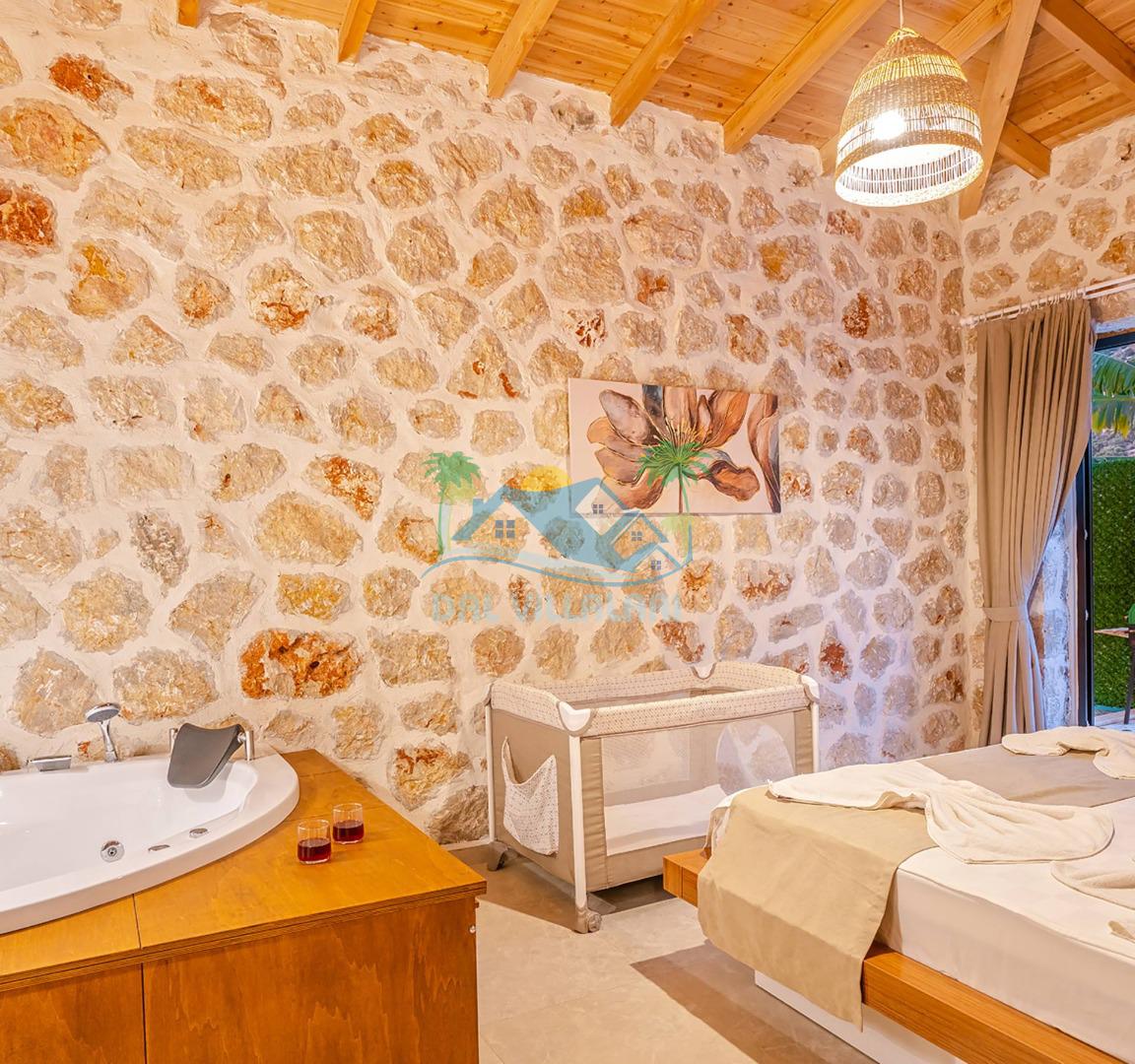 Villamızın özel havuzu, gün boyu serinlemenizi sağlarken, taş ve ahşabın sıcak ve şık tasarımı ise size evinizdeki konforu hissettirecek. Doğanın içinde huzurlu bir kaçamak yapmak isteyenler için ideal bir seçenek olan villamız, Kaş Kalkan'ın benzersiz manzarası eşliğinde unutulmaz anılar biriktirmenize olanak tanıyor.