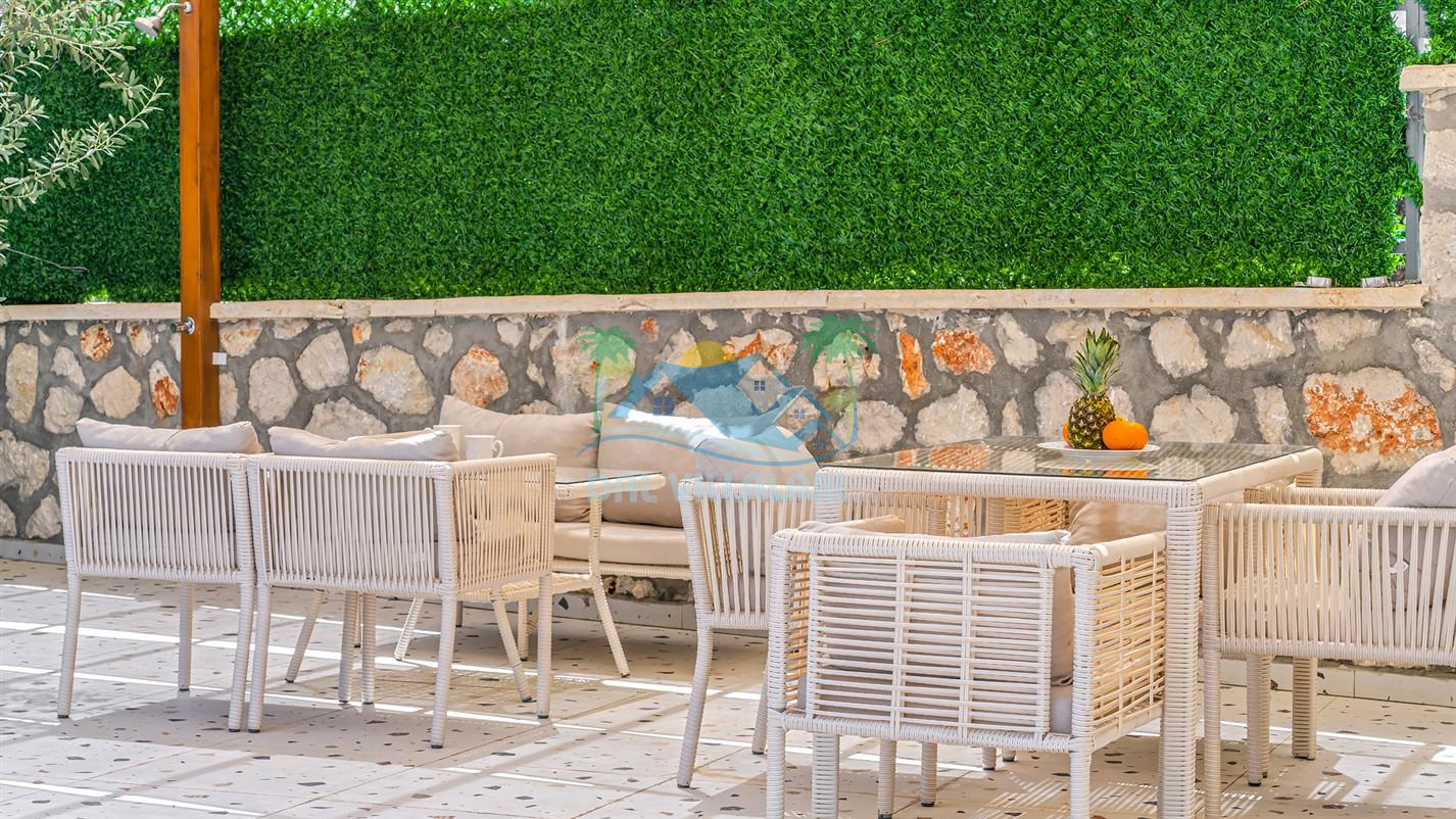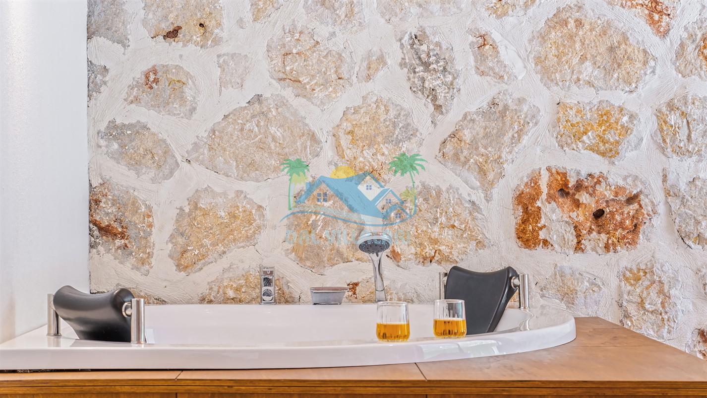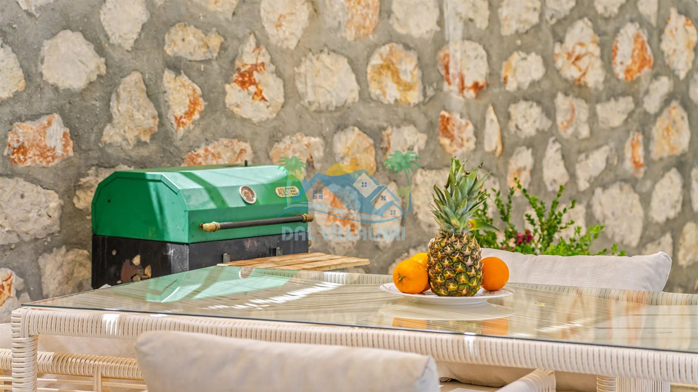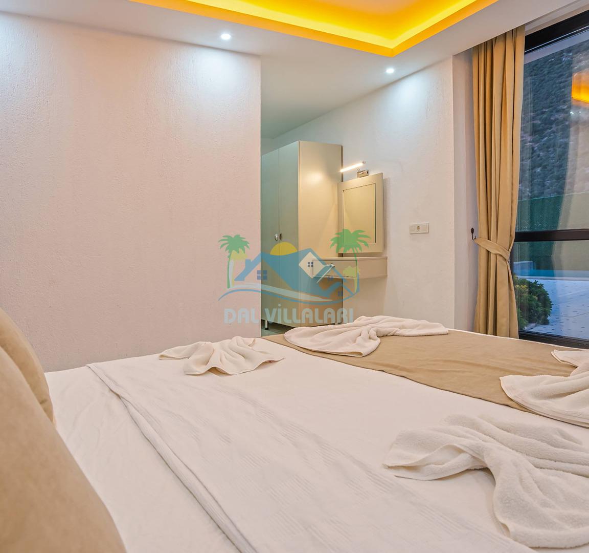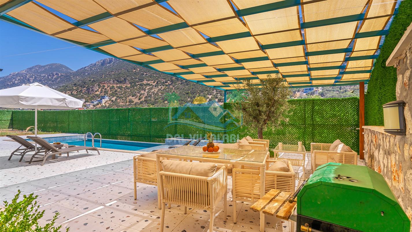 Villamızın özel havuzu, gün boyu serinlemenizi sağlarken, taş ve ahşabın sıcak ve şık tasarımı ise size evinizdeki konforu hissettirecek. Doğanın içinde huzurlu bir kaçamak yapmak isteyenler için ideal bir seçenek olan villamız, Kaş Kalkan'ın benzersiz manzarası eşliğinde unutulmaz anılar biriktirmenize olanak tanıyor.