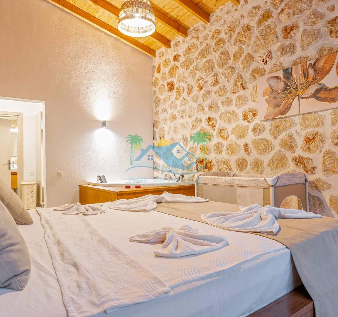Kaş Kalkan'ın eşsiz doğasında, taş ve ahşabın muhteşem uyumunu bir araya getiren özel villamız sizleri bekliyor! 4 kişilik kapasitesiyle aileniz ya da arkadaşlarınızla unutulmaz bir tatil deneyimi yaşamaya hazır olun.