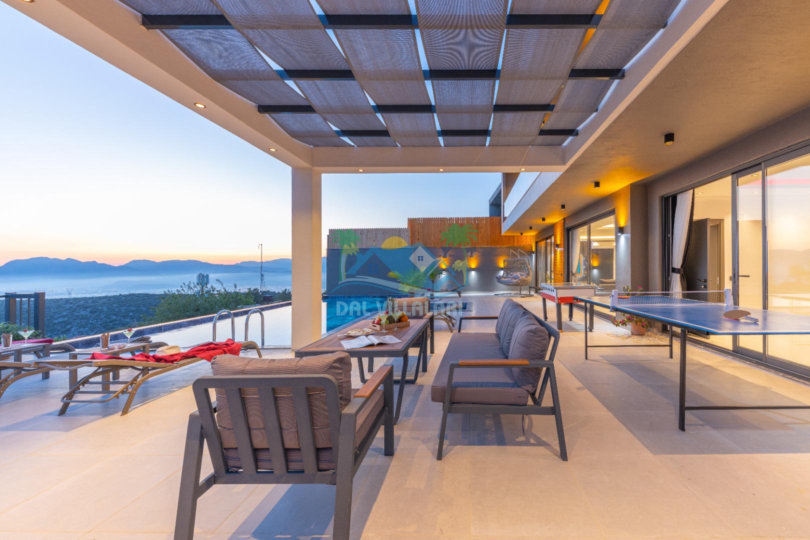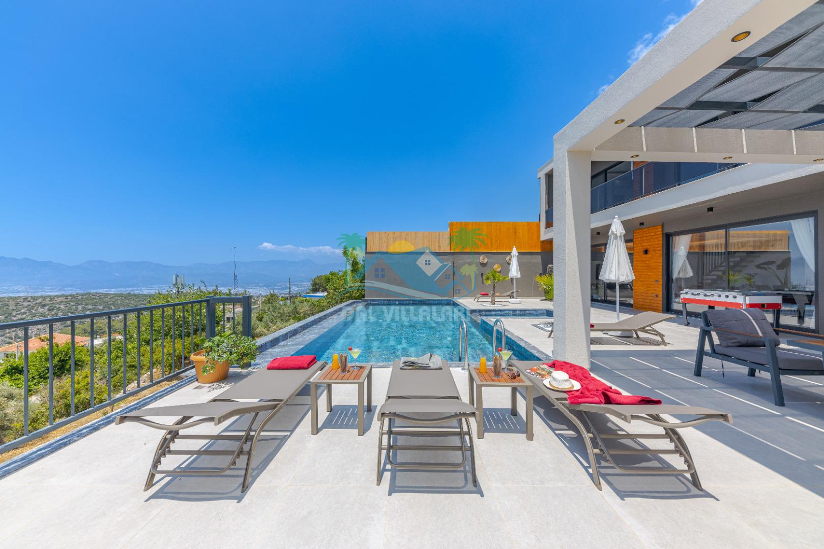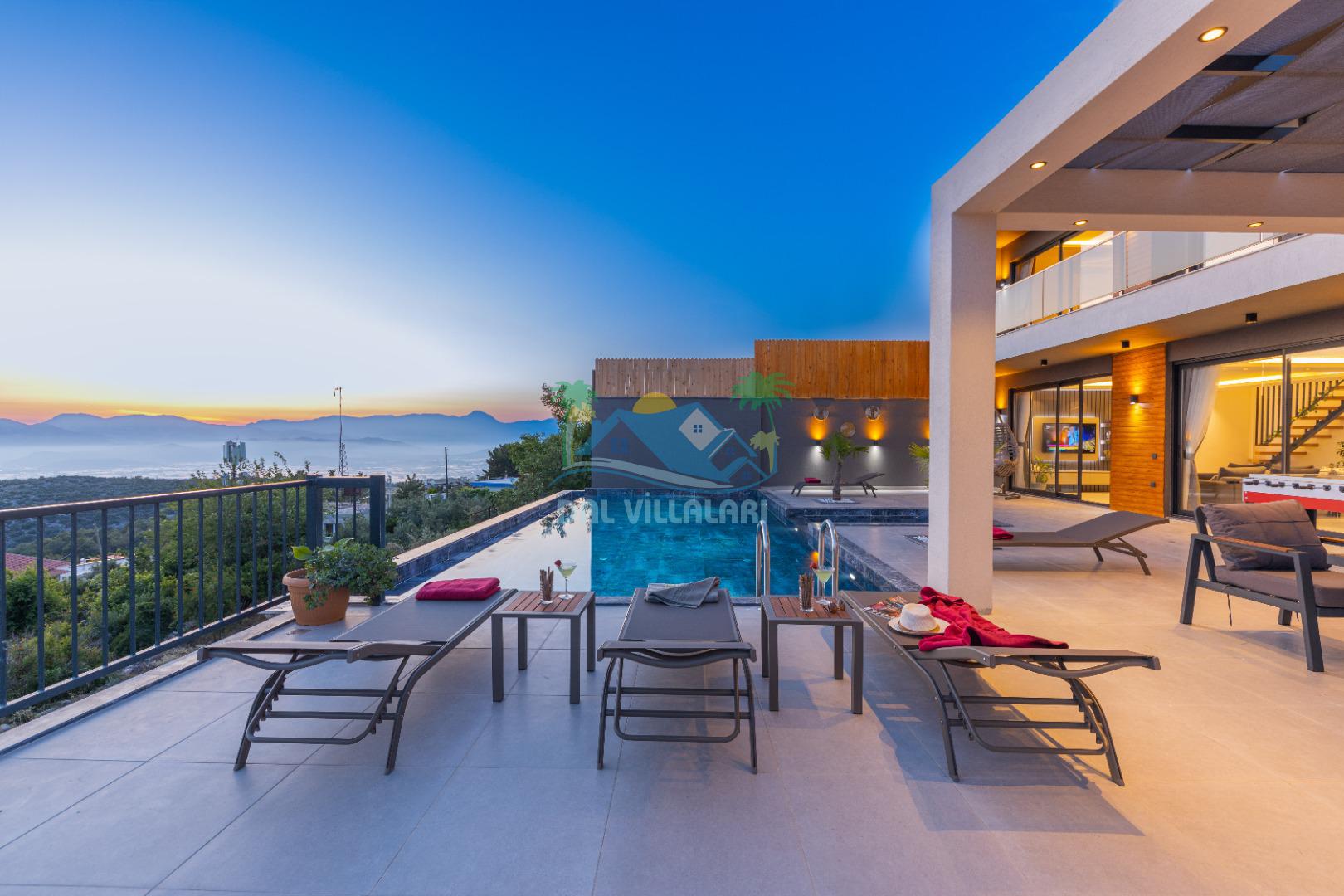 Villa Armonia Deluxe, Üzümlü Mevkii'nde bulunmaktadır. Muazzam bir manzaraya nazır konumdadır.Uzaktanda olsa 13 km uzunluğundaki Dünyaca ünlü Patara plajını görmektedir.Çok geniş bir yapıya konumlanmış olan villamızda , çocuk sahibi aileler için özel çocuk oyun alanı,parkı ve bahçe alanı bulunmaktadır. Havuzu ve havuz terası oldukca geniş tasarlanmış olup korunaklı hale getirilmiştir. Bu nedenle , muhafazakar aileler ve balayı çiftleri için ideal bir seçenektir. Villa Armonia Deluxe , toplamda 2 süit yatak odasından oluşmaktadır.Alt katta modern mutfak ve salon bulunmakta olup ,alt kattaki sinema odasındaki yatak sayesinde toplam 7 kişi konaklayabilir. Her odasında muhteşem bir manzaraya sahip olan villamız , içeriğinde yer alan sauna ilede sizlere konforlu bir hizmet sunmaktadır.Villamızın 2 odasında'da jakuzi yer almaktadır. Yani çift jakuzili bir villadır. Bütün bu özellikleri ile villamız , siz değerli misafirlerini beklemektedir.Ekstra olarak villamızda eğlenceli zaman geçirebilmeniz için masa tenisi ve langırt bulunmaktadır.