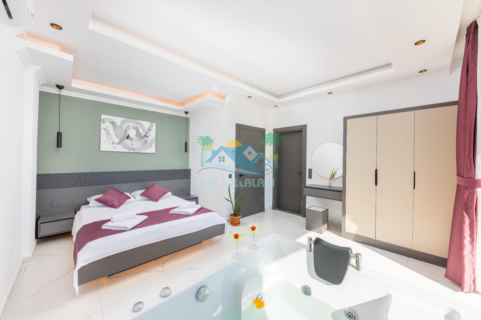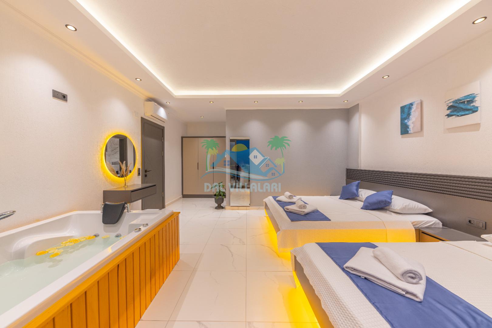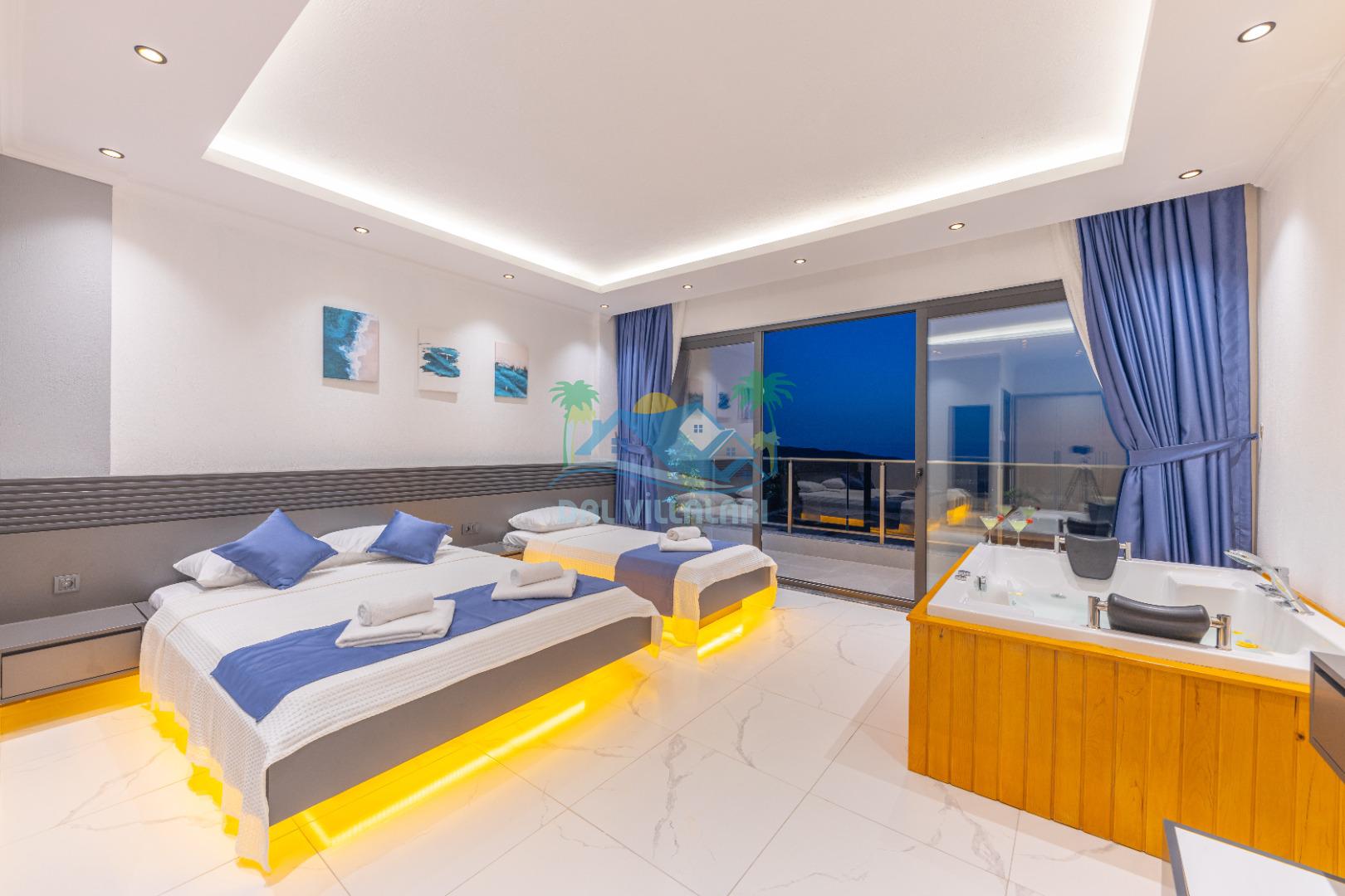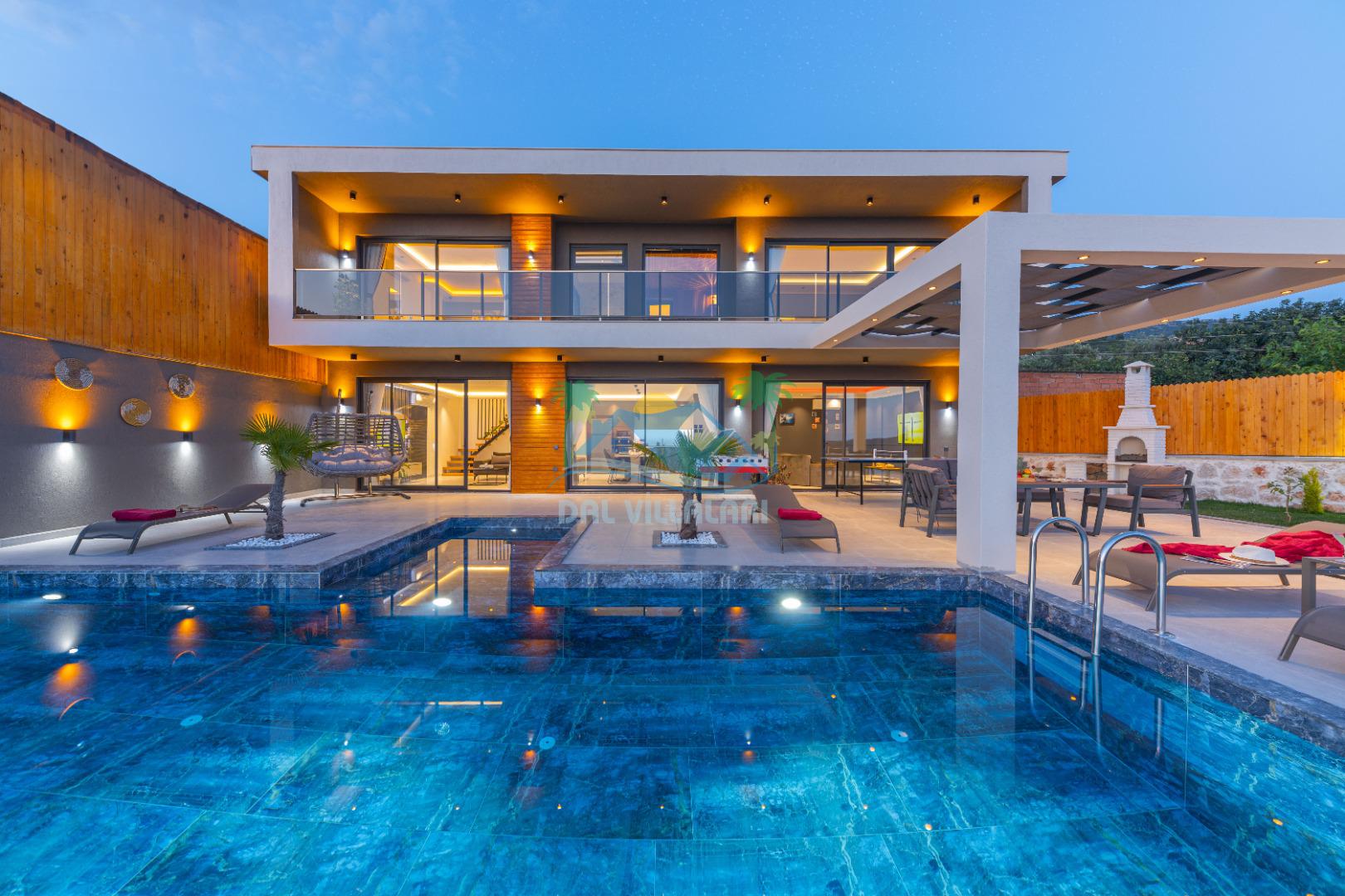 Villa Armonia Deluxe, Üzümlü Mevkii'nde bulunmaktadır. Muazzam bir manzaraya nazır konumdadır.Uzaktanda olsa 13 km uzunluğundaki Dünyaca ünlü Patara plajını görmektedir.Çok geniş bir yapıya konumlanmış olan villamızda , çocuk sahibi aileler için özel çocuk oyun alanı,parkı ve bahçe alanı bulunmaktadır. Havuzu ve havuz terası oldukca geniş tasarlanmış olup korunaklı hale getirilmiştir. Bu nedenle , muhafazakar aileler ve balayı çiftleri için ideal bir seçenektir. Villa Armonia Deluxe , toplamda 2 süit yatak odasından oluşmaktadır.Alt katta modern mutfak ve salon bulunmakta olup ,alt kattaki sinema odasındaki yatak sayesinde toplam 7 kişi konaklayabilir. Her odasında muhteşem bir manzaraya sahip olan villamız , içeriğinde yer alan sauna ilede sizlere konforlu bir hizmet sunmaktadır.Villamızın 2 odasında'da jakuzi yer almaktadır. Yani çift jakuzili bir villadır. Bütün bu özellikleri ile villamız , siz değerli misafirlerini beklemektedir.Ekstra olarak villamızda eğlenceli zaman geçirebilmeniz için masa tenisi ve langırt bulunmaktadır.