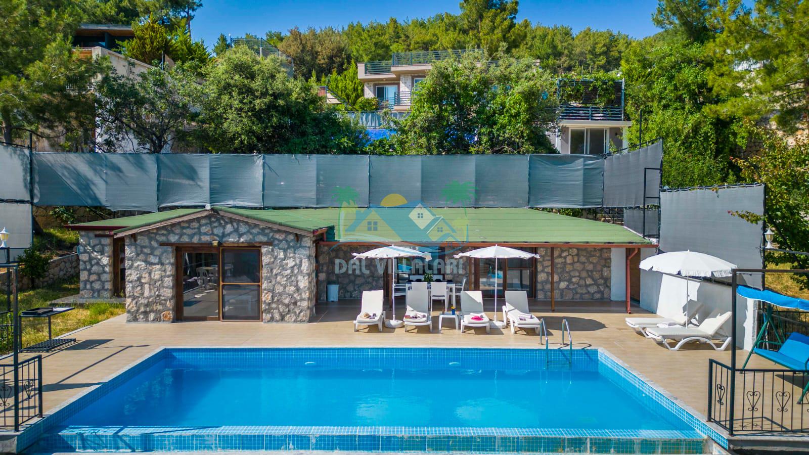 Taş mimarinin ruhunu taşıyan Villa Aslım, geniş havuz terasında sevdiklerinizle geçireceğiniz keyifli saatler için tasarlandı. Havuzunuz tamamen korunaklıdır; size ait bu özel alanda ister güneşlenin, ister yıldızların altında gece yüzmesi yapın.