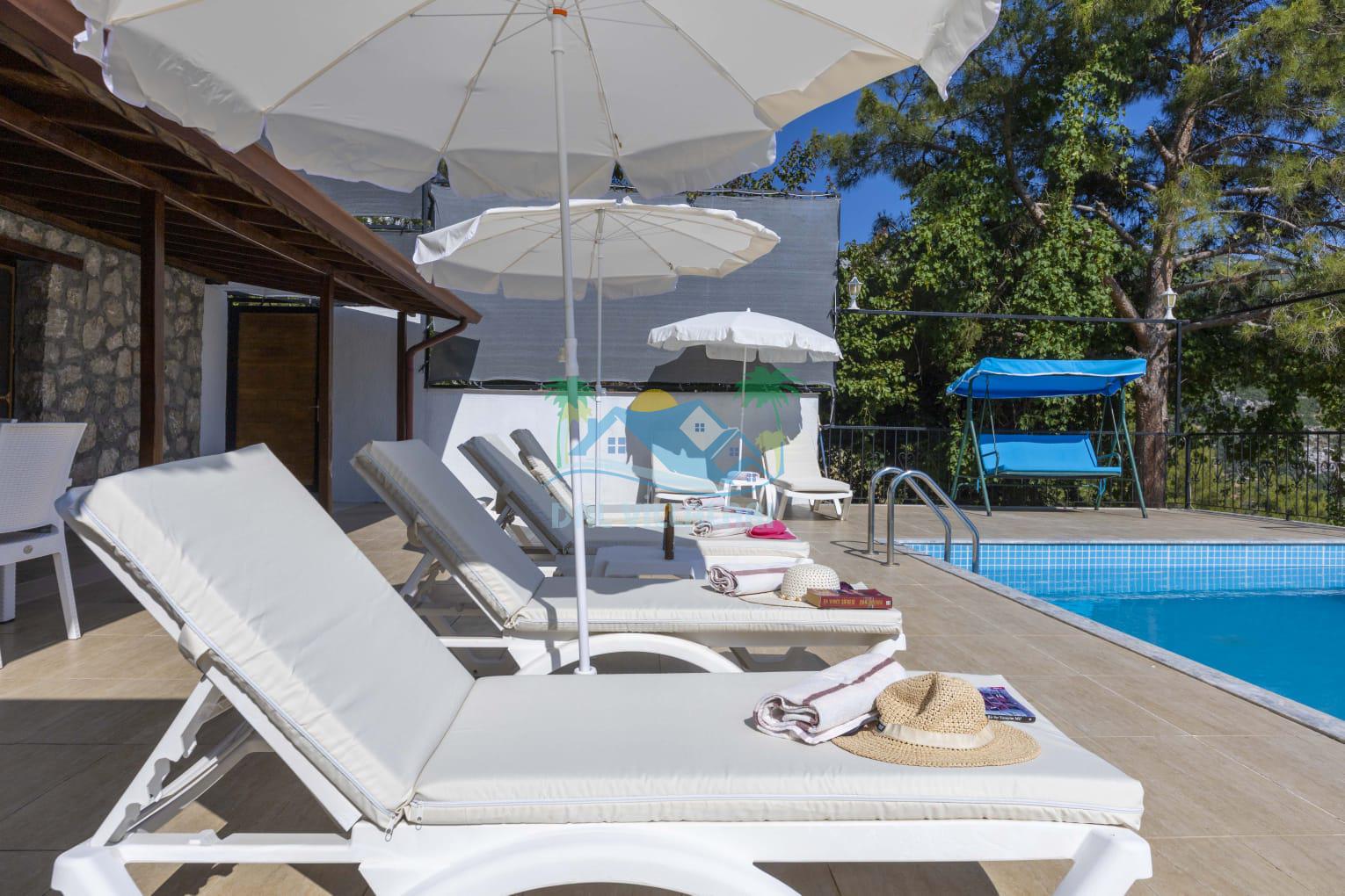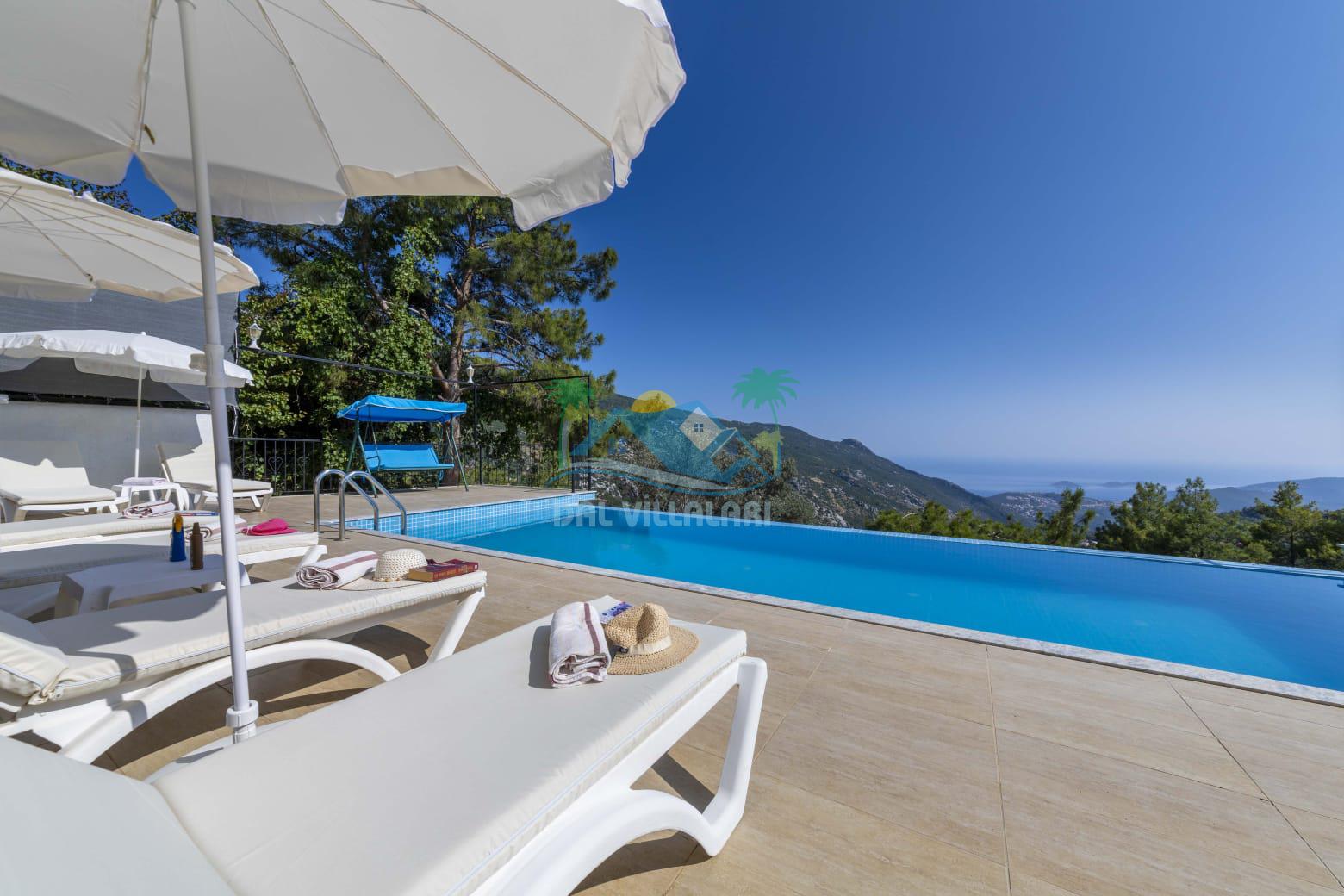 En yakın plaj Kalkan Halk Plajı olup villamız denizden yukarıda, yaklaşık 13 km mesafededir.