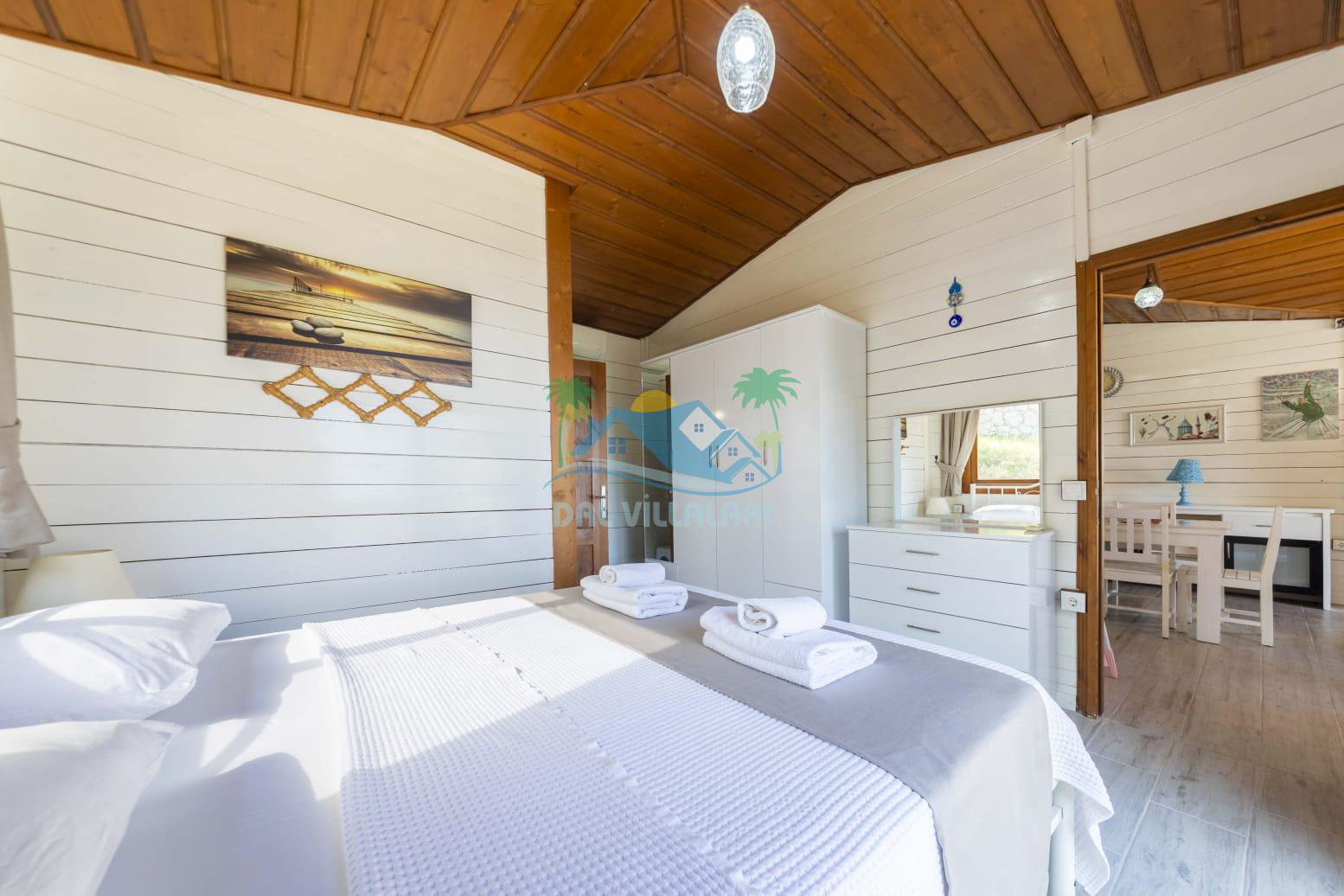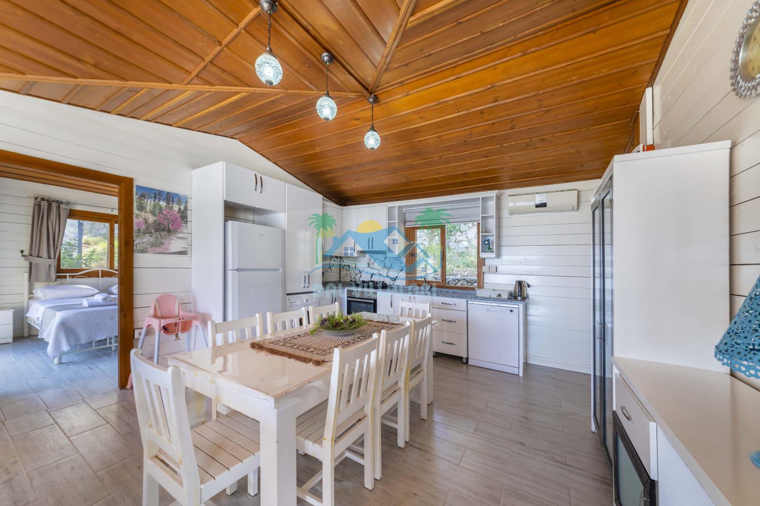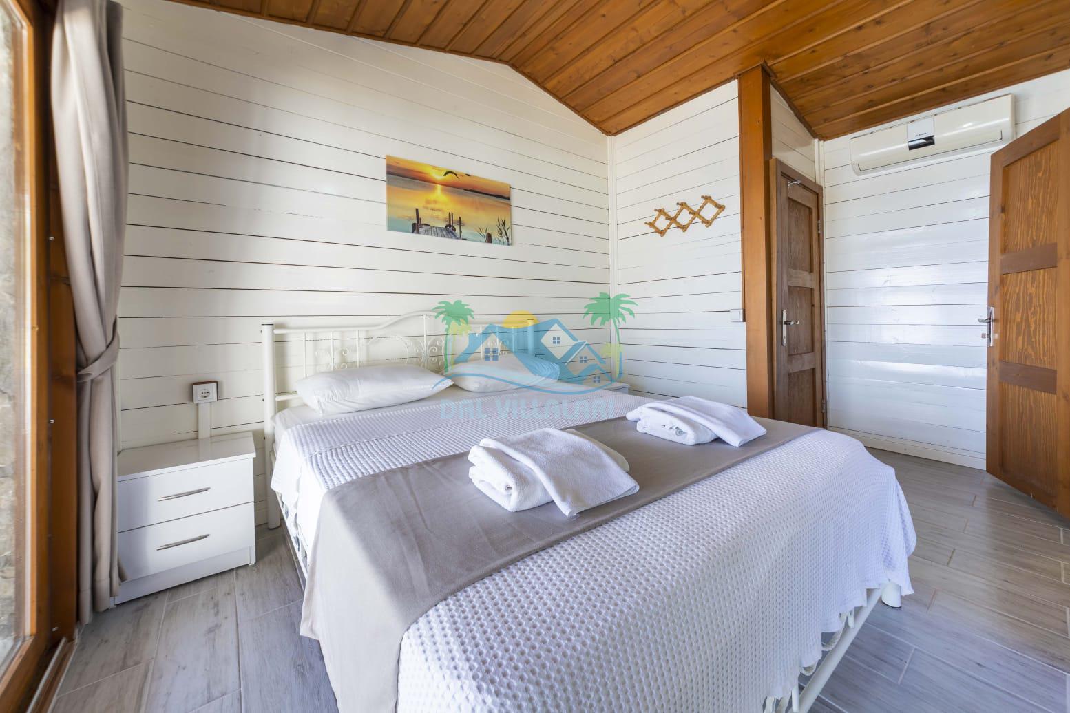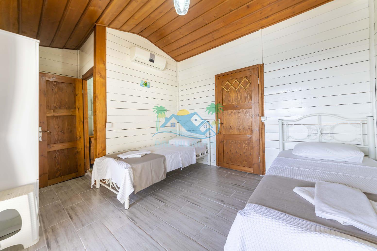 Üç yatak odalı, üç banyolu bu konforlu villa; çocuklu ailelerin ya da balayı çiftlerinin tüm ihtiyaçlarına cevap verir. Birinci ve üçüncü yatak odalarında geniş çift kişilik yataklar, klima ve ebeveyn banyoları bulunur. İkinci yatak odasında ise iki tek kişilik yatak, klima ve özel banyo mevcuttur. Ferah salon, tam donanımlı mutfak ve televizyonla donatılmış ortak alanlar, ev konforunu tatilde de yanınızda hissettirir.