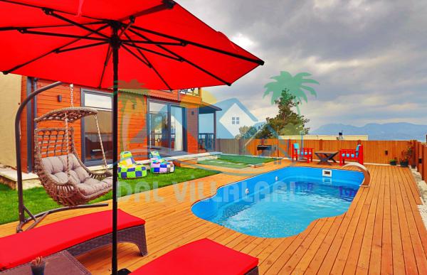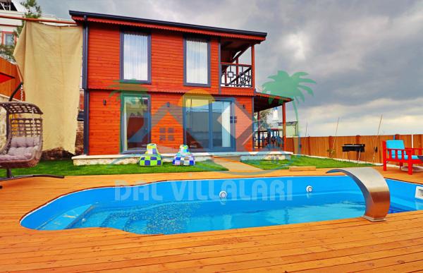 Yemyeşil doğa içerisinde konumlu Villa Ayşe, dubleks ahşap mimari, geniş bahçe alanına sahip modern balayı villasıdır.