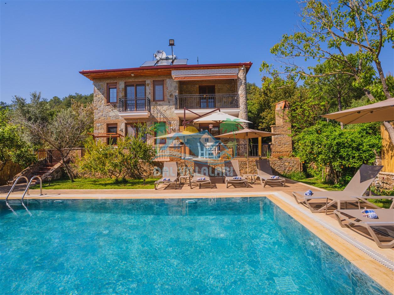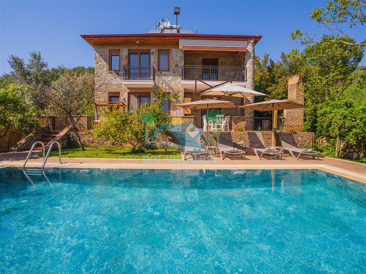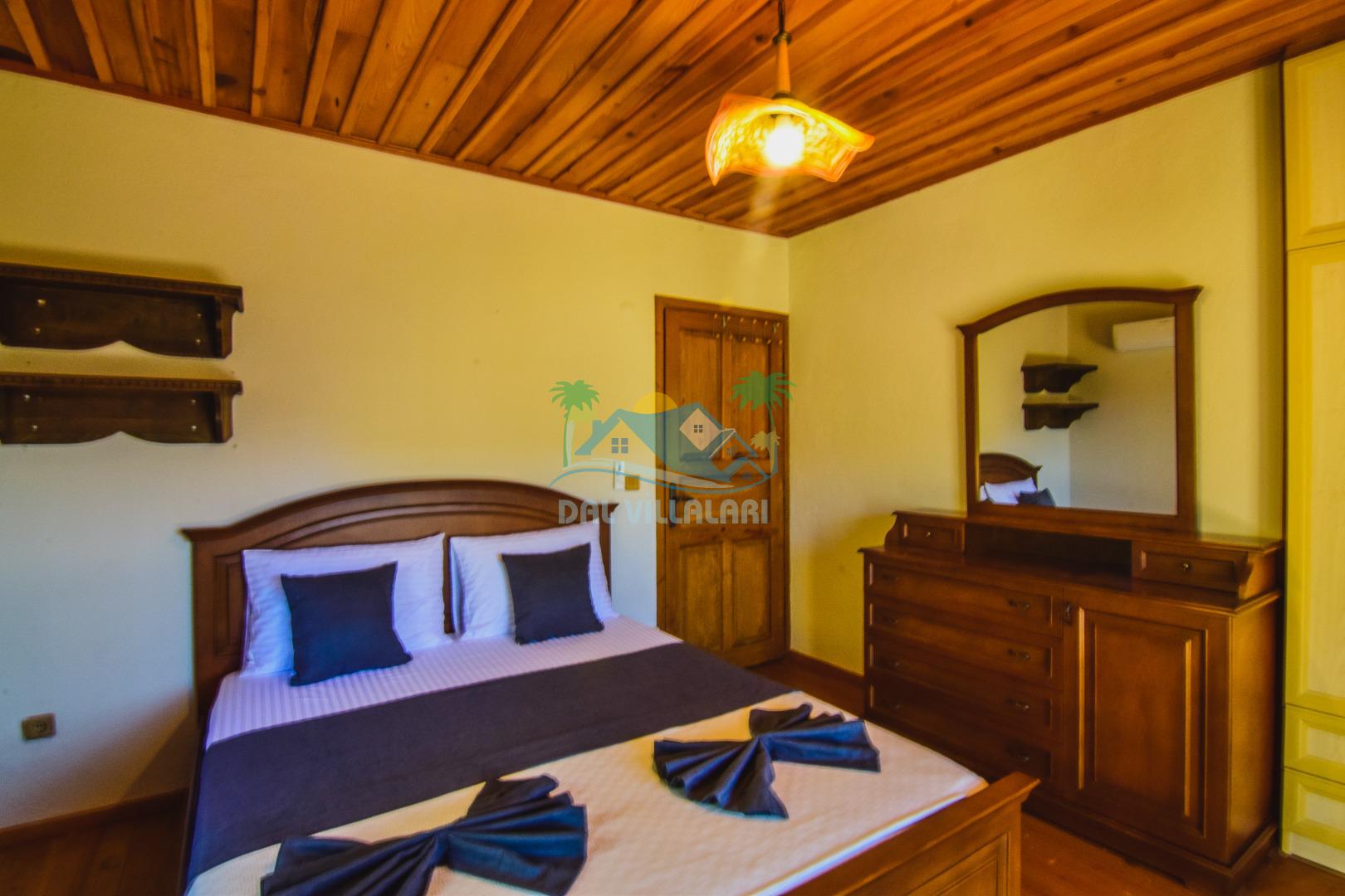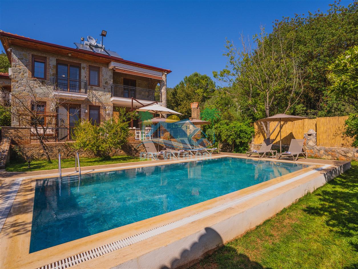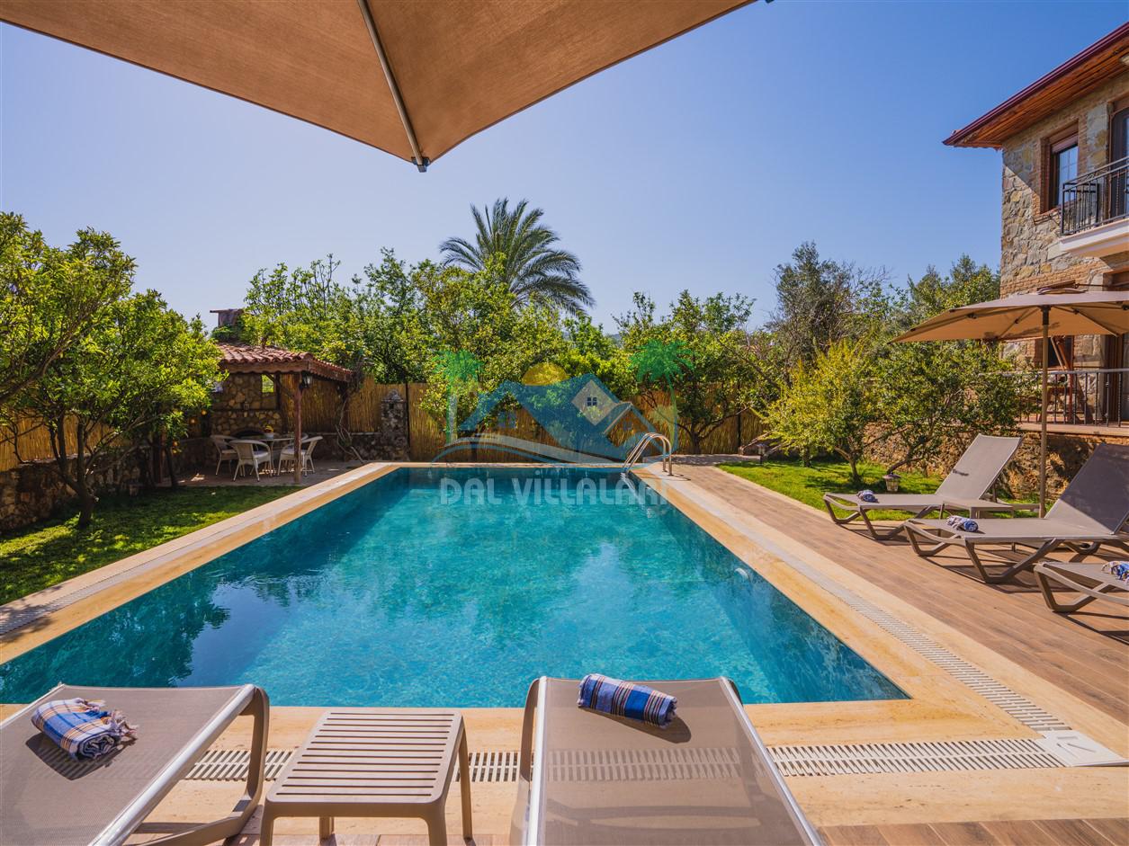 En Otantik tatil bölgelerinden biri olan Fethiye Kaya köyünde sessiz sakin bir konum da yer alan bu özel villamız, birbirinden ferah üç yatak odasına ve 6 kişilik konaklama kapasitesine sahiptir. Taş ve ahşap mimarinin en güzel örneklerinden biri olan villamızın havuz ve havuz terası tam korunaklı olup dışarıdan görünmemektedir. Gözlerden uzak sessiz sakin bir konumda izole bir tatil için bu şık villamız sizleri bekliyor.