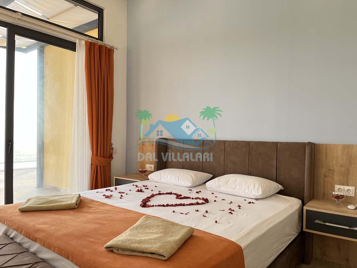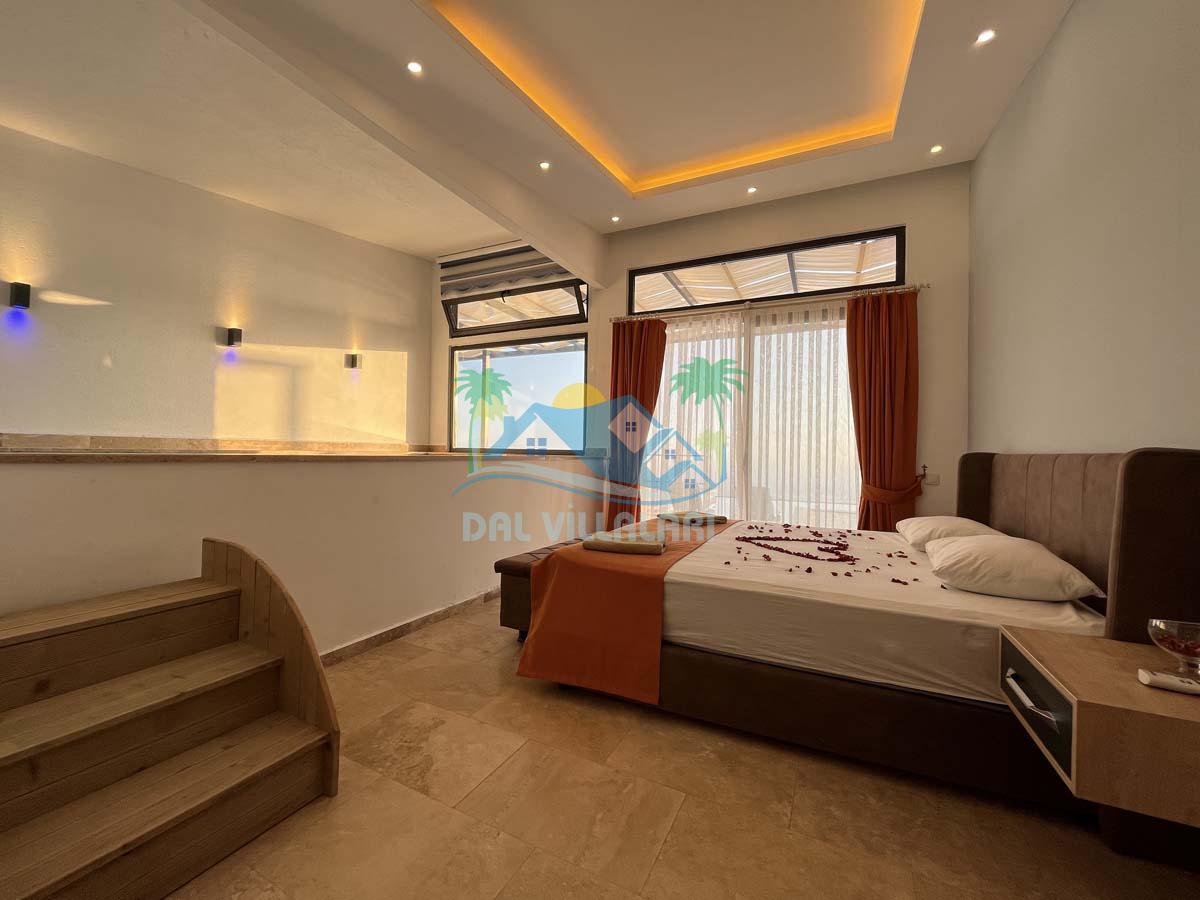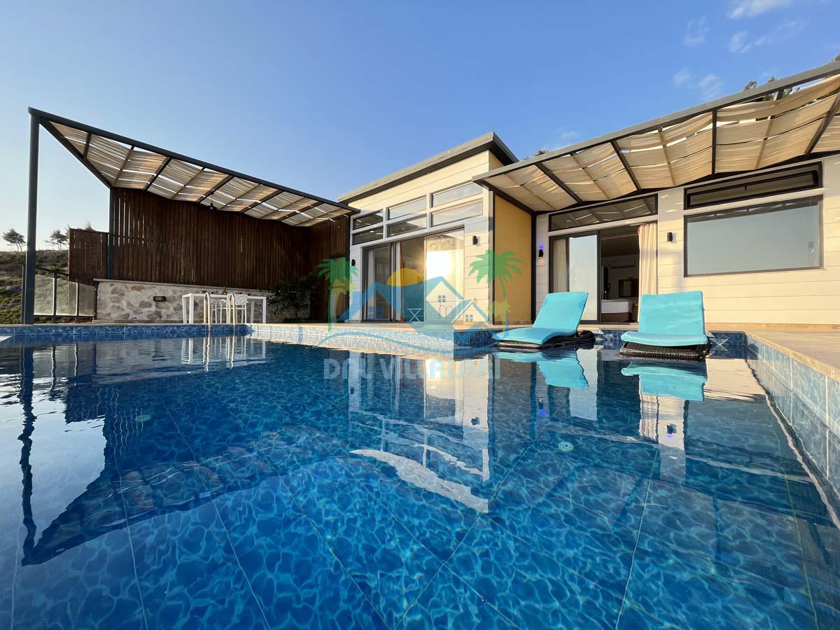 Yatak odamızda manzaranın tam karşısına konumlandırılmış eni 2m boyu 4m ölçülerinde olan bir adet jakuzili kapalı havuzumuz mevcuttur. Bütün odalarımız villalarımıza özel olarak muhafaza edilmiş sonsuz havuzaçılmaktadır.