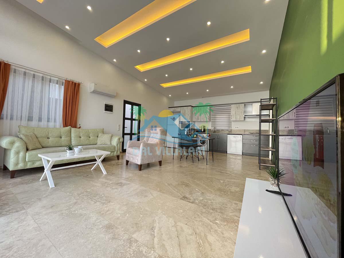 Yeşilin hakim olduğu, seçkin parçalarla donatılmış salonumuz, tam donanımlı olarak hazırlanmış Amerikan mutfağımız, özel parçalar seçilerek hazırlanmış yatak odamız ve içerisinde bir adet tuvalet banyomuz bulunmaktadır.