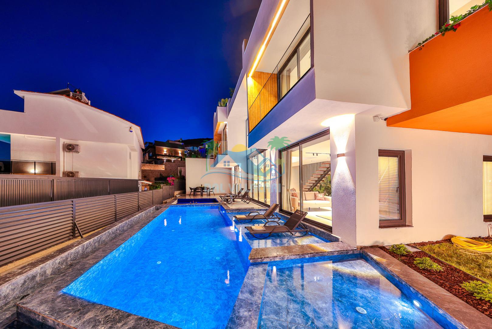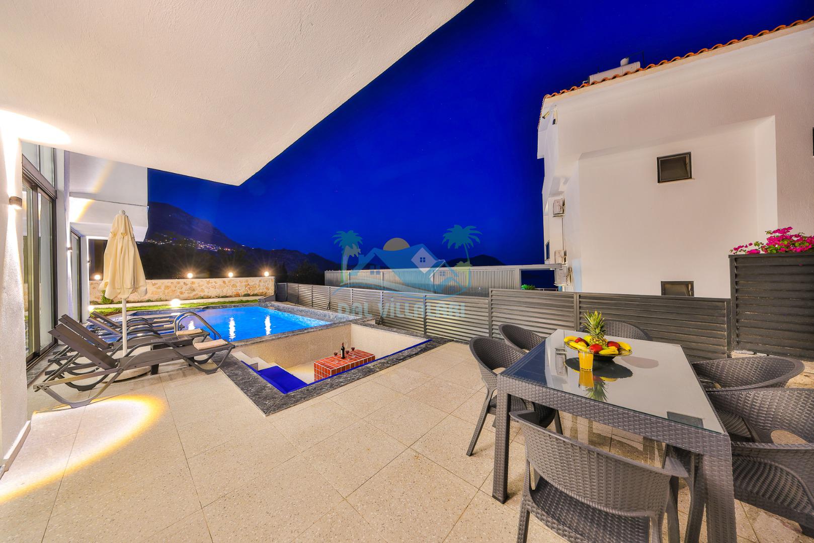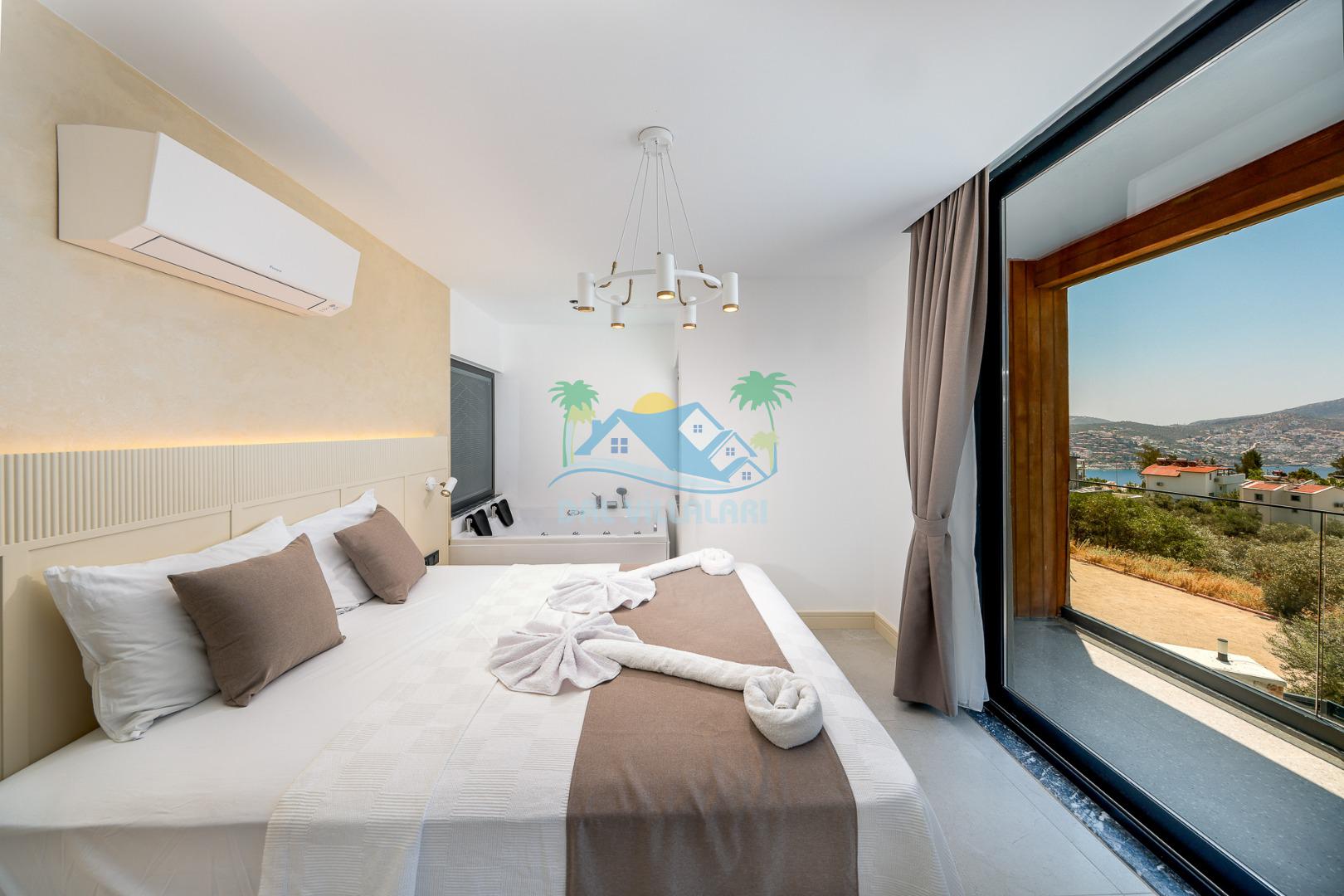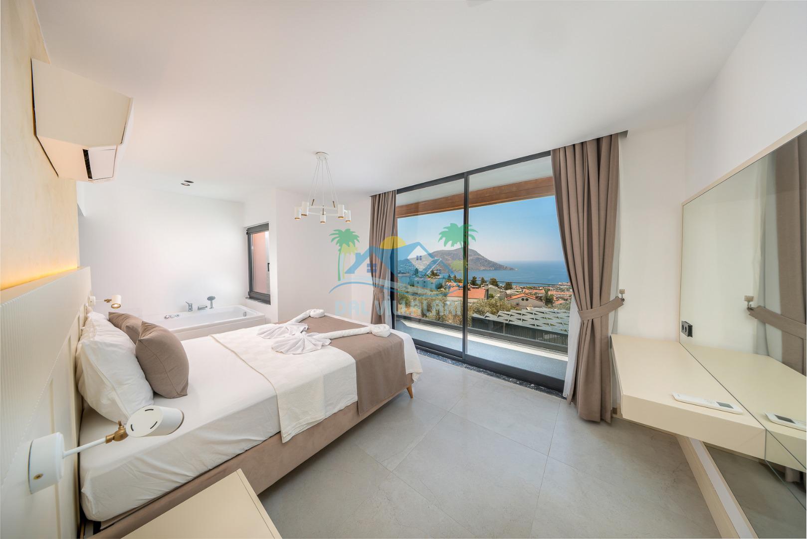 Kalkan merkezde balayı çiftleri ya da çekirdek aileler için uygun olan villamız, 2 yatak odası ile 4 kişilik konaklama kapasitesine sahiptir. Deniz manzaralı villalar ve jakuzili villalar kategorisindeki villamız denize ve merkeze yürüme mesafesinde olup, muhteşem bir deniz manzarasına sahiptir. Modern bir mimariye sahip olan villamızda denize karşı jakuzi keyfini sürebileceğiniz huzur dolu bir tatil sizleri bekliyor.