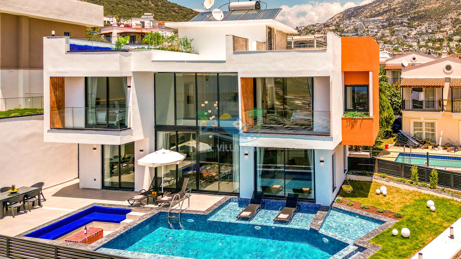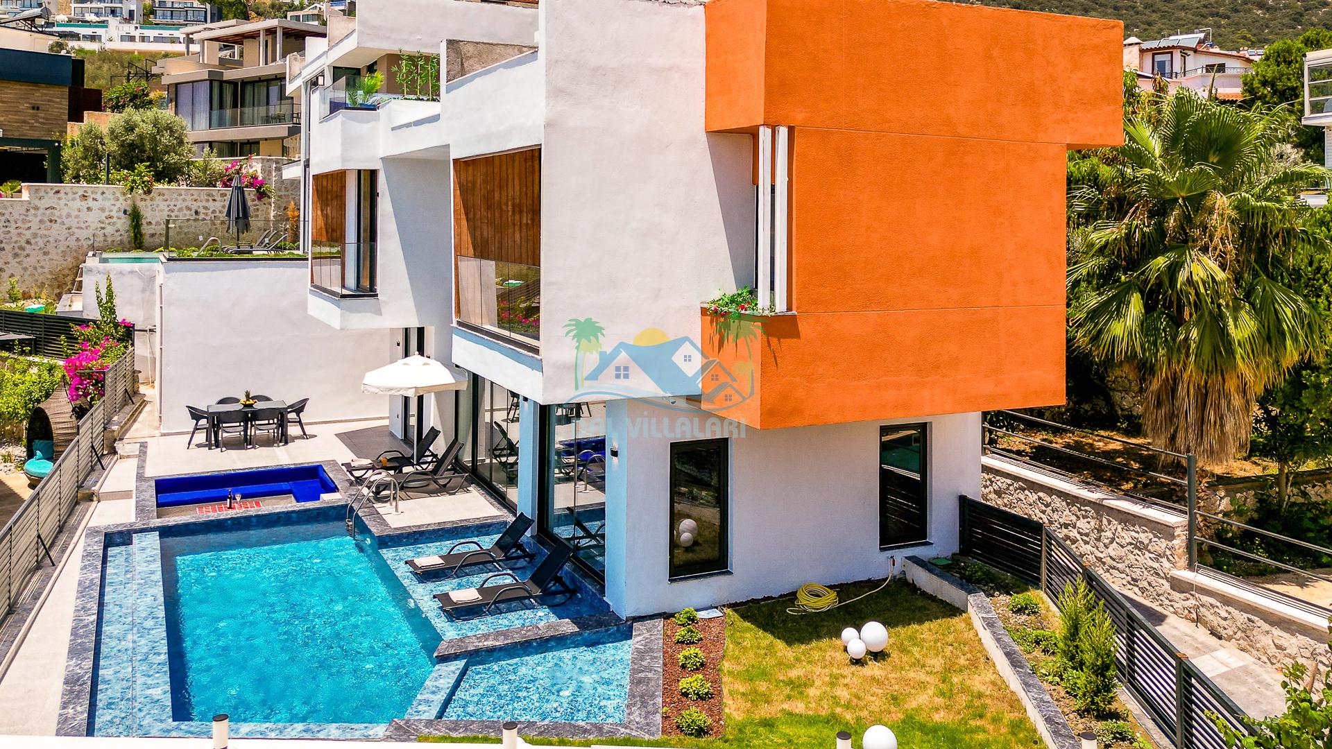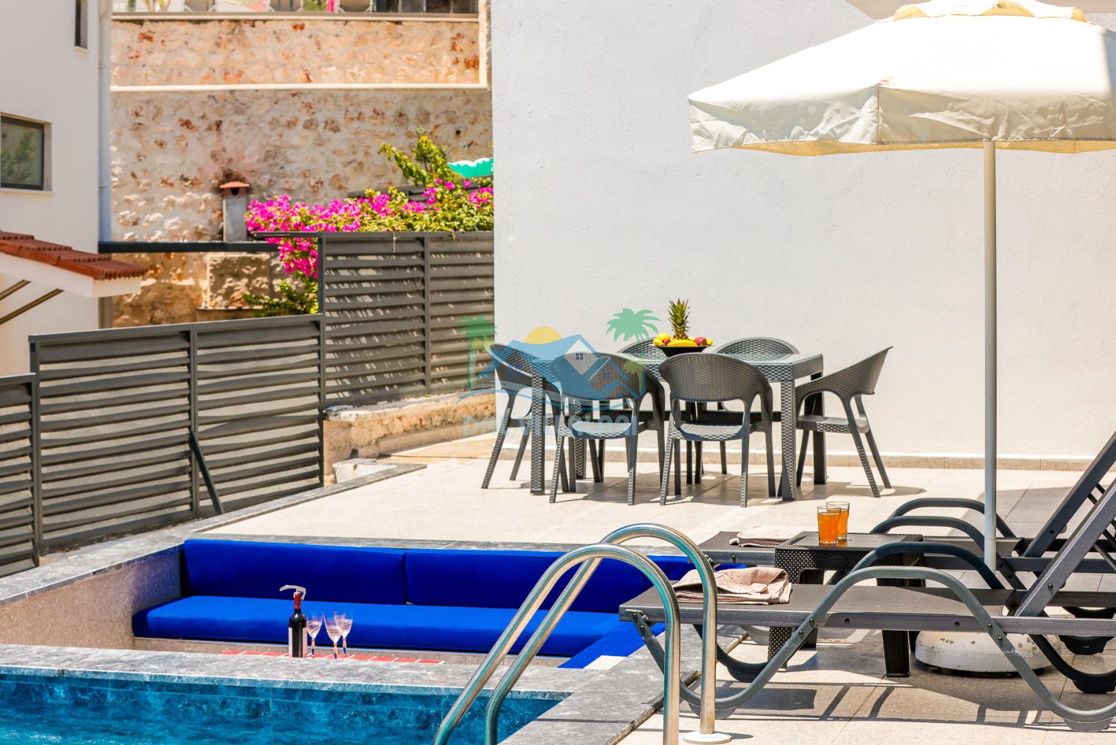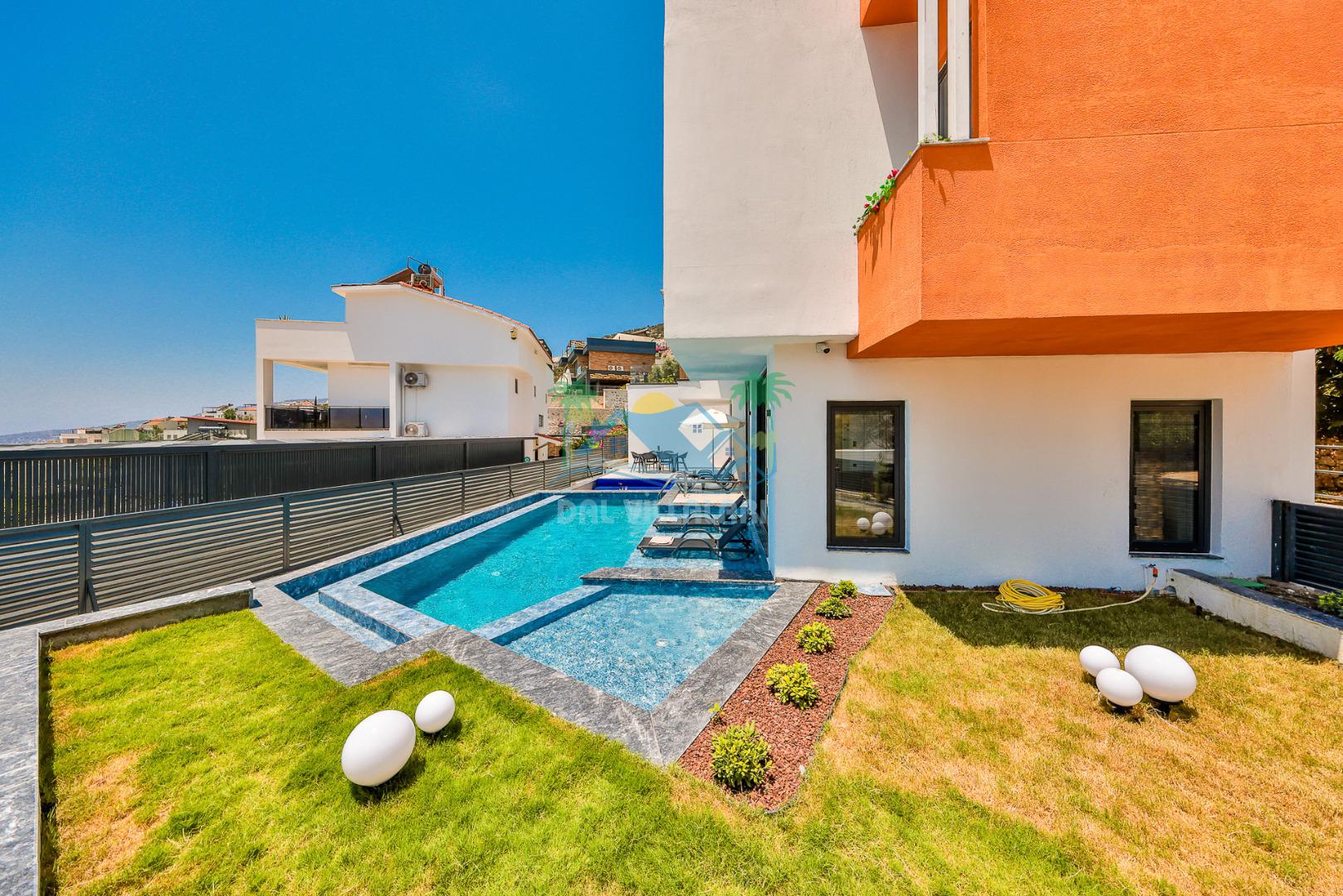 Kalkan merkezde balayı çiftleri ya da çekirdek aileler için uygun olan villamız, 2 yatak odası ile 4 kişilik konaklama kapasitesine sahiptir. Deniz manzaralı villalar ve jakuzili villalar kategorisindeki villamız denize ve merkeze yürüme mesafesinde olup, muhteşem bir deniz manzarasına sahiptir. Modern bir mimariye sahip olan villamızda denize karşı jakuzi keyfini sürebileceğiniz huzur dolu bir tatil sizleri bekliyor.