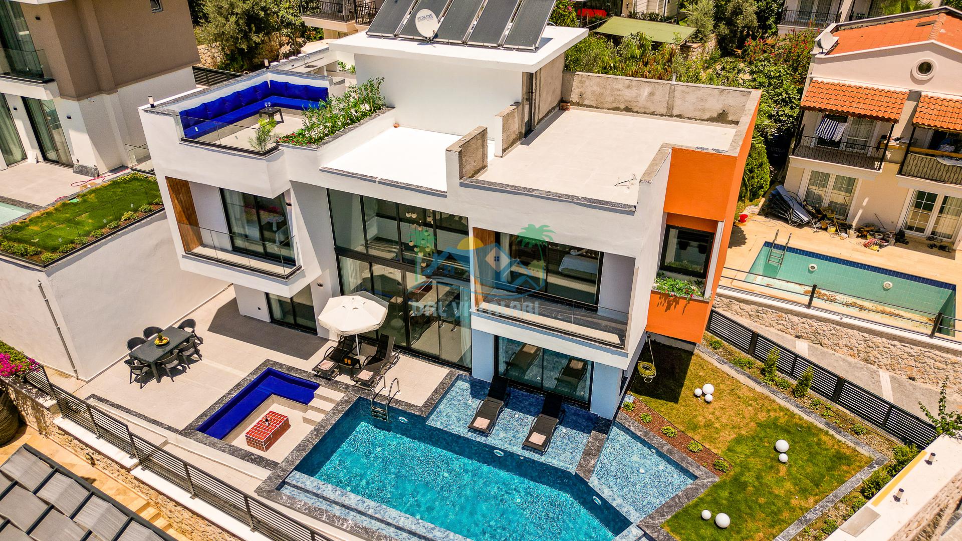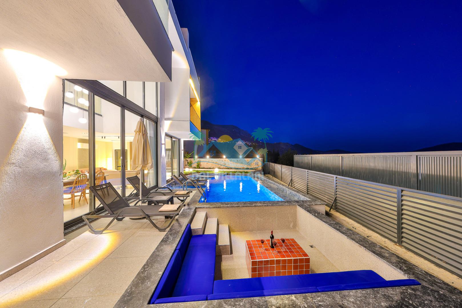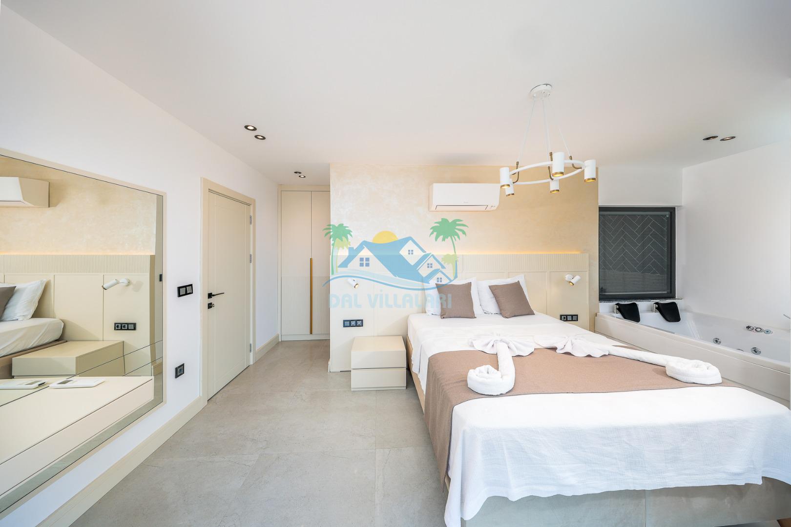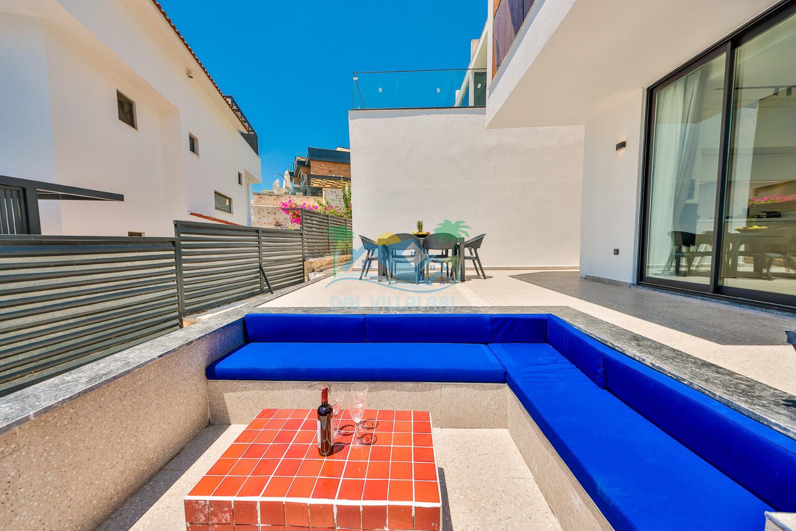 Kalkan merkezde balayı çiftleri ya da çekirdek aileler için uygun olan villamız, 2 yatak odası ile 4 kişilik konaklama kapasitesine sahiptir. Deniz manzaralı villalar ve jakuzili villalar kategorisindeki villamız denize ve merkeze yürüme mesafesinde olup, muhteşem bir deniz manzarasına sahiptir. Modern bir mimariye sahip olan villamızda denize karşı jakuzi keyfini sürebileceğiniz huzur dolu bir tatil sizleri bekliyor.