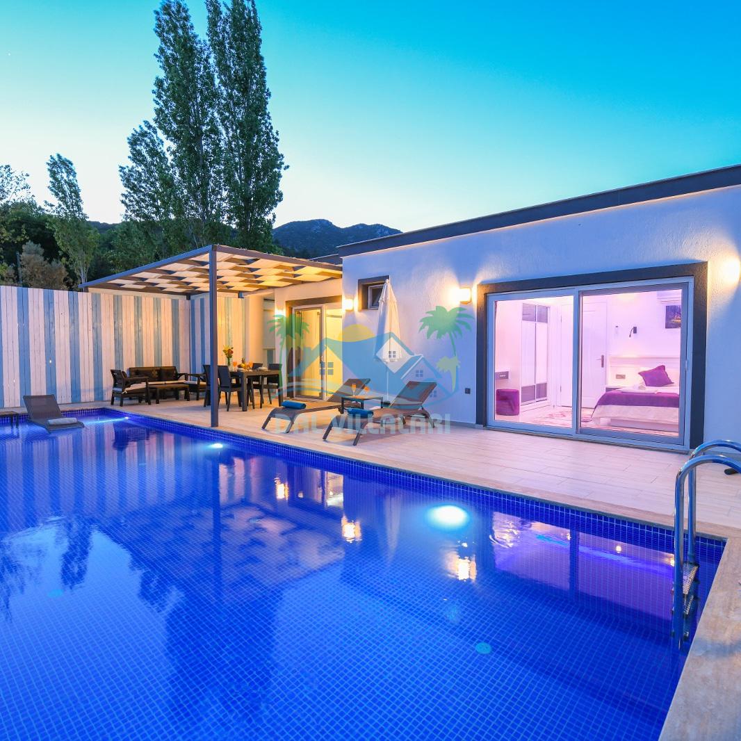 Kalkan İkizce mevkisinde bulunan kiralık tatil villası, doğa içinde sessiz sakin bir konumda tatil isteyen ailelerimiz için oldukça uygun bir seçenektir. Jakuzili villalar kategorisinde yer alan villamız, 2 yatak odası ile 4 kişilik konaklama kapasitesine sahiptir. İçerisin de bulunan oyun aktiviteleri sayesinde siz değerli misaifirlerimiz keyifli vakitler geçirebilirsiniz. Ayrıca villamızda misafirlerimizin rahatlaması için 2 kişilik jakuzi konforu da sağlamaktadır.