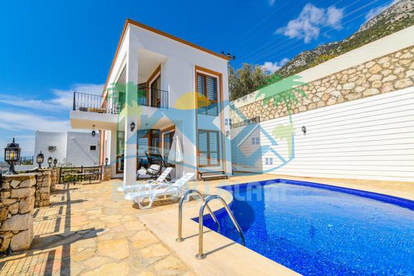 Kalkan Kördere bölgesinde konumlanan villamız 2 yatak odalı 4 kişi konaklama kapasitesine sahiptir.Yatak odaları içerisinde 2 adet tek kişilik yatak, bir adet çift kişilik yatak, tuvalet ve banyo bulunmaktadır aynı zamanda 5. kişi salon kısmında bulunan koltukda da konaklama yapabilmektedir. Oldukça modern ve şık bir tasarıma sahip seçeneğimiz tatiliniz için size bütün imkanları sağlamaktadır. Aynı zamanda villa içerisinde bulunan her türlü mutfak araç ve gereçlerinde istediğiniz şekilde yemeğinizi yapabilir, havuz terası kısmında mangalınızı yapabilirsiniz ayrıca villamıza paket servis de yapılabilmketedir. Rahat ve keyif dolu anlar yaşabileceğiniz seçeneğimizde muhafazakar ailelerimizde düşünülmüş olup havuz terası korunaklı şeklindedir.