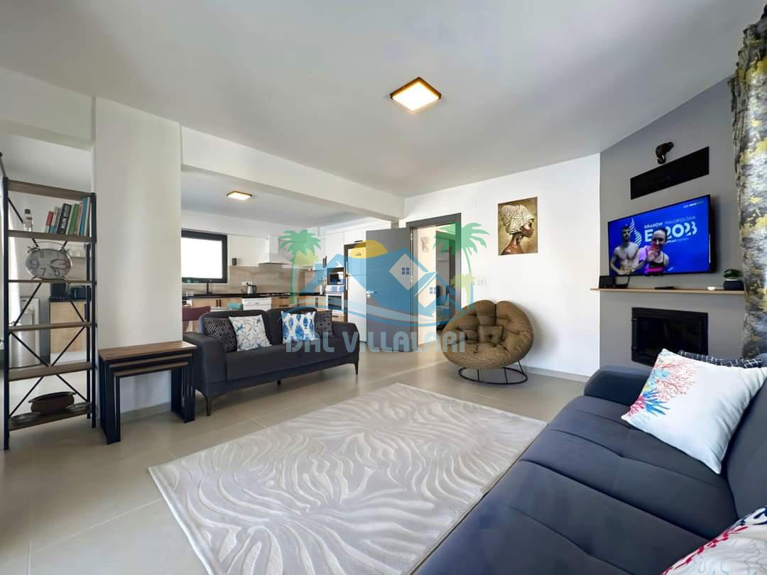 İç mekânda modern ve sade bir dekorasyon tercih edilmiştir. Ferah salon, tam donanımlı mutfak ve konforlu oturma alanları ile Villa Bellisima, tatiliniz boyunca ev rahatlığını hissettirir. Toplam 3 banyo bulunması, özellikle kalabalık aileler için önemli bir avantaj sağlar.