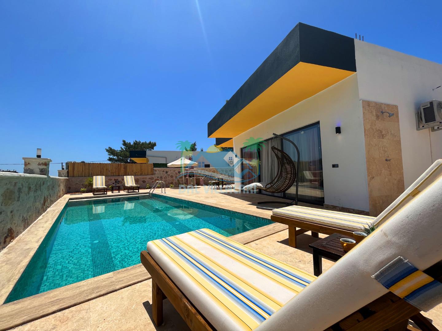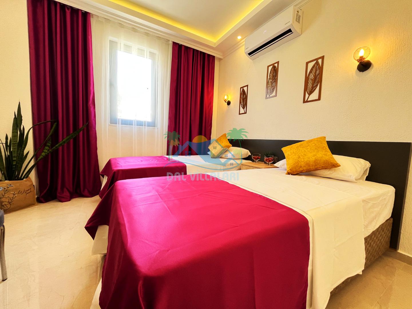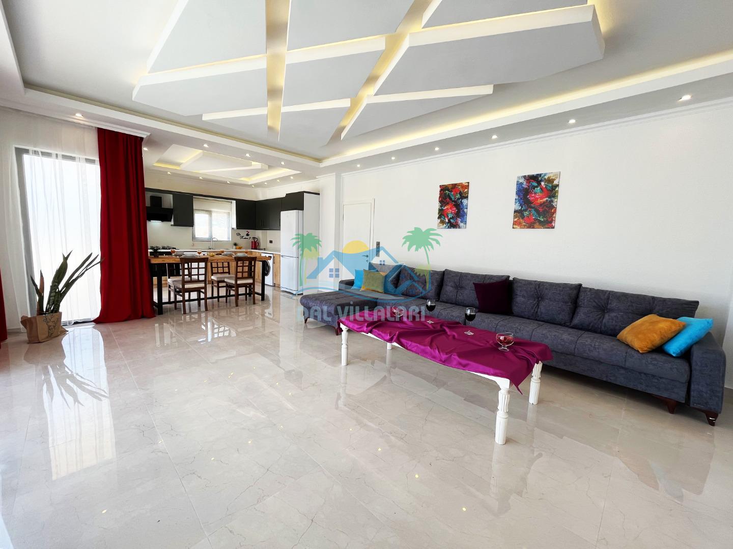 Villa Berrak, modern ve şık dekorasyonuyla dikkat çekerken, geniş ve ferah yaşam alanları ile misafirlere rahat bir konaklama imkanı sağlar. Villanın iç mekanında, kaliteli mobilyalarla donatılmış bir oturma odası, tam donanımlı bir mutfak ve şık yemek alanı bulunmaktadır. İki adet yatak odası, her biri konforlu yataklar ve seçilmiş seçilmiş tekstil ürünleriyle donatılmış olup, misafirlerin dinlenebileceği alanlar sunar.