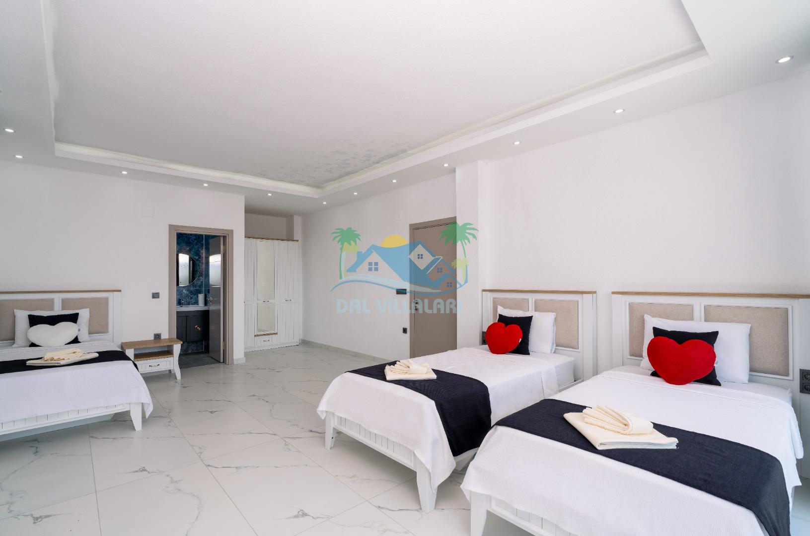 Villamızın yatak odalarından birinde jakuzi bulunmakta olup, tatil boyunca ekstra konfor ve rahatlama imkânı sunmaktadır. Ayrıca villada bulunan tüm odalarda banyo ve WC yer alması sayesinde özellikle kalabalık aileler için rahat ve kullanışlı bir konaklama avantajı sağlamaktadır. Bu yönüyle villa, hem mahremiyete hem de kişisel konfora önem veren misafirler için ideal bir yapıya sahiptir.